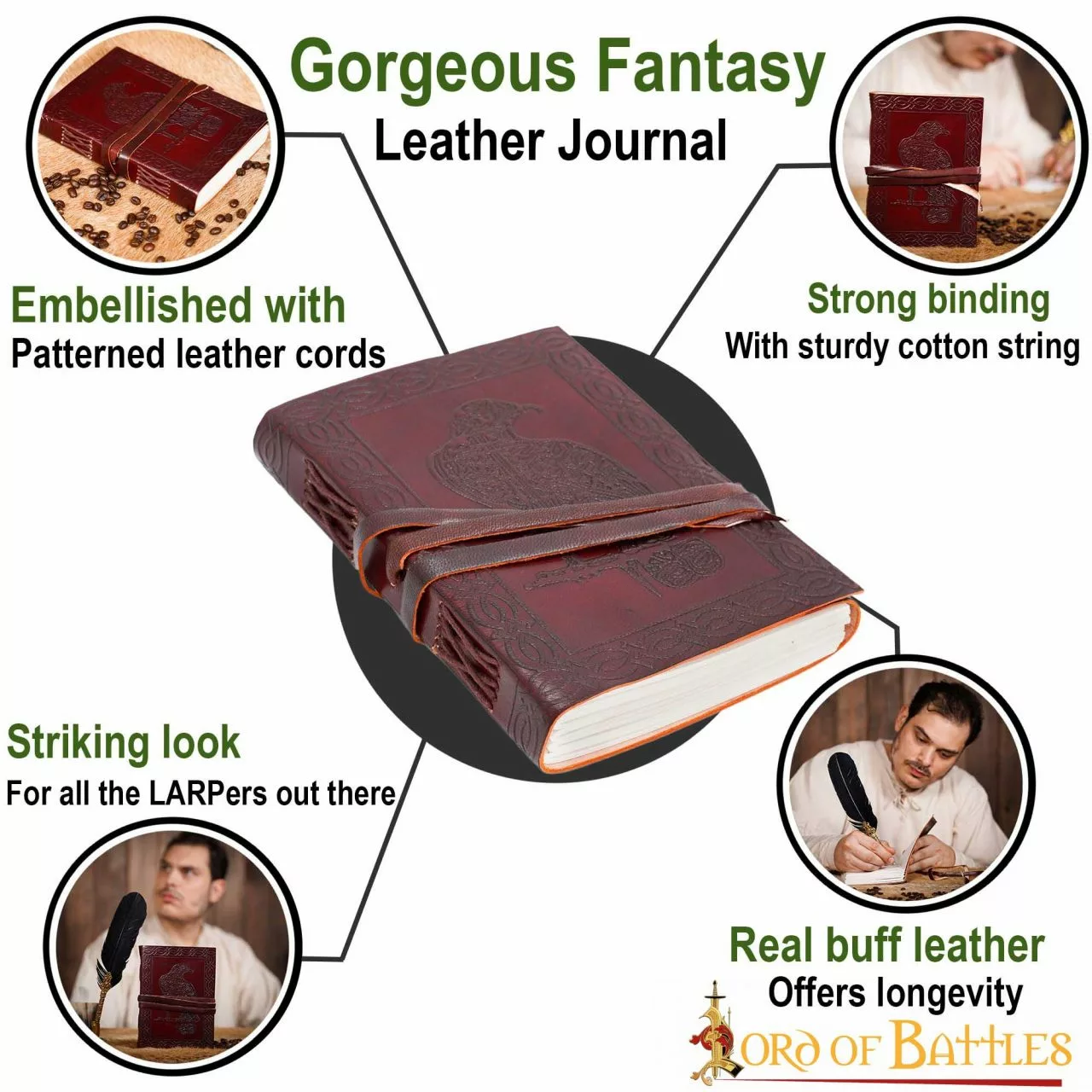 HECHO A MANO CON CUERO REAL DE GRANO SUPERIOR, viene con un juego de 100 PAPELES NATURALES HECHOS A MANO de color blanco, fuertemente unidos por un resistente cordel de algodón. Sus dimensiones son de aprox. (7 X 5) pulgadas.