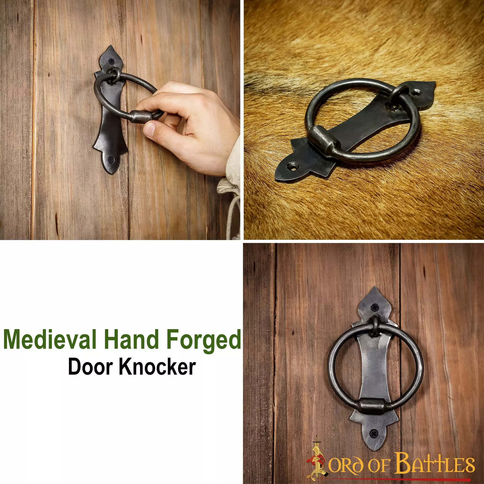Suba el listón de los accesorios decorativos para puertas con esta sencilla pero elitista aldaba. ¡Su atractivo rústico medieval atraerá sin duda algunas miradas hacia su bien adornada puerta de castillo! Nota: Este producto se recubre cuidadosamente con una capa de aceite cuando se empaqueta que actúa como una capa temporal (protectora) contra la corrosión (óxido), que se puede limpiar fácilmente utilizando cualquier removedor de aceite o incluso un paño seco.