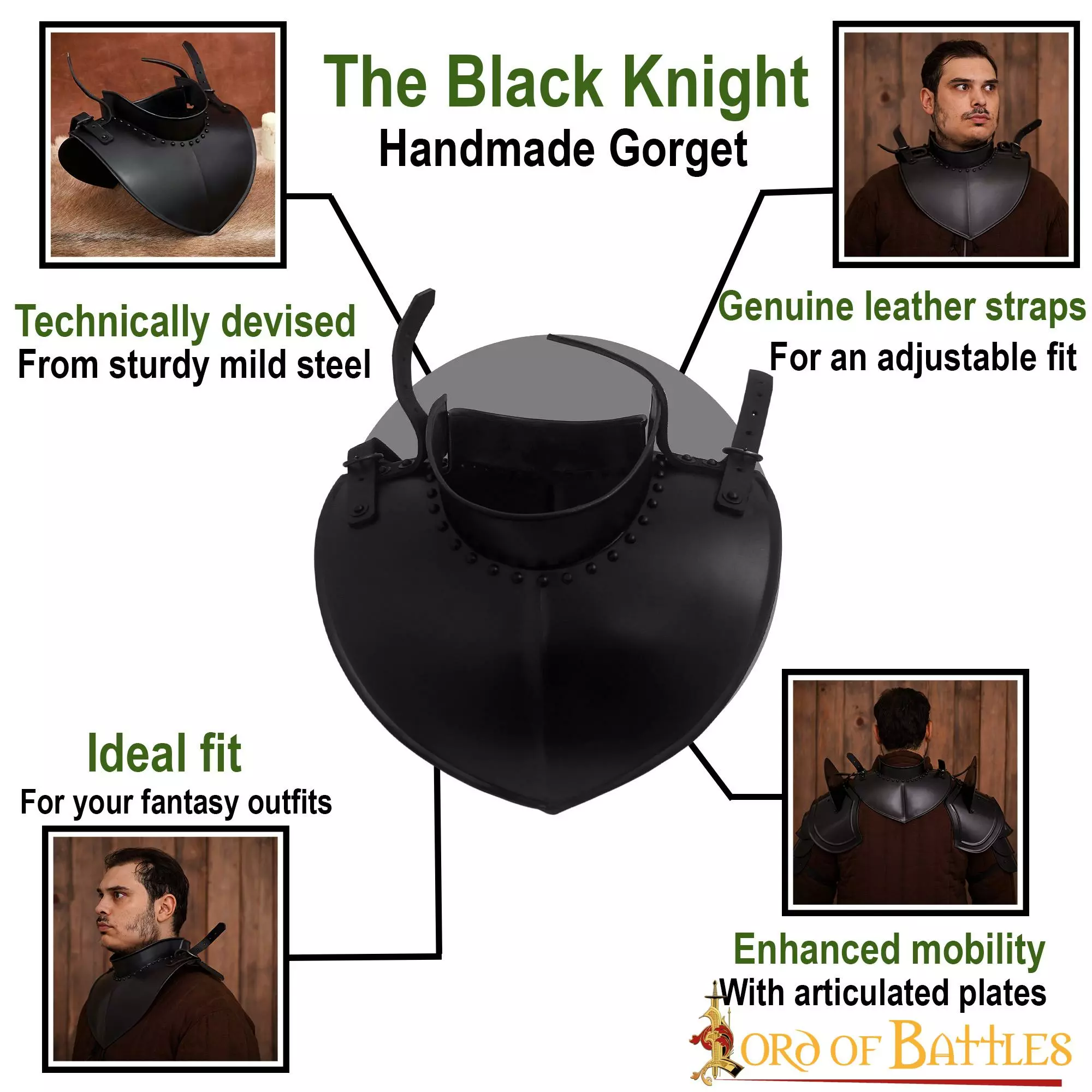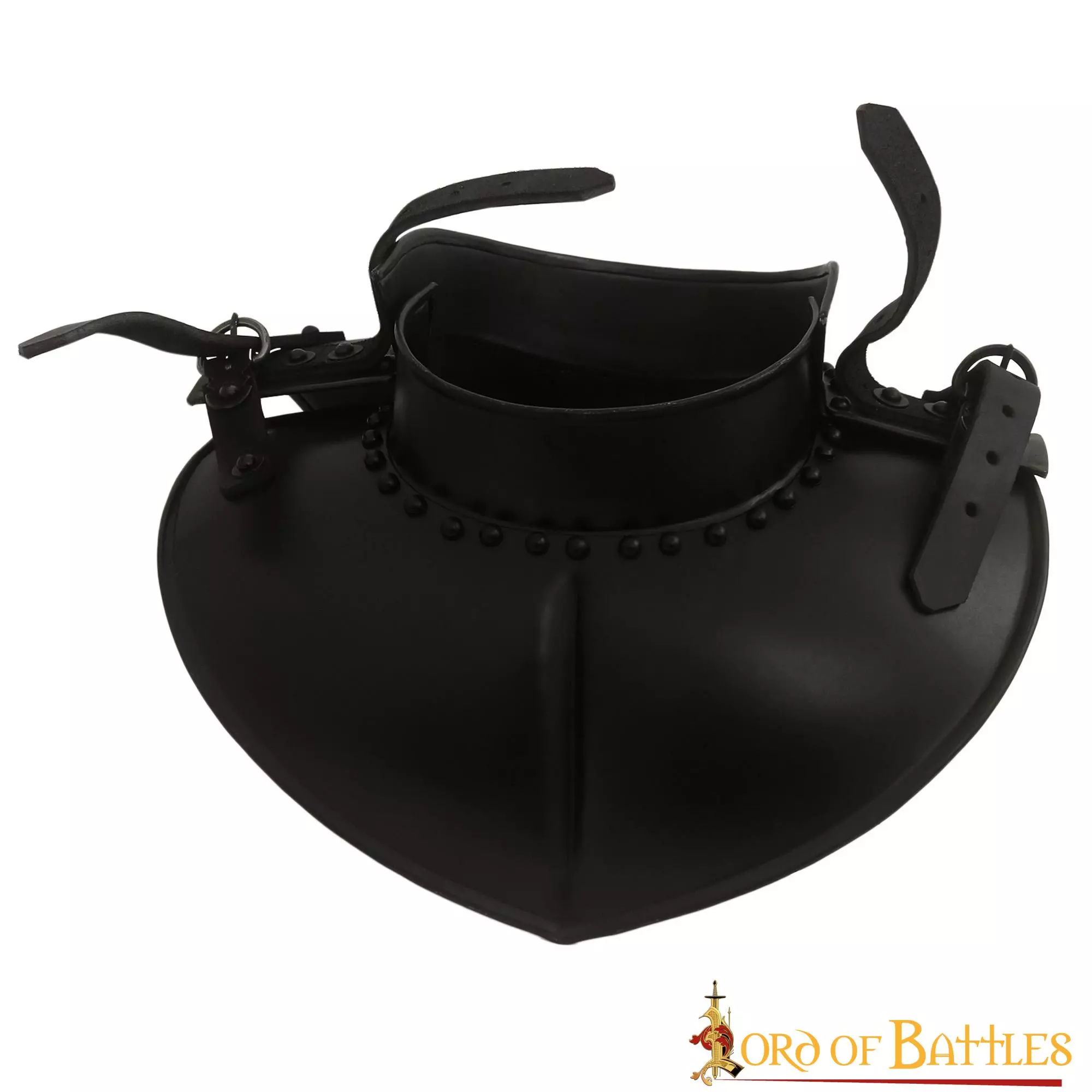 Hábilmente HECHO A MANO de resistente acero templado de calibre 18, es un excelente compañero para tus trajes de LARP y recreación, ¡haciendo que destaques con tu armadura! Un conjunto de ROBUSTAS CORREAS DE CUERO GENUINO ayudan a cerrarla, y otro par de correas de cuero pueden sujetar convenientemente tus pauldrons en su lugar si lo deseas. Esta gorguera se adapta fácilmente a la mayoría de los cuerpos, gracias a sus placas traseras y delanteras bien articuladas y ajustables.