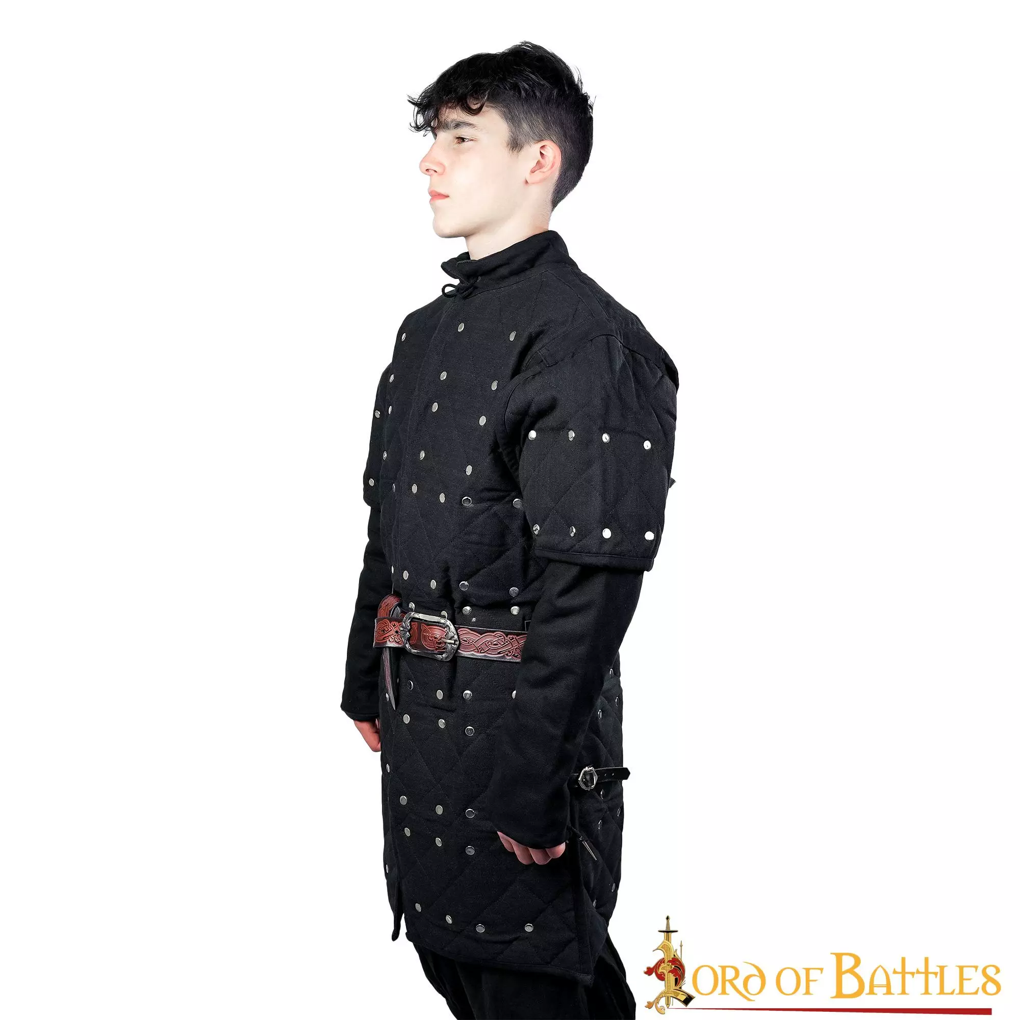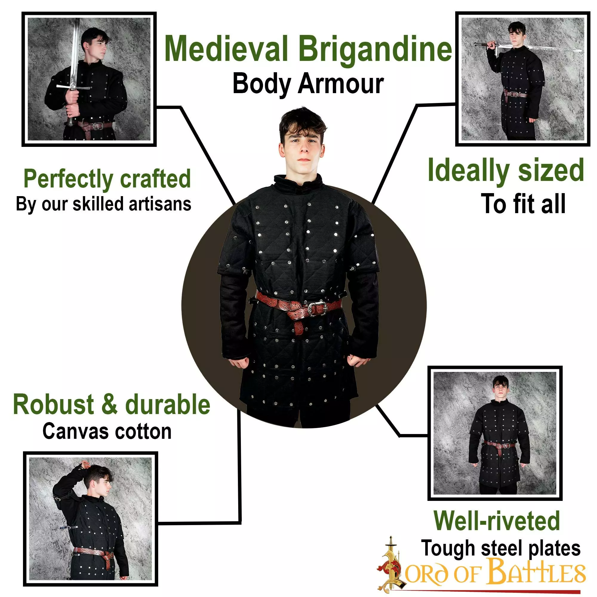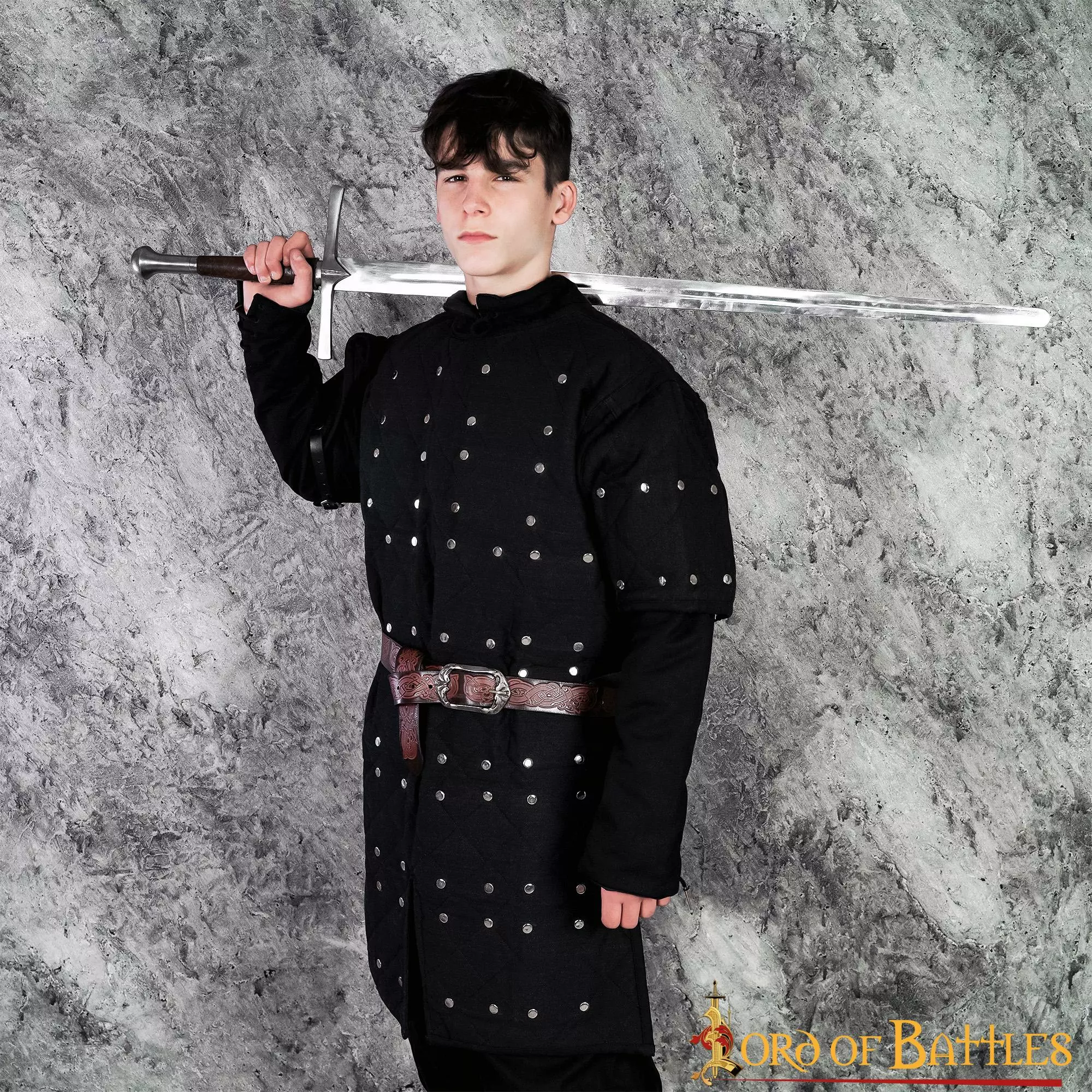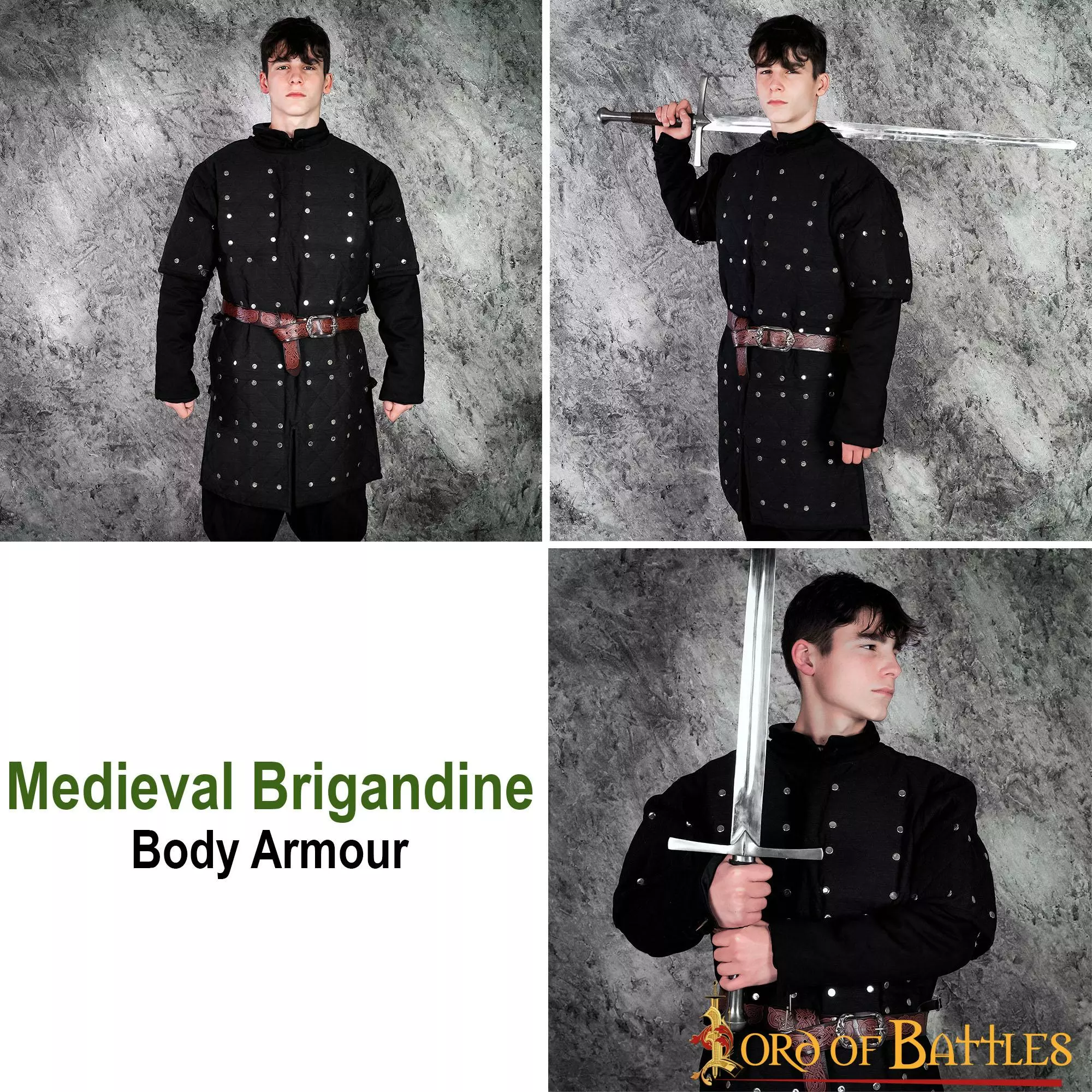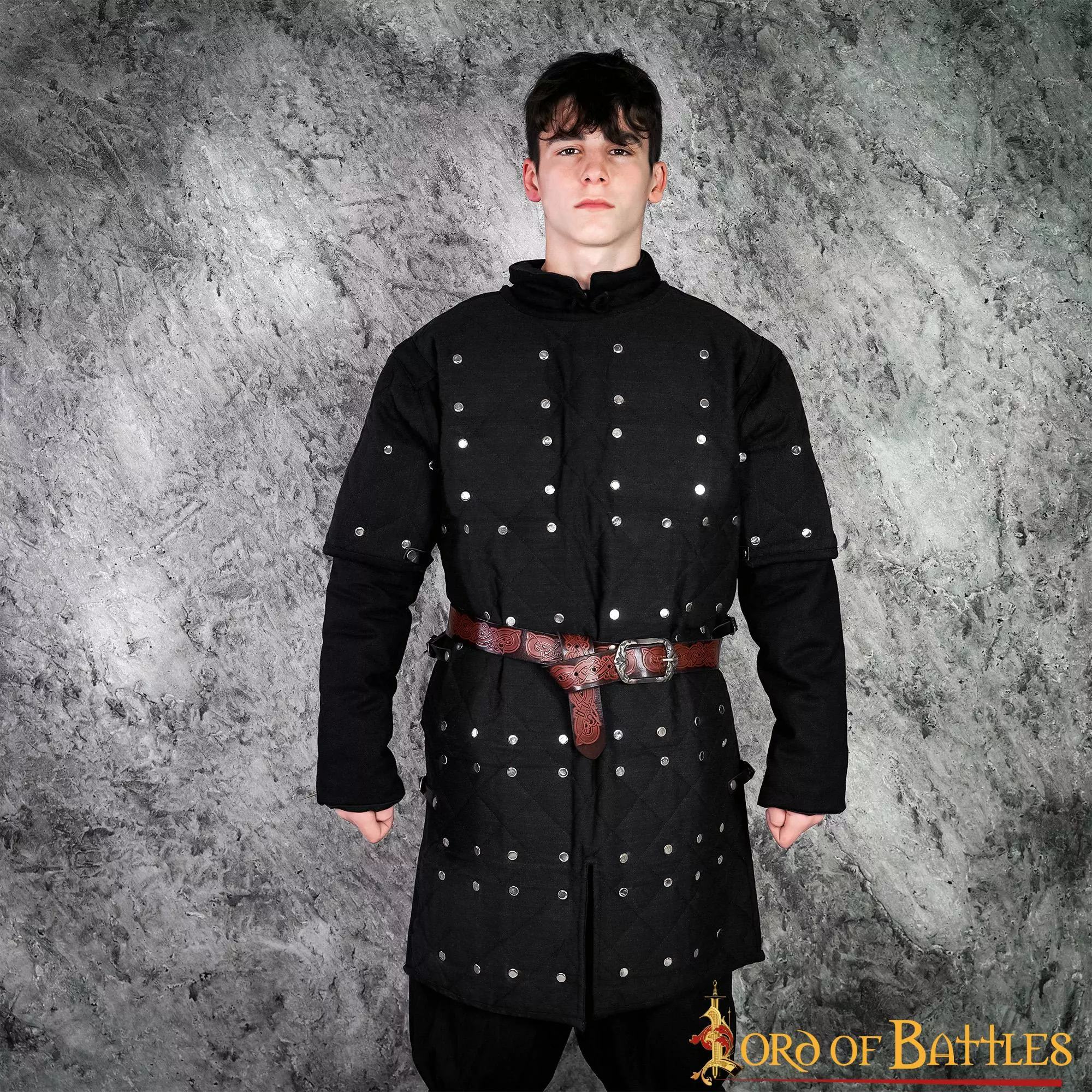 Nuestro brigandine medieval es el accesorio perfecto para su próximo disfraz LARP o su próximo ren cosplay justo o evento medieval. Este estilo de arreglo de placas de acero remachadas en el interior es bastante inusual, pero no inaudito. Hemos decidido basar libremente nuestra brigandine en una estatua de sabio existente de 1270 del monasterio de Wienhausen en la Alemania actual. Esta estatua muestra el mismo tipo de disposición de placas para la parte superior del torso, pero hemos decidido añadir spaulders para proteger la parte superior del brazo del soldado, lo que la convierte en una pieza de vestuario perfecta para cualquier combatiente de primera línea. Y cuando quieras sumar el máximo de puntos de vida en tu próximo LARP, ¡puedes combinarla fácilmente con un gambesón, una cota de malla y la propia brigandina con un precioso cinturón para conseguir un aspecto impresionante!