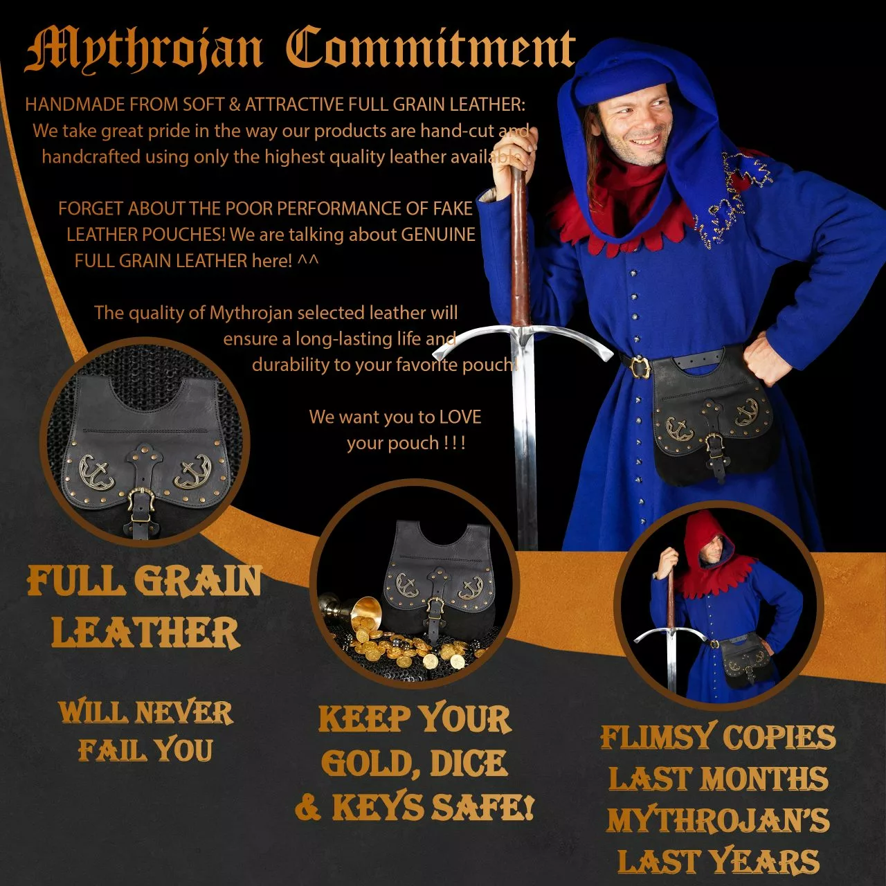 - ES UN GRAN REGALO: ¡A quien tengas en mente es un regalo que durará toda la vida! Mythrojan jura por su cuero, ¡y puedes estar seguro de que esta bonita y rústica bolsa de cuero de plena flor y ante arrancará una brillante sonrisa a cualquier rostro!