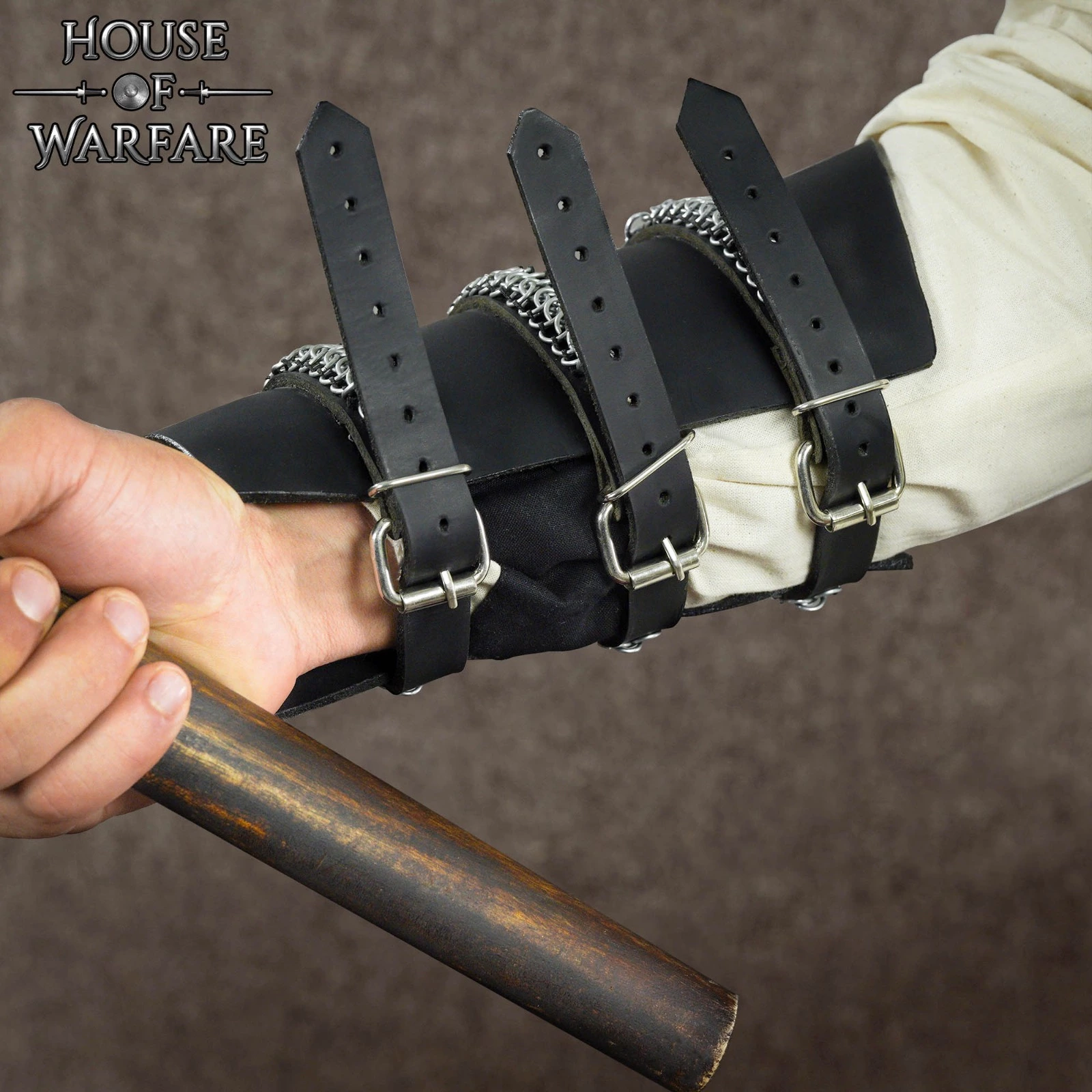 Brazales De Cuero De Guardabosques Con Hileras De Cota De Malla
