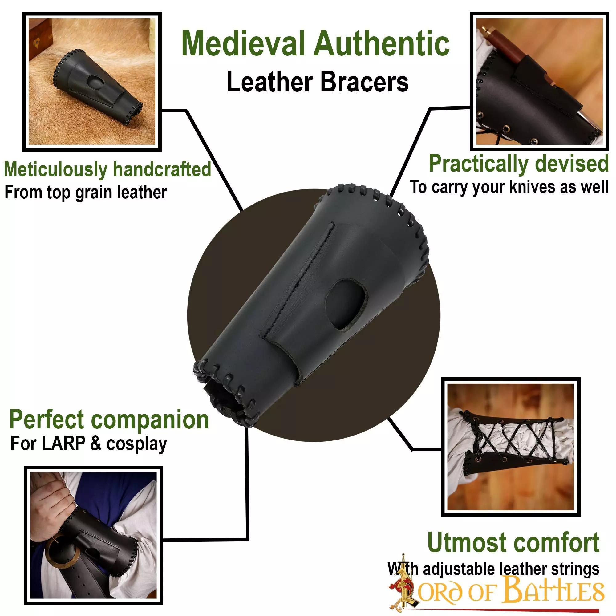 ¿Saliendo en una persecución real con el Rey? Ponte estos regios brazaletes de cuero, equipados con un soporte para cuchillos, para causar una impresión como nunca antes.