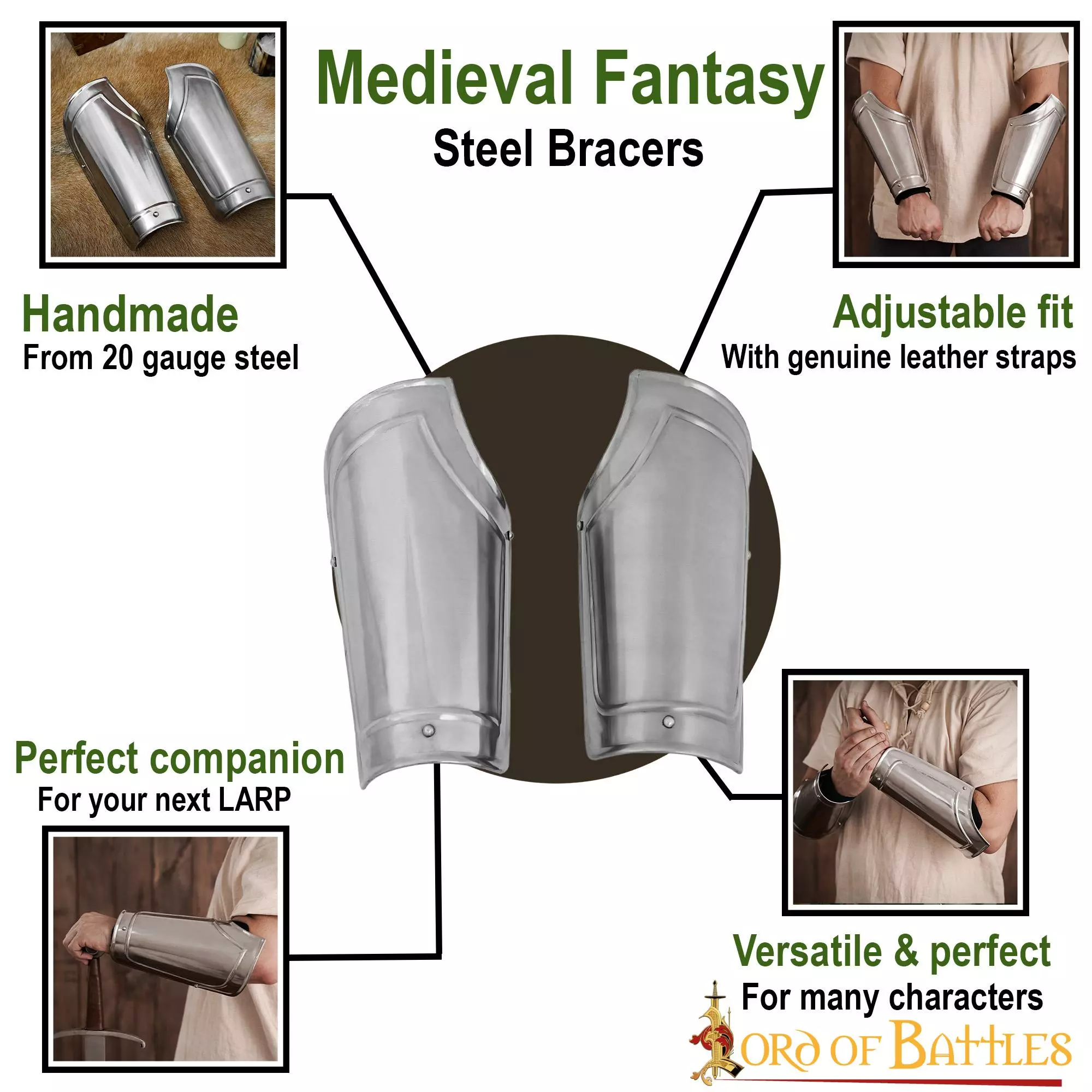 Hechos a mano a partir de acero de calibre 20 MILD, estos brazaletes son ligeros por lo tanto, un excelente compañero para LARP o Feria del Renacimiento.