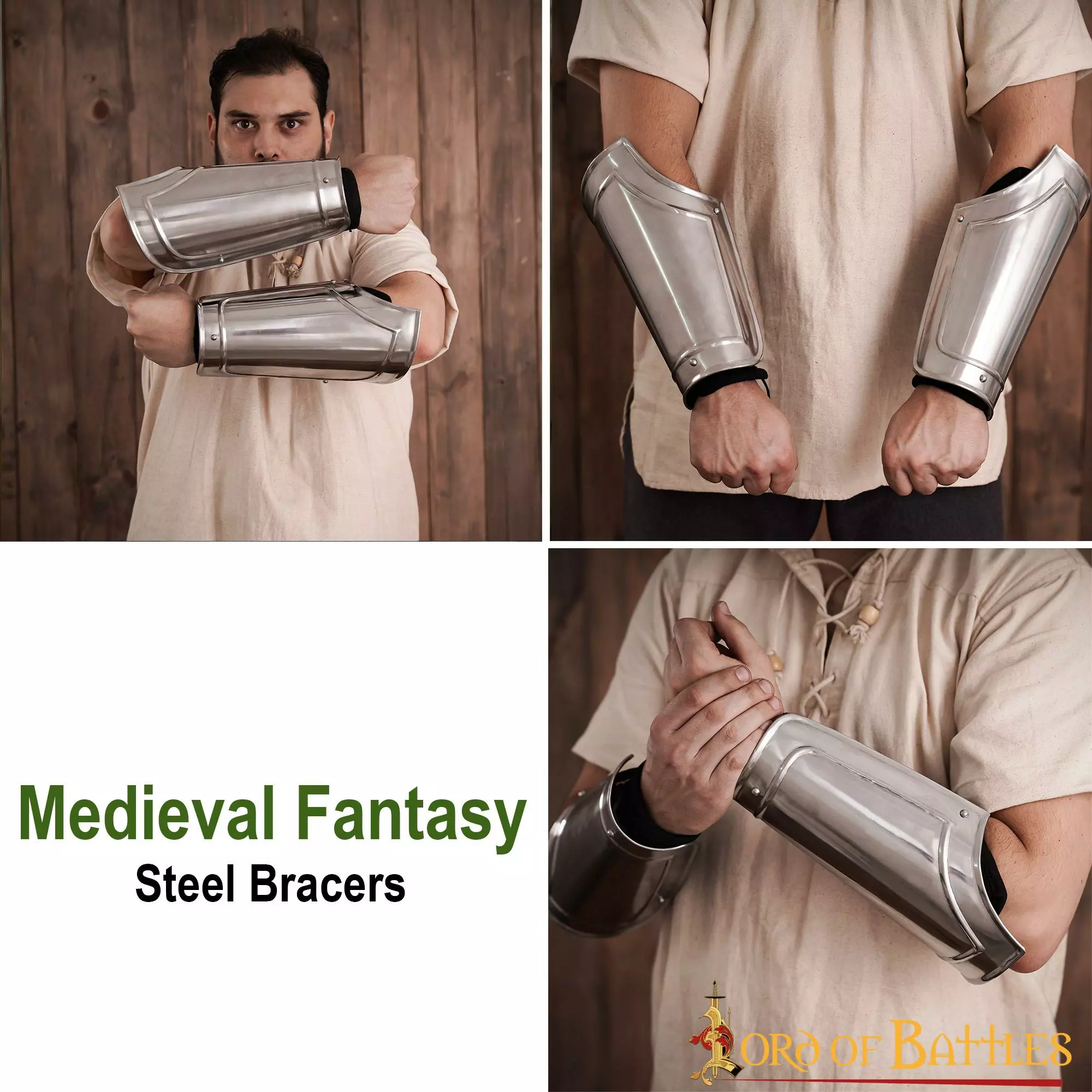 Una protección sencilla y fiable es todo lo que necesitas ponerte mientras sales en tus aventuras. Y sea cual sea la aventura en la que te encuentres, estos brazales de acero complementarán muy bien tu atuendo y te ayudarán a proteger tus antebrazos expuestos de los ataques de espadas y flechas.