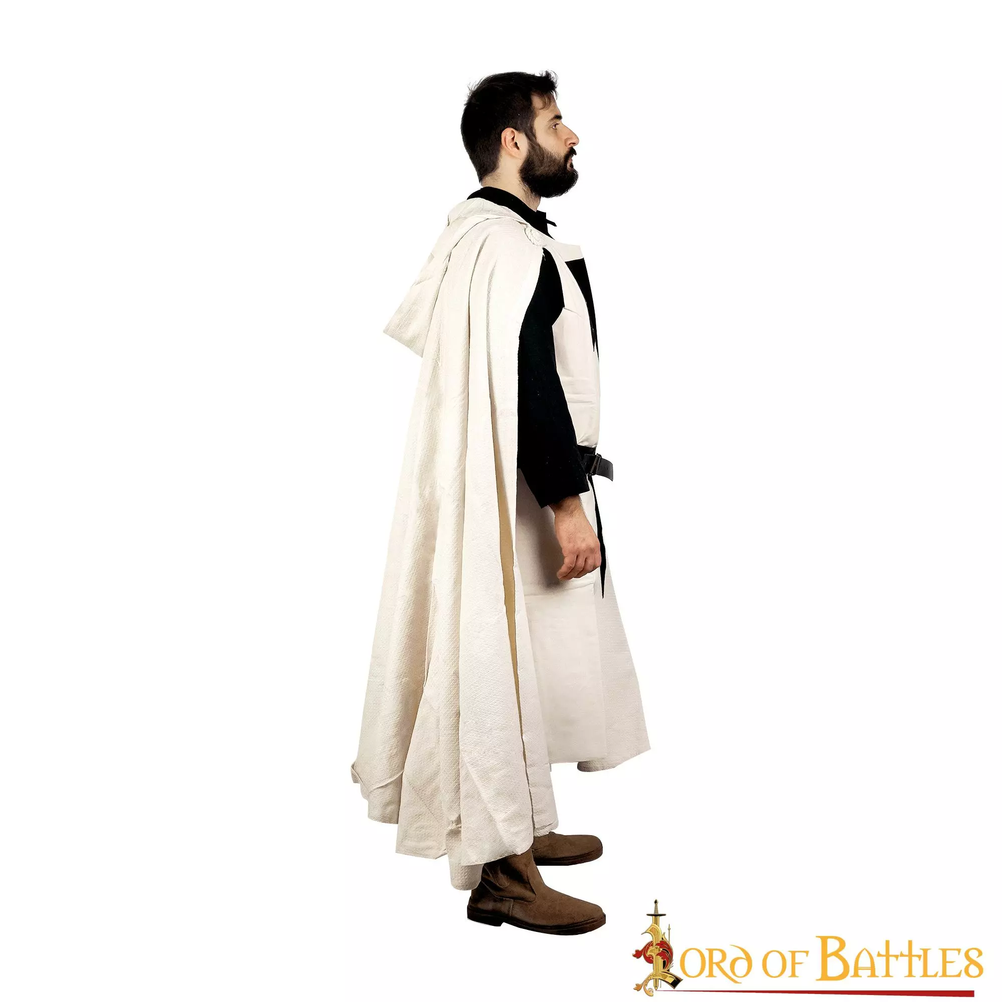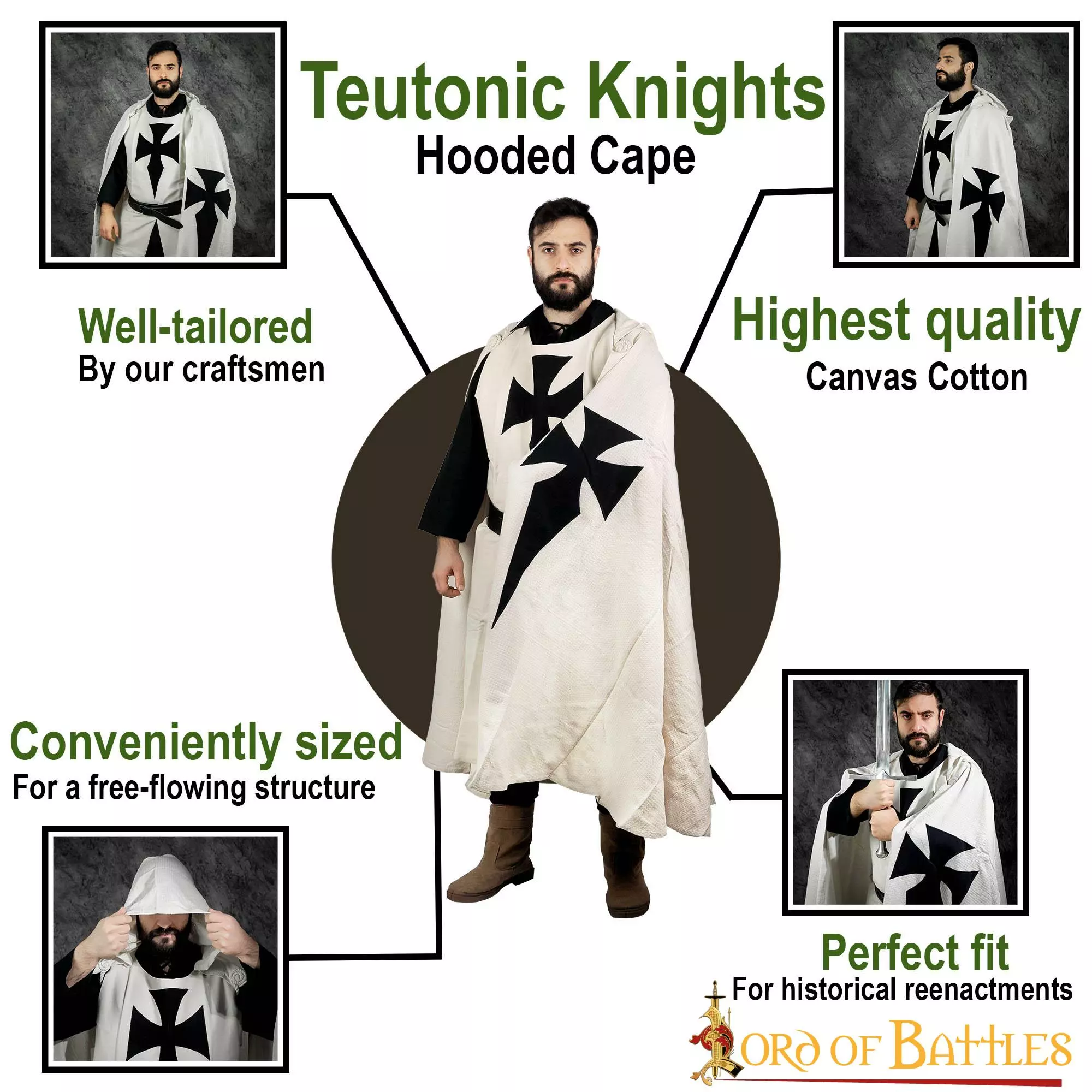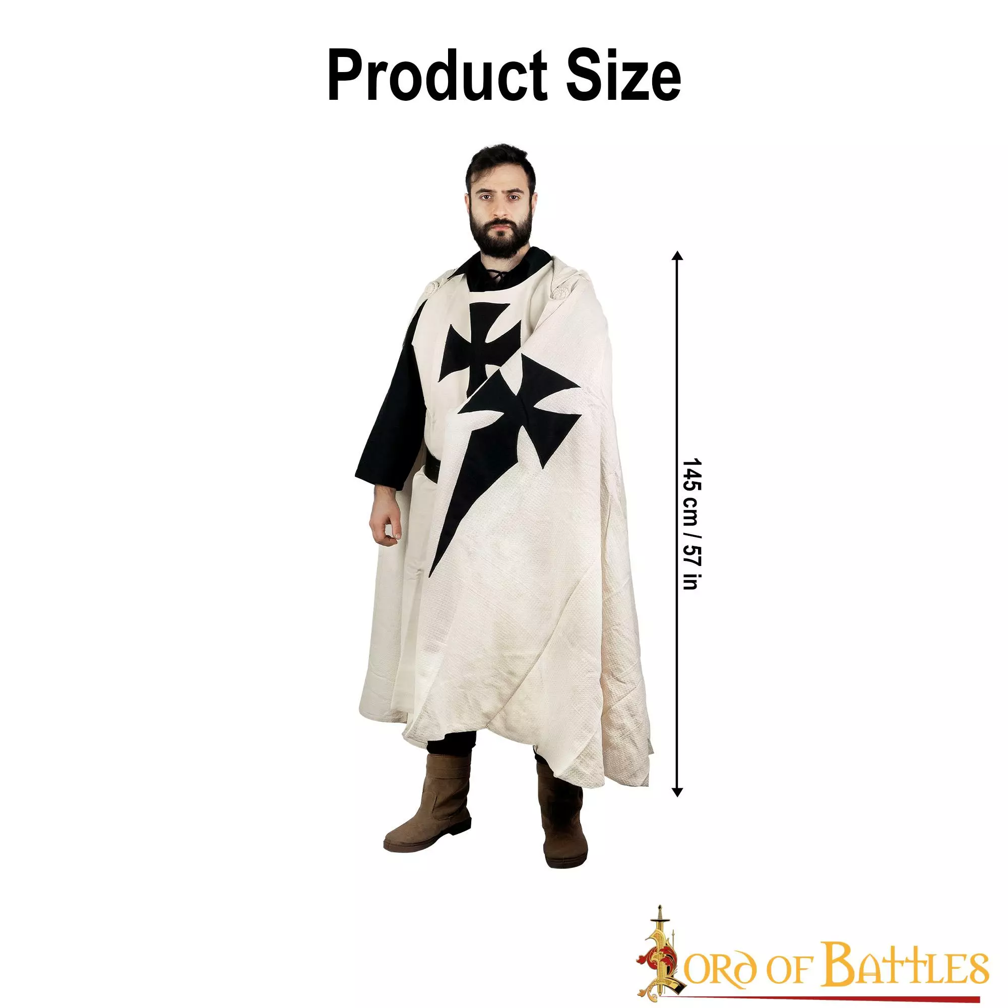Esta capa histórica está HECHA A MANO de ALGODÓN CANVAS robusto y puede durar años, evento tras evento. La preciosa cruz oscura está muy bien aplicada a la capa. La longitud total de esta capa es de aproximadamente 145 cm, lo que le confiere una estructura fluida y elegante.