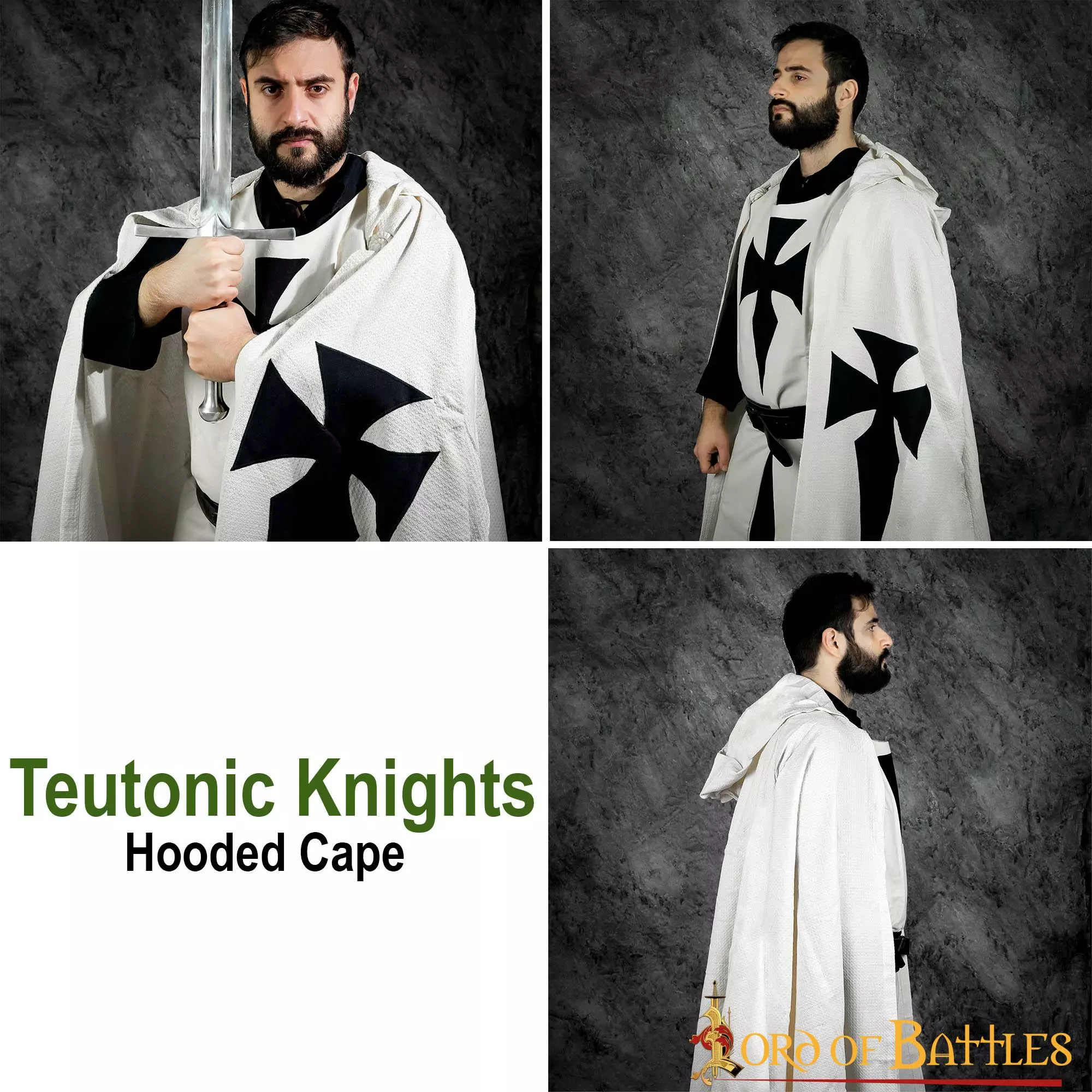 ¿Siempre ha soñado con recrear a un poderoso caballero teutón? Uno de los famosos caballeros teutones luchaba tanto en Tierra Santa como en la lejana Europa del Este. Combina uno de nuestros clásicos tabardos teutones con esta preciosa capa teutona y tendrás el atuendo perfecto para recrear al temible guerrero caballero.