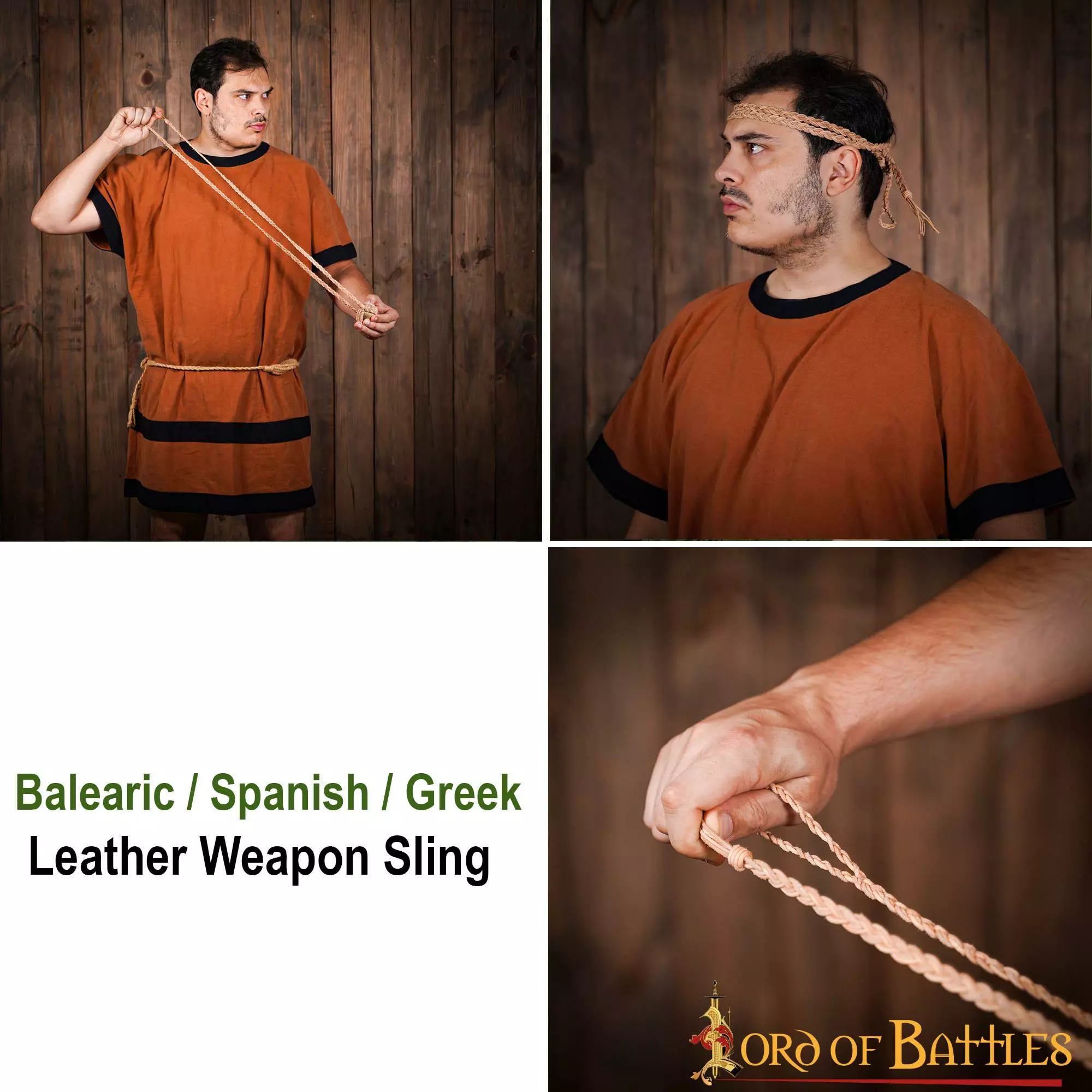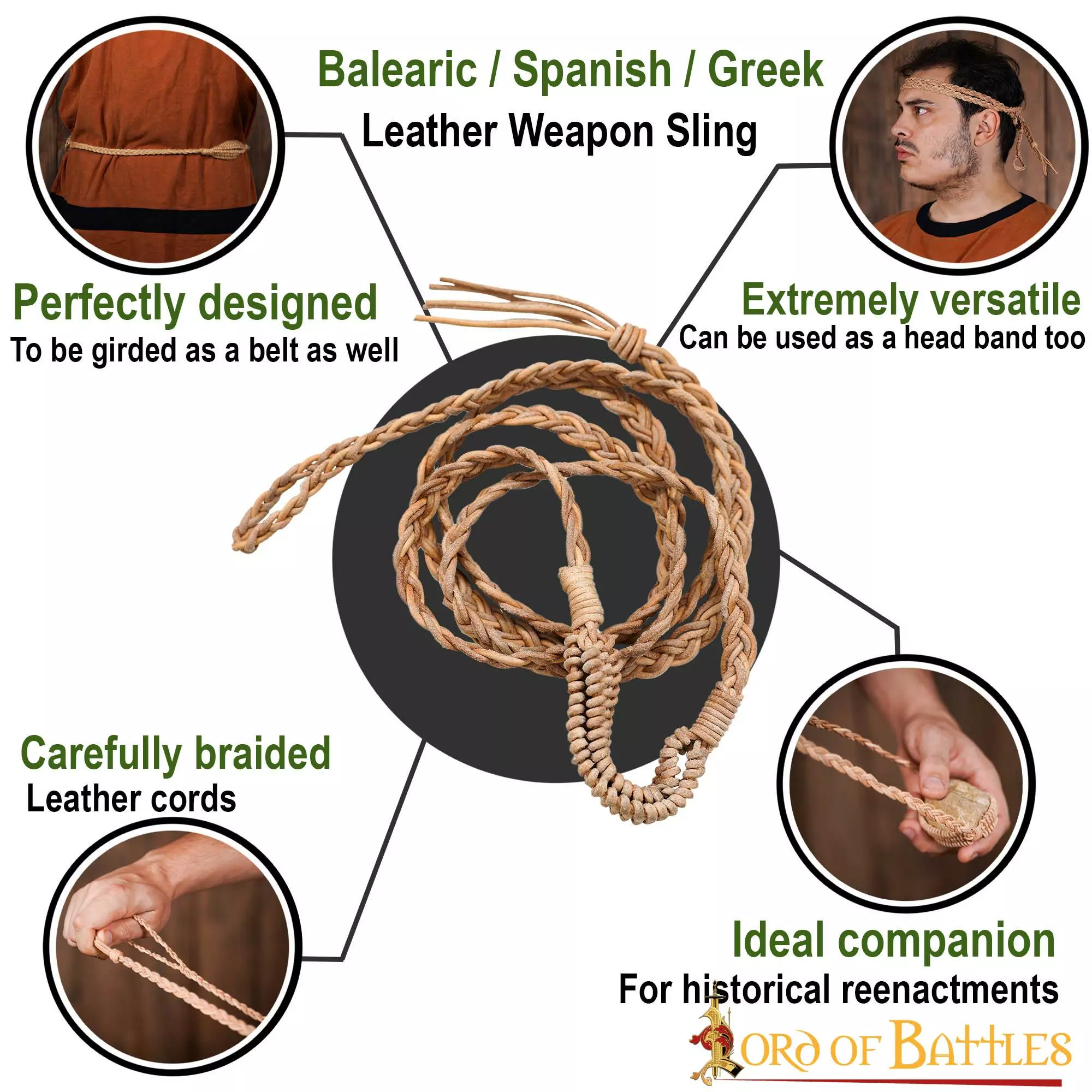 Esta eslinga de arma de 60″ de largo está cuidadosamente trenzada a mano a partir de CORDONES DE CUERO REALES Y DE ORIGEN ÉTICO, lo que garantiza su durabilidad y, por lo tanto, una gran longevidad. Es COMPLETAMENTE FUNCIONAL y está bien diseñada con un soporte de tamaño perfecto para sostener las balas o piedras de su honda. Tienes que ir de caza, pero siendo un guerrero, ¡tienes que estar preparado en todo momento! Así que para que lo tengas a tu lado vayas donde vayas, se puede atar a la cabeza o incluso ceñir como un cinturón.