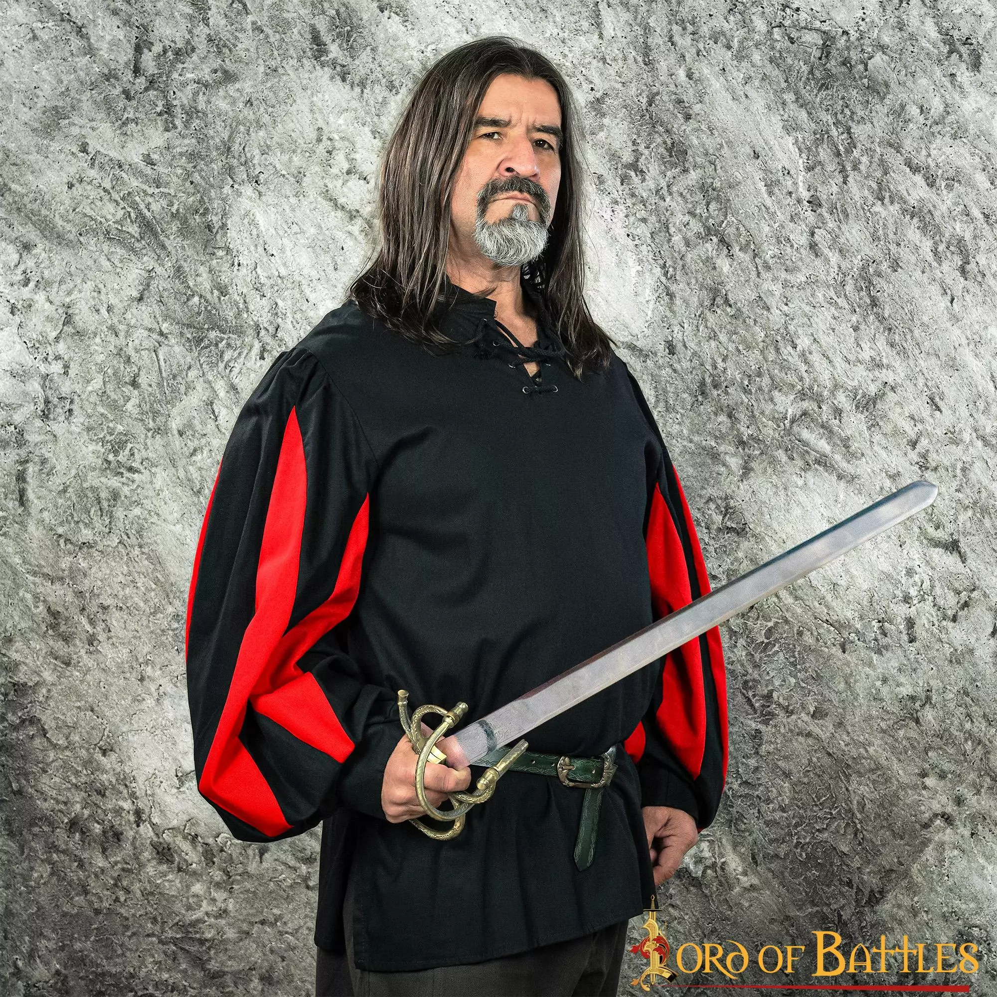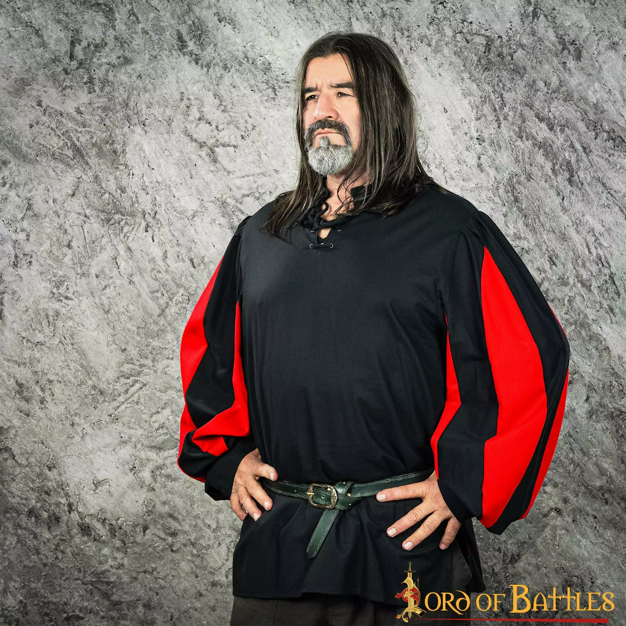 Camisa medieval y renacentista para hombre con cuello de tira y abertura para cordones.