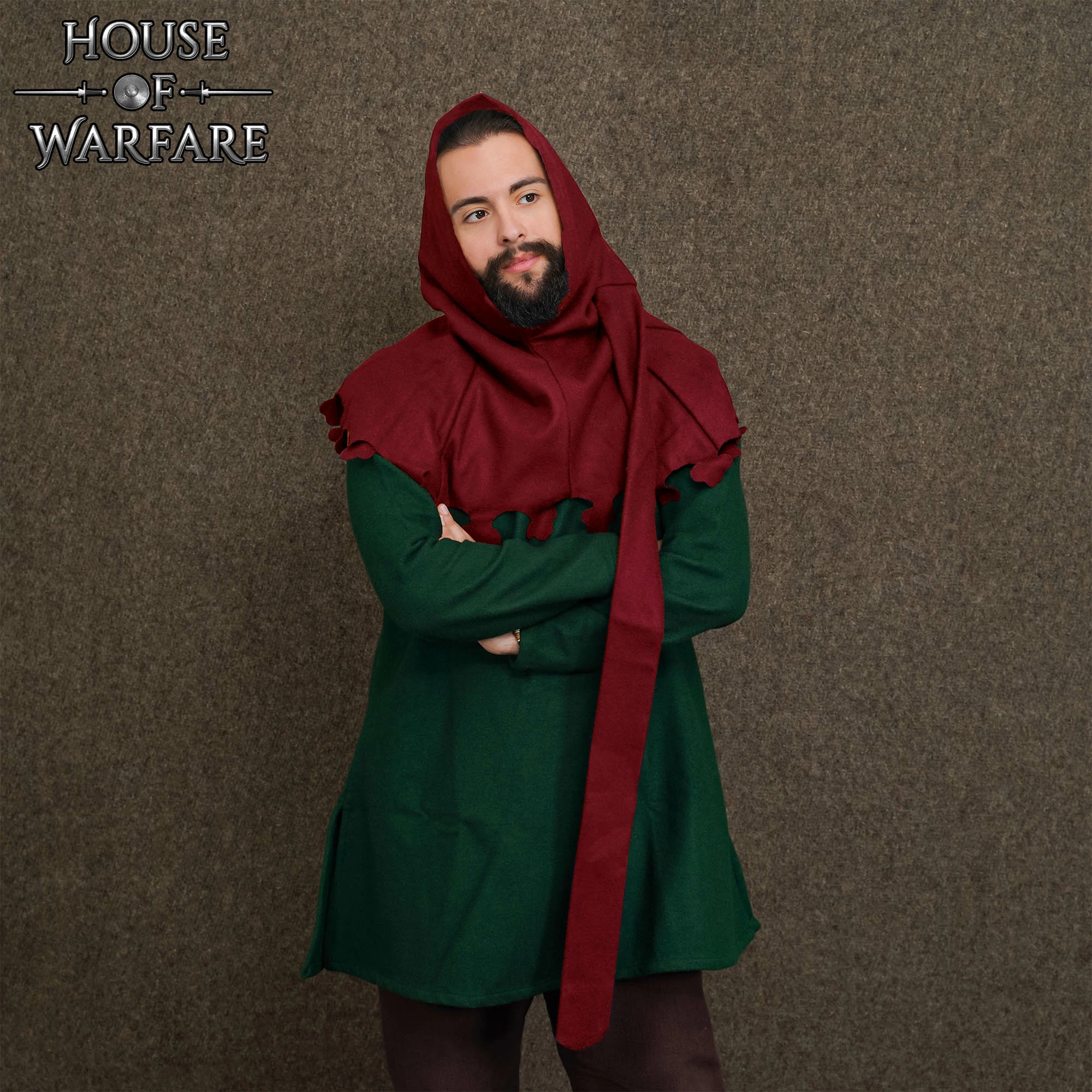 Capucha Medieval Tardía De Lana Granate Liripipe