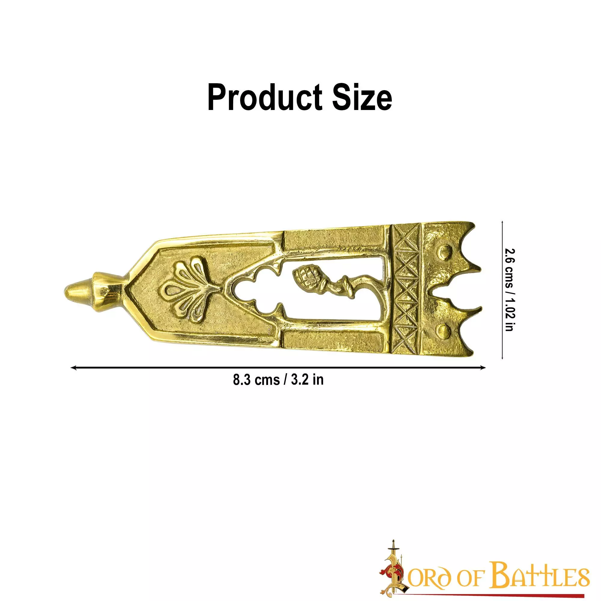 Su longitud total mide aprox. 8,3 cm, con un intrincado diseño, fabricado en LATÓN SÓLIDO RESISTENTE. Ni te imaginas lo bien que realzaría esta caperuza incluso el más sencillo de tus atuendos renacentistas o medievales.