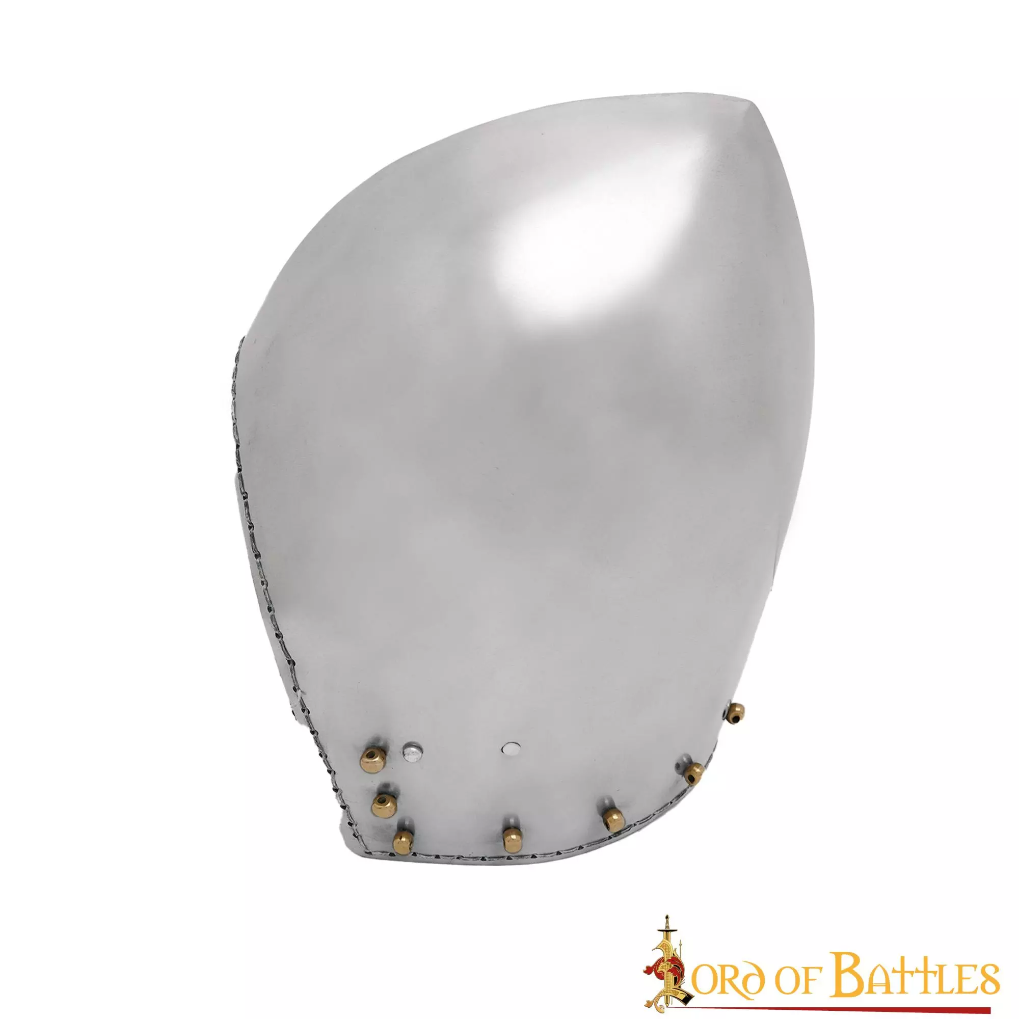 La coraza sin visera es un casco ideal para lacayos, ballesteros, lanceros y vougiers. Era popular entre los ejércitos medievales por su versatilidad y su perfecto equilibrio entre protección y movilidad. Combínelo con una de nuestras cota de malla (se vende por separado) y obtendrá una combinación óptima para su próximo LARP o recreación, ya que ofrece un aspecto magnífico sin obstaculizar la visión ni la libertad de movimiento.