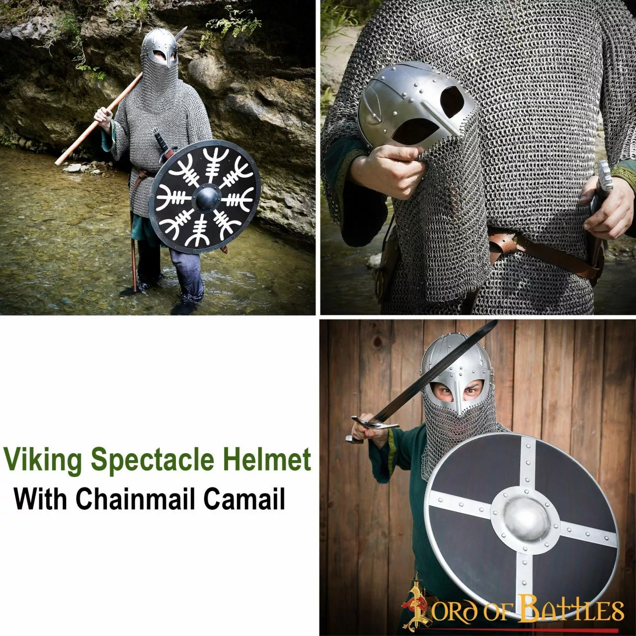 Haz que tu feroz atuendo de guerrero vikingo destaque en tu próximo evento LARP con nuestro magnífico casco Spectacle. Se trata de un CASCO FUNCIONAL muy bien diseñado, por no mencionar que su protección va un paso más allá con el CAMALEÓN DE CADENA EMPATADA (anillas de 10 mm de alambre de acero dulce de calibre 16). El soporte de madera que aparece en las fotografías de este casco está disponible por separado.