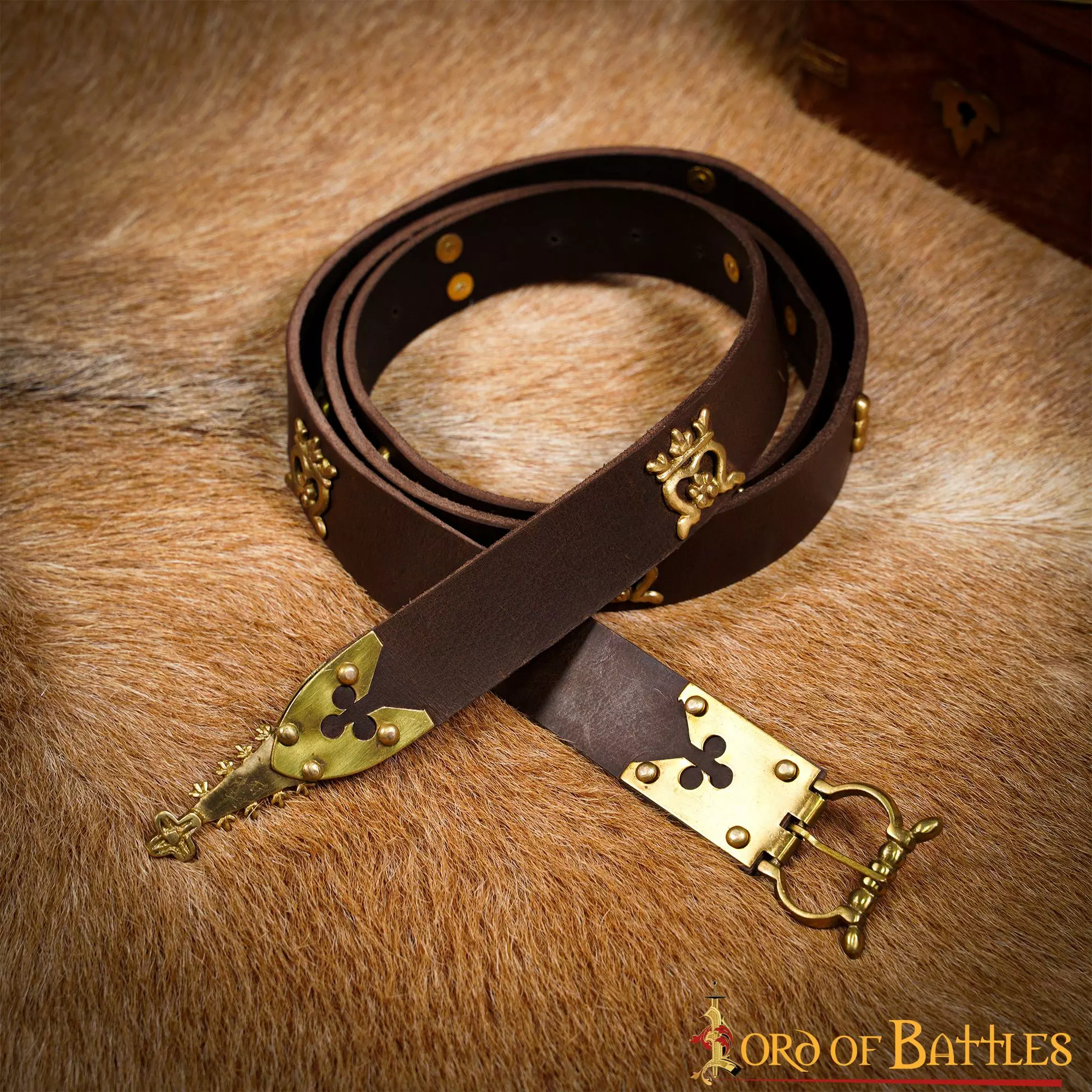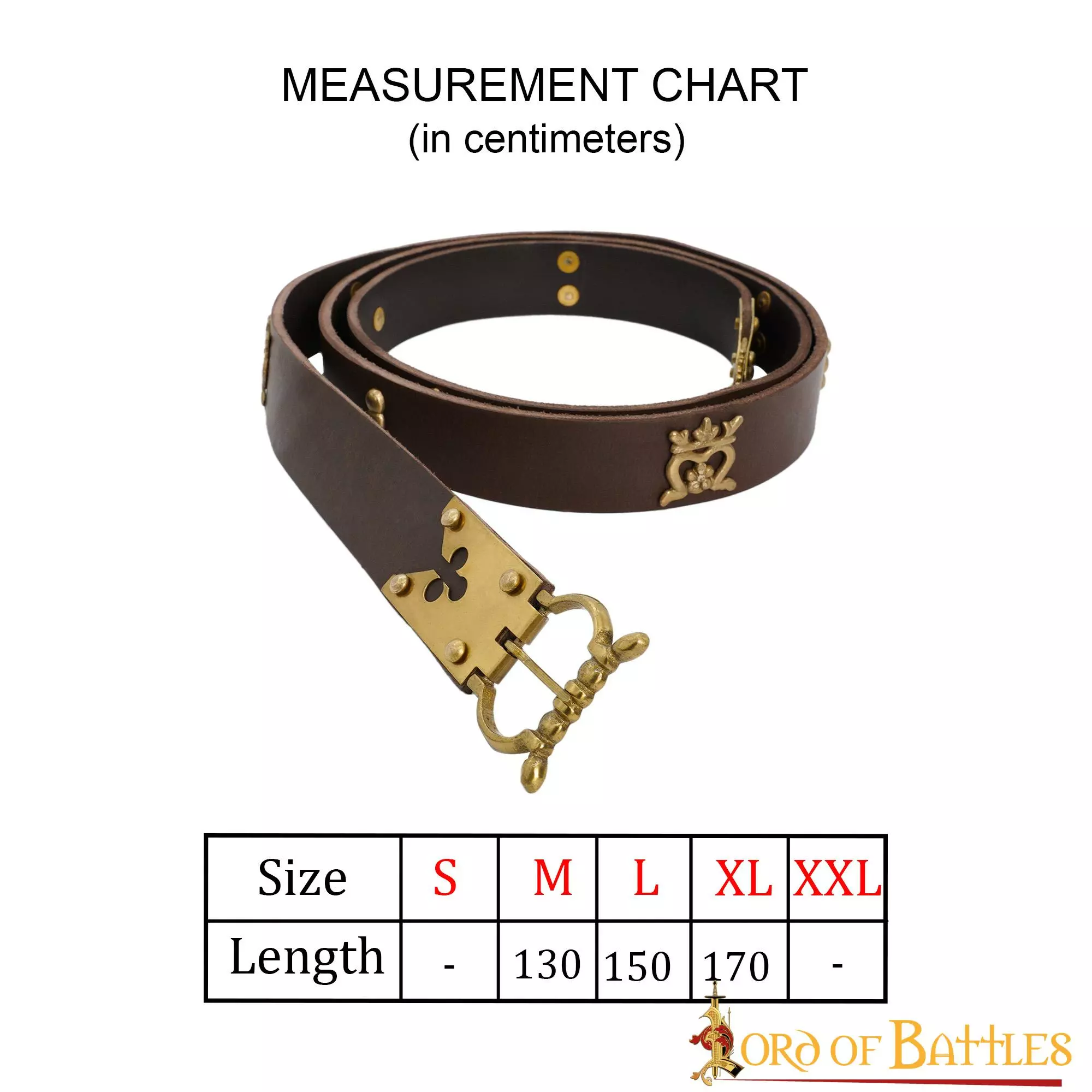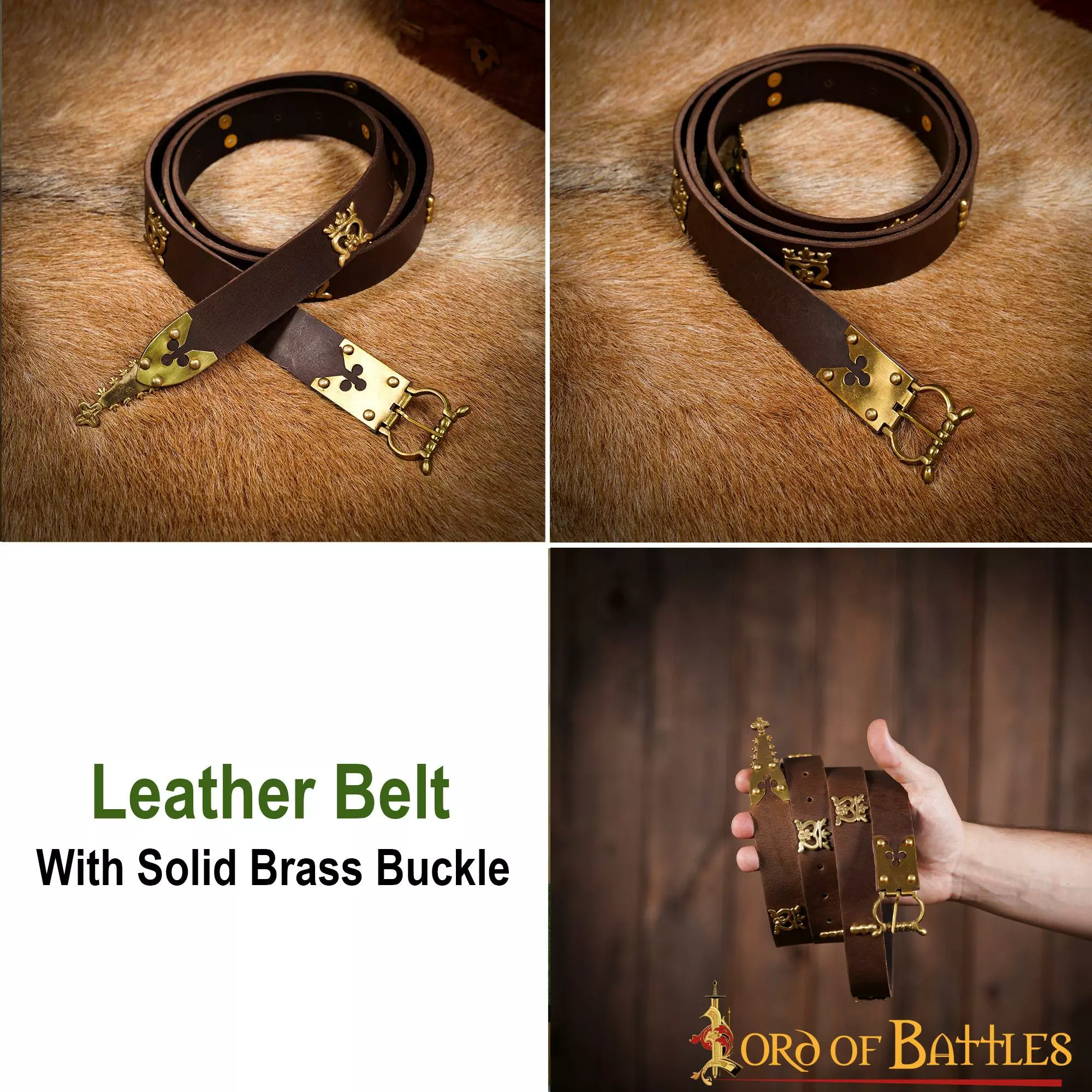 Adornado con monturas de corona de élite, una hebilla de trébol y chape, todo elaborado a partir de PURO LATÓN SÓLIDO hacer una rica correa de cuero, aún más medieval. HECHA A MANO CON CUERO DE ORIGEN ÉTICO (3-3,3 mm de grosor), no mostrará signos de arrugas en un futuro próximo. Está disponible en longitudes de 130 cm, 150 cm y 170 cm para que pueda elegir la que más le convenga. NOTA: Dado que se trata de auténtica piel de ante, asegúrese de mantenerla alejada de la humedad; límpiela regularmente con lino (o cualquier paño suave); si se mancha, un paño húmedo y un poco de espuma de jabón suave harán lo necesario.