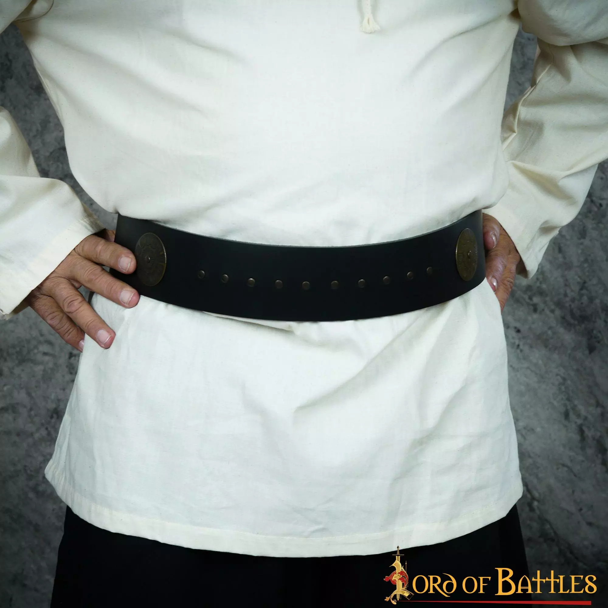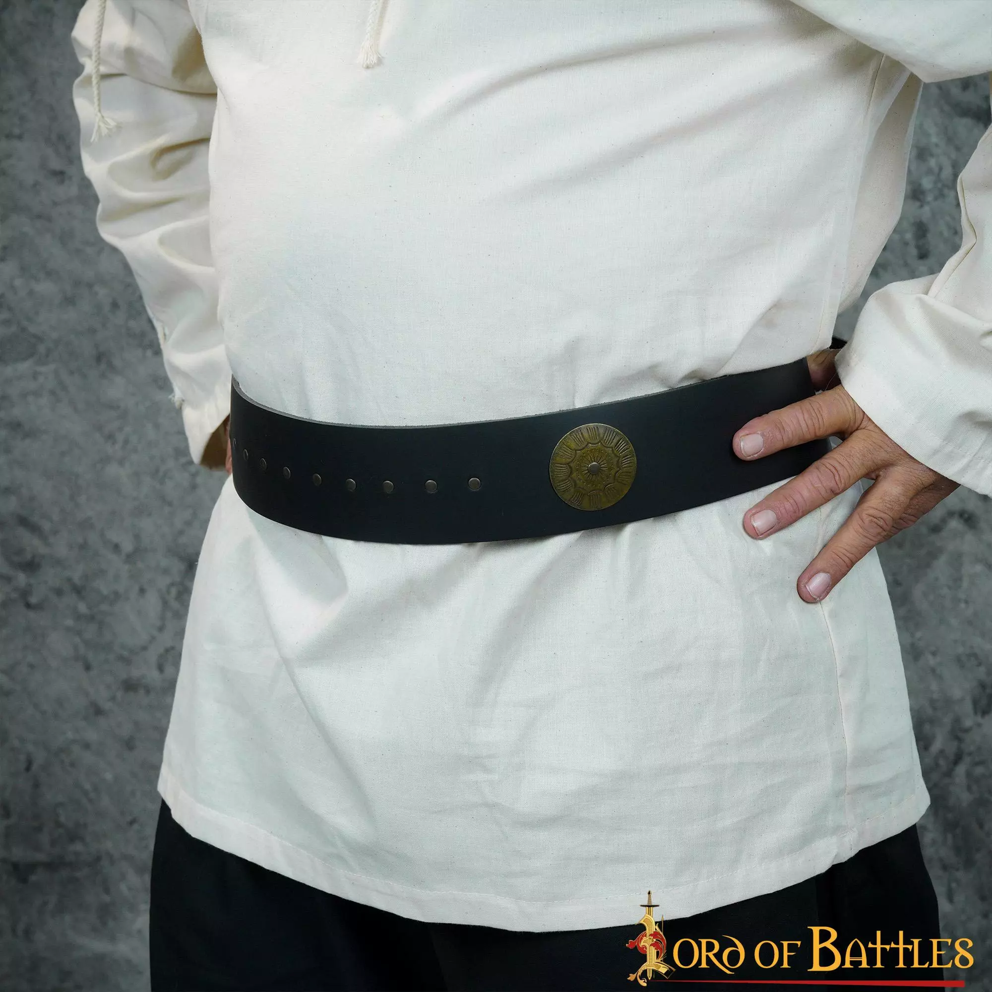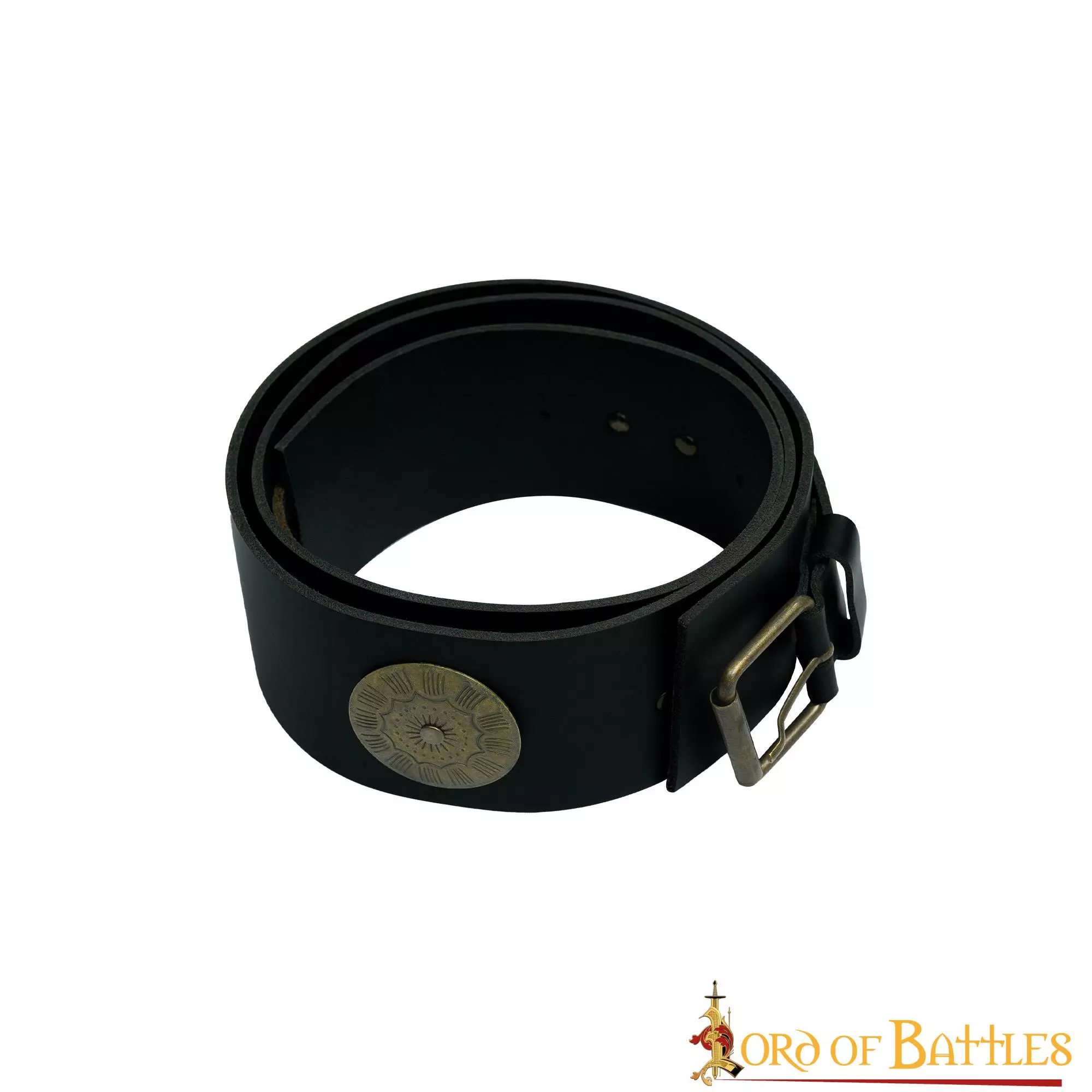 Mythrojan Cinturón Vikingo Medieval De Cuero Del Renacimiento Con Hebilla De Latón – Negro