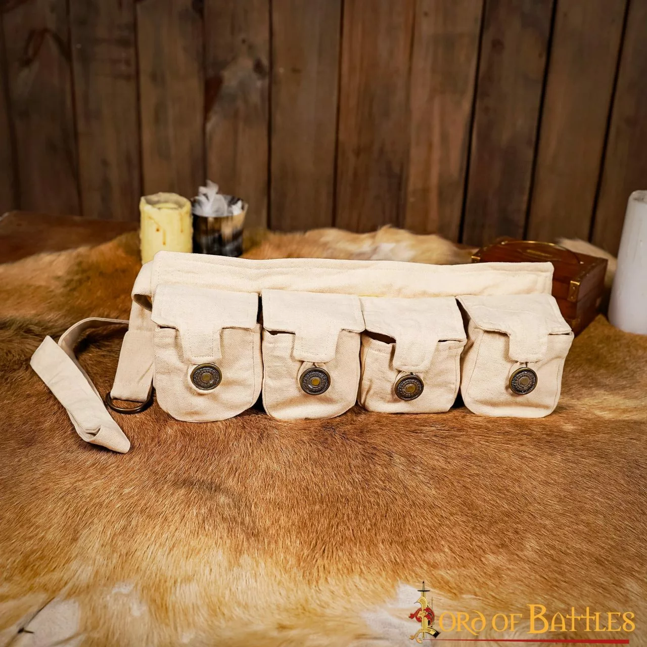 Cinturón Medieval De Cuatro Bolsas Hecho A Mano Con Lona De Algodón