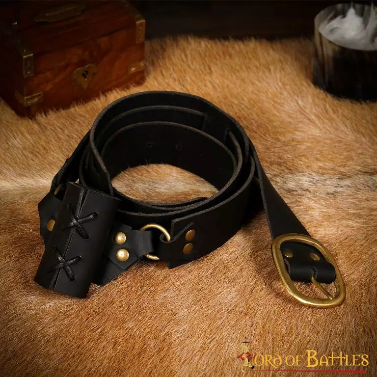 Lleve consigo una gloriosa espada de cruzado templario o una robusta hacha vikinga, este baldric de cuero medieval es un accesorio sin igual para todos los soldados y caballeros diestros.