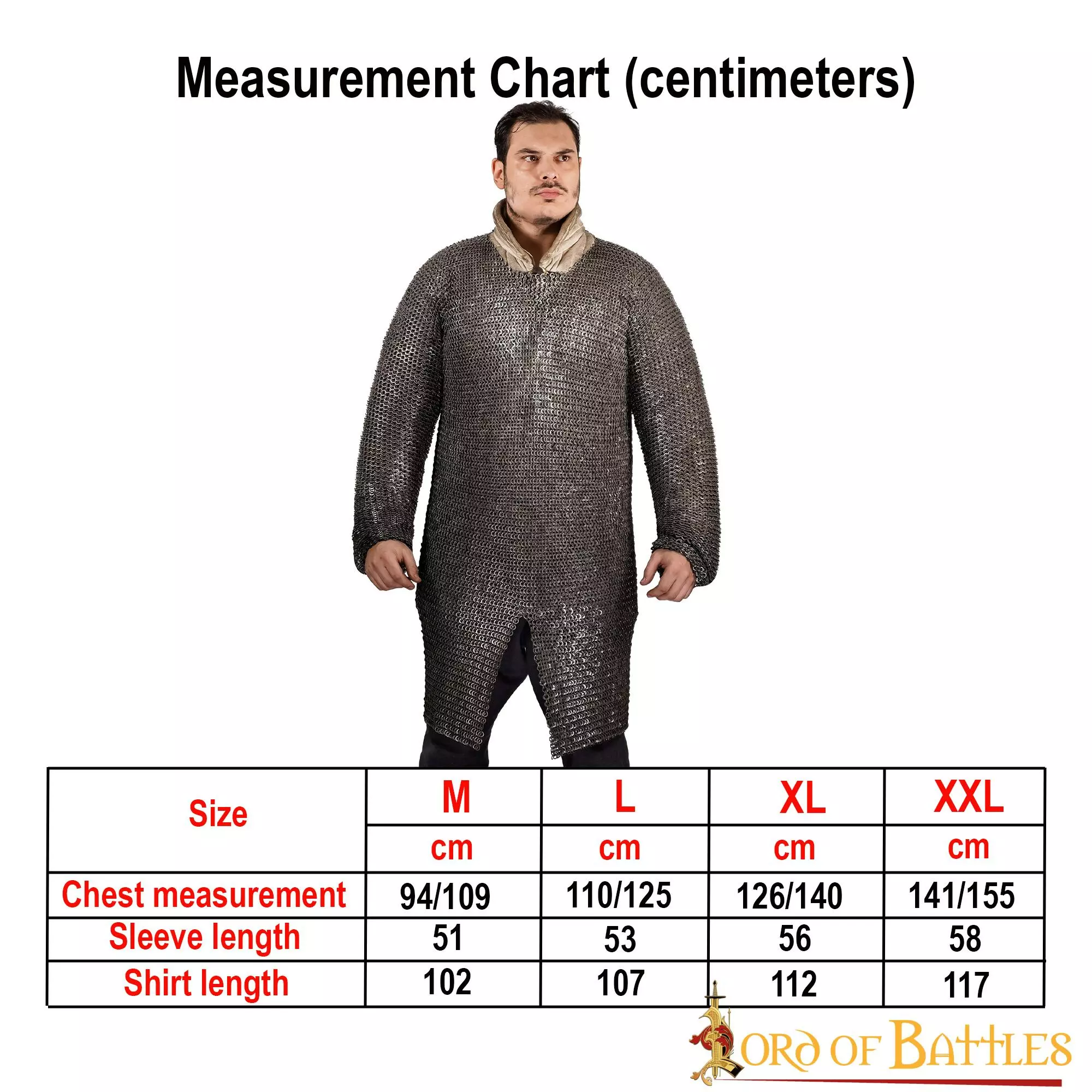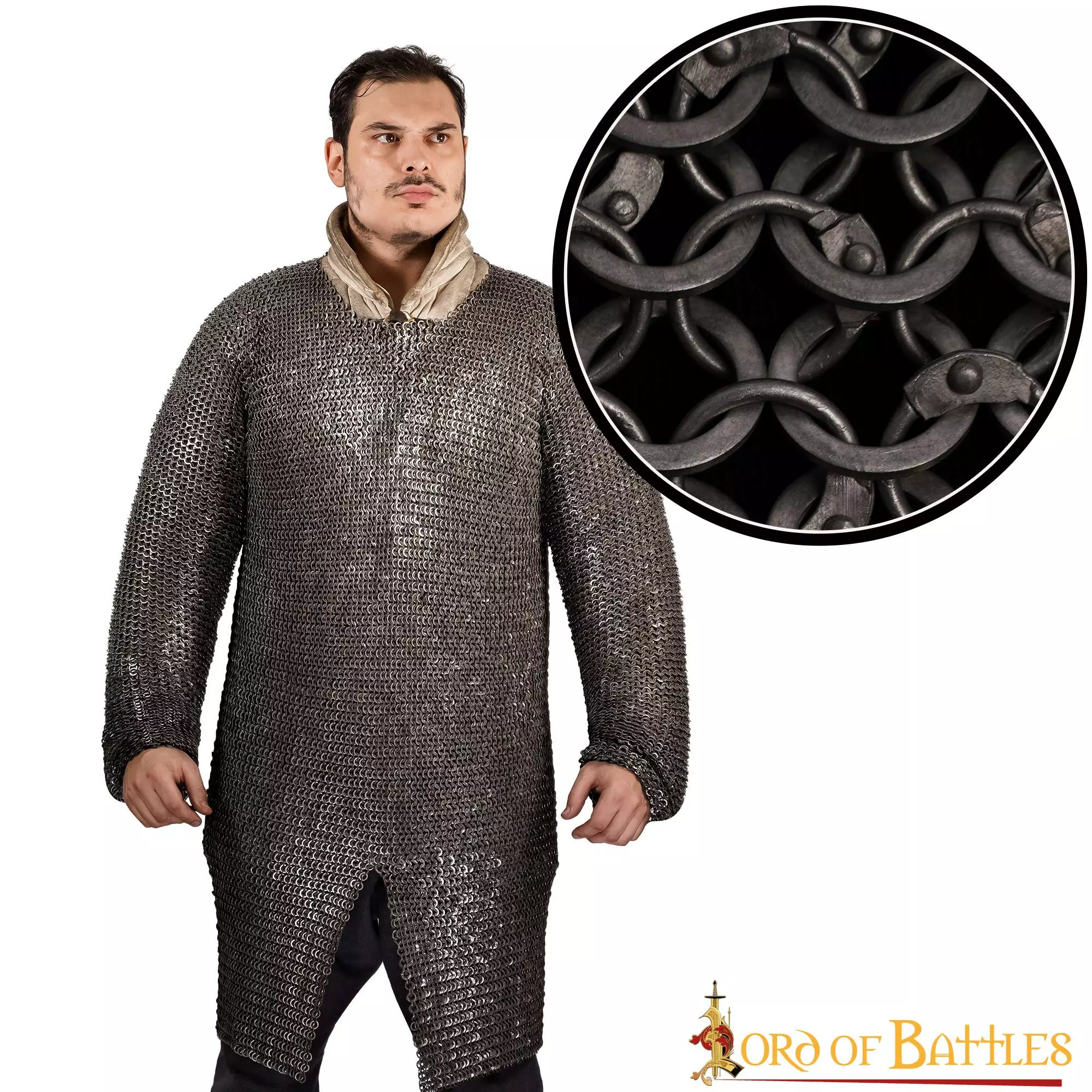 Meticulosamente hecha a mano por nuestros expertos artesanos, esta camisa de cota de malla proporcionará una sólida protección en el campo de batalla. Llévala debajo de tu sobrevesta y combínala con un cinturón que te permitirá distribuir mejor el peso y te facilitará el uso de la cota de malla.