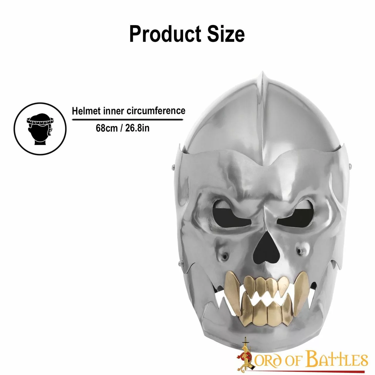 Nuestro robusto casco de calavera de demonio es una magnífica pieza de armadura de fantasía. No solo está cuidadosamente diseñado y fabricado a mano con acero de calibre 18, sino que también se adapta perfectamente a tu atuendo de parca o incluso a tus disfraces de LARP y cosplay.