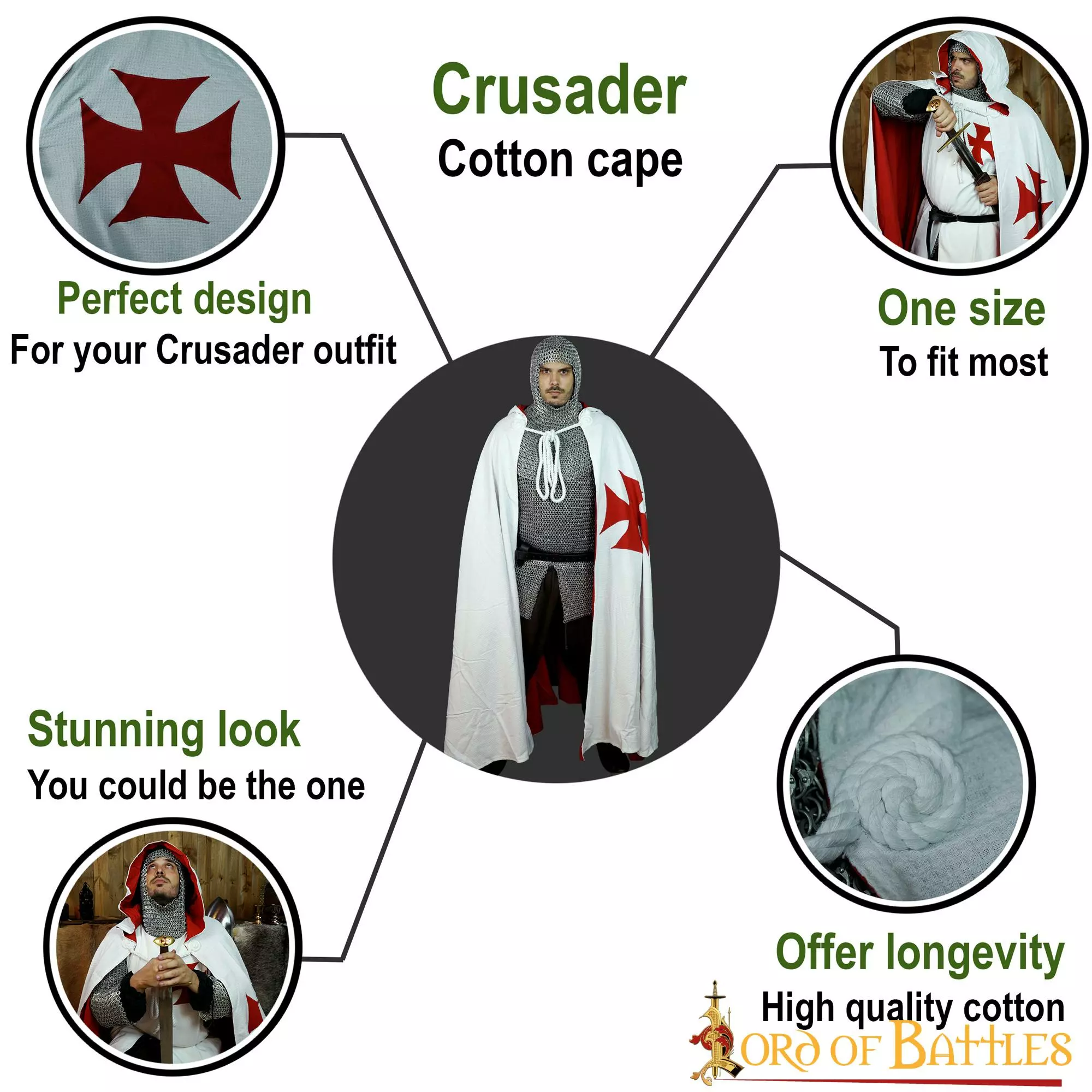 ¿Siempre has soñado con recrear a los famosos caballeros cruzados que iban de cruzada a Tierra Santa? Puedes hacerlo fácilmente combinando uno de nuestros clásicos tabardos de cruzado con esta preciosa capa con capucha de cruzado, ¡y tendrás el atuendo perfecto para recrear al temible caballero guerrero!