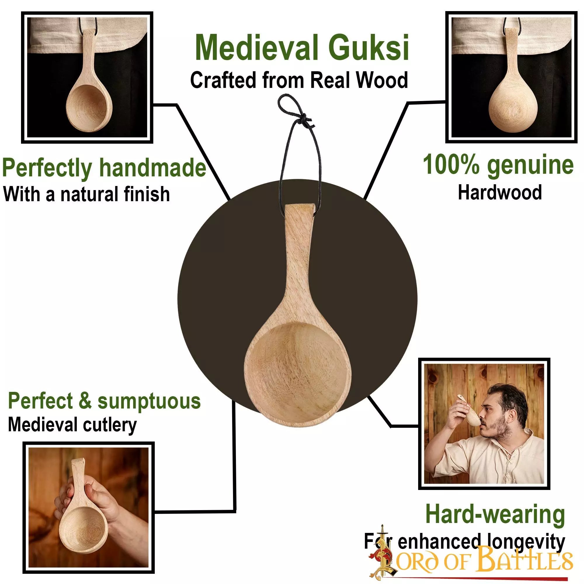 Utilizado sobre todo como cuchara para beber por los antiguos habitantes, este Guksi es una artesanía de madera de inspiración histórica, ¡para un gusto único como el suyo! Está bien diseñado con una textura de madera natural y tiene un aspecto étnico a la misma.