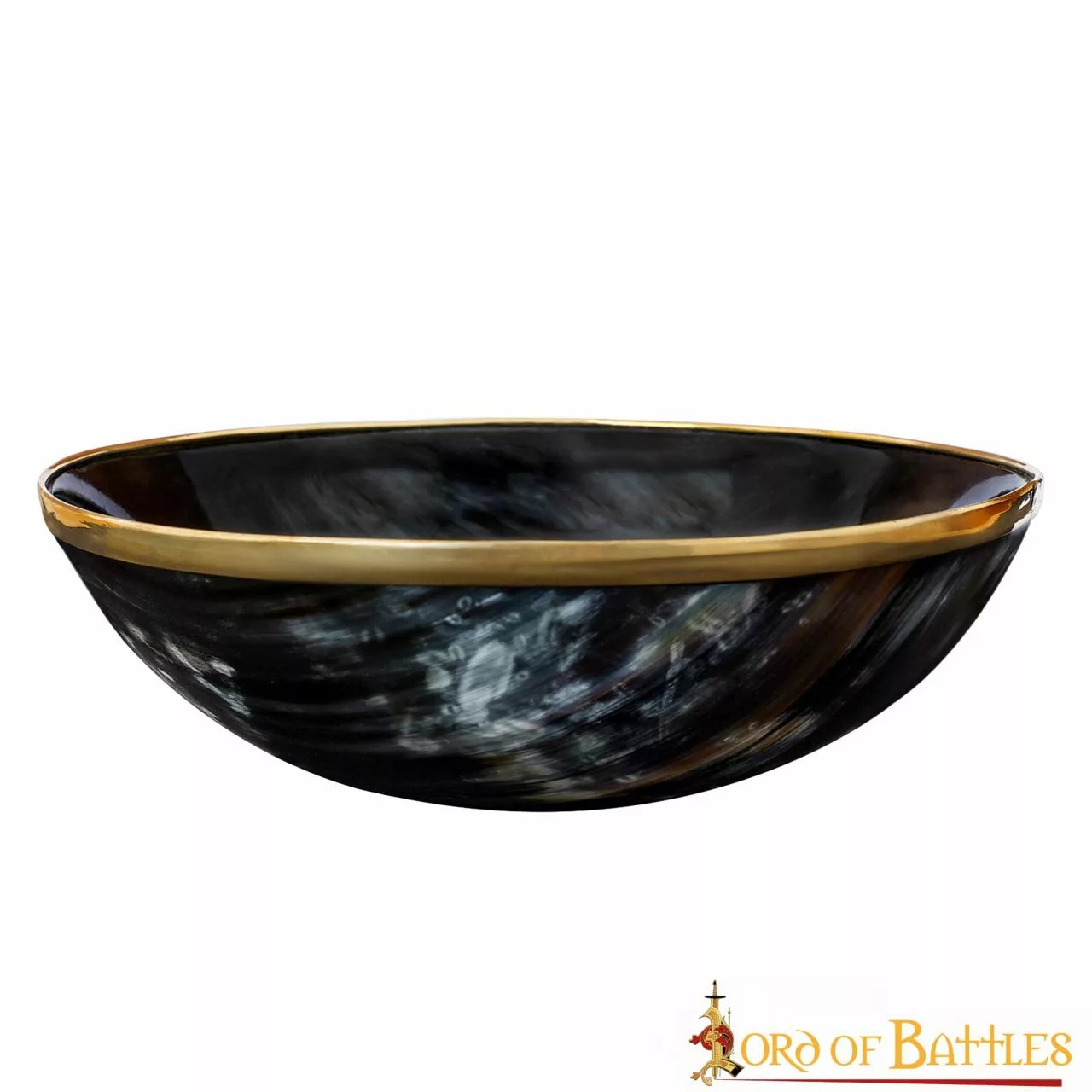 Cuenco Medieval De Cuerno Auténtico Con Borde De Latón Macizo