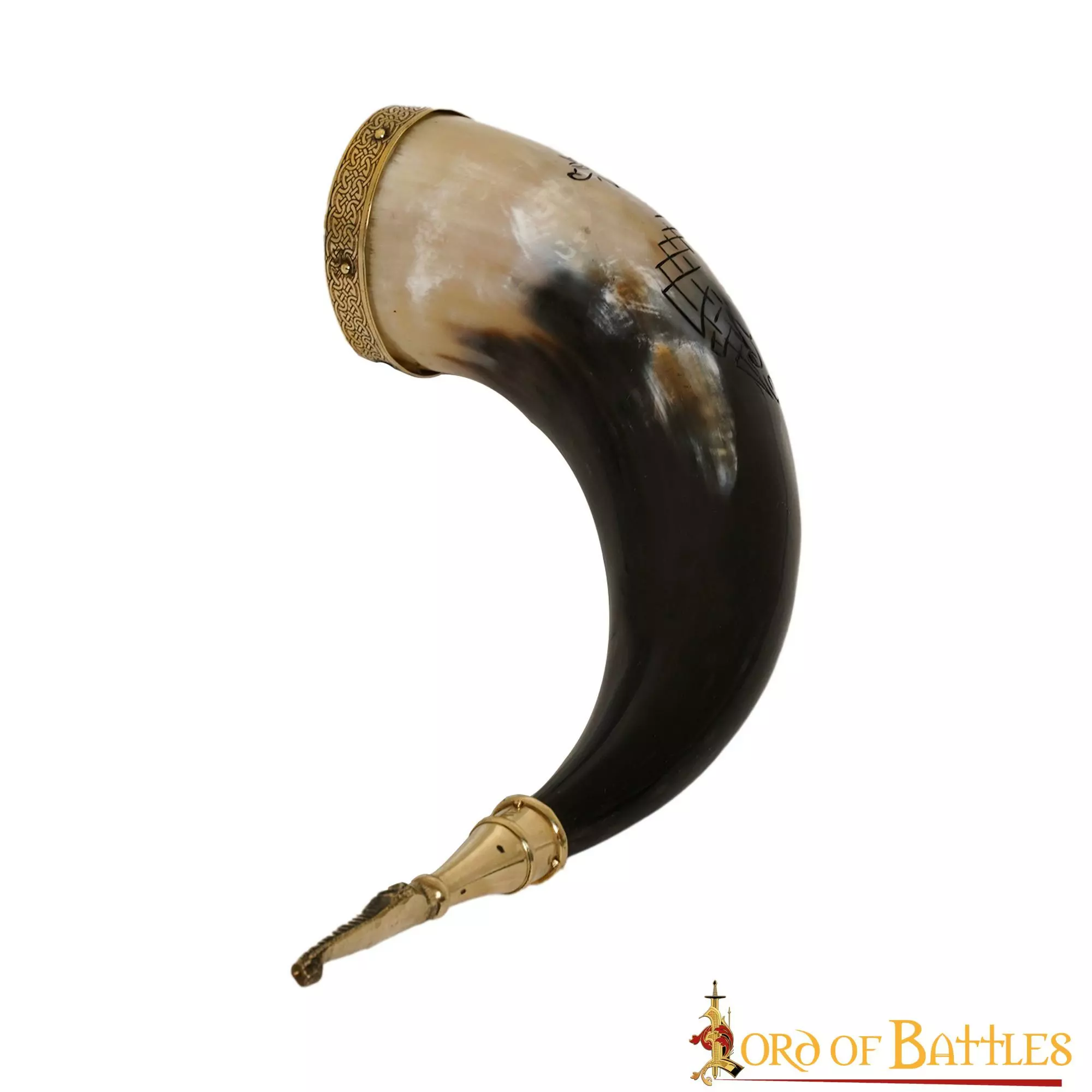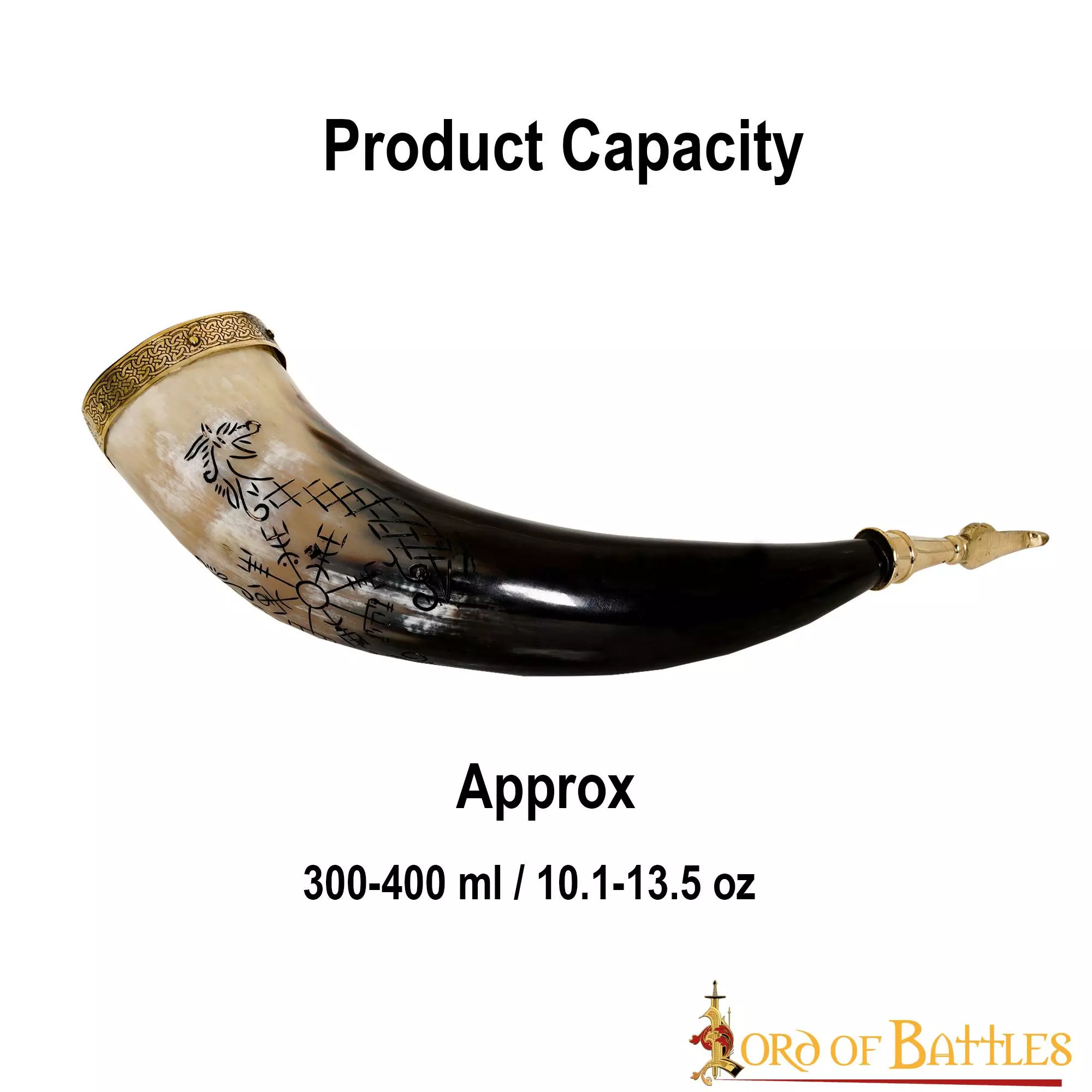 Sírvete un poco de hidromiel bien añejado en nuestro cuerno para beber con nudo de escudo vikingo; al fin y al cabo, ¿qué más necesitan los guerreros victoriosos después de aniquilar a sus enemigos? Además de tener grabados a Vegvisir y Jormungandr, está decorado ornamentalmente con BORDE Y PUNTA DE LATÓN PURO, ¡lo que lo hace visualmente atractivo y la mejor opción para regalar a tus seres queridos! Como nos gusta cuidar de nuestros productos naturales tanto como a ti, suministramos este cuerno con una resistente bolsa de lona de algodón de alta calidad que lo mantendrá seguro y protegido durante años.