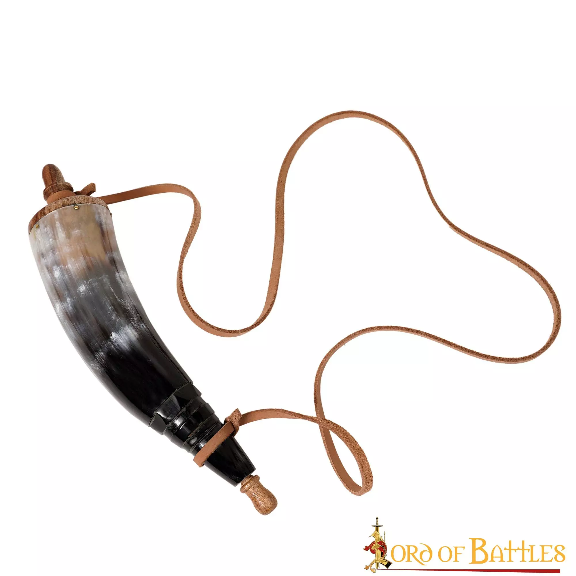 ¿Te apetece revivir un deporte de caza medieval con tus amigos? Nuestro cuerno de pólvora es justo lo que necesita su atuendo. Como queremos que lo lleves cómodamente, lo hemos equipado con una resistente cuerda de cuero auténtico. Así que ya sea una aventura en la naturaleza o un viaje a las profundidades marinas, nuestro cuerno de pólvora siempre estará a tu lado.