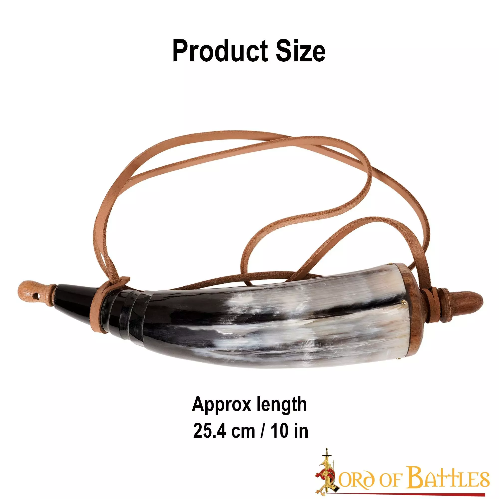 Porque queremos que «mantengas tu pólvora seca», este cuerno ha sido hecho a mano de AUTÉNTICO, REAL CUERNO DE BÓXEL y viene con una tapa fija y un tapón de válvula extraíble. La altura total de este cuerno es de aprox. 10 pulgadas, justo la capacidad perfecta para su pólvora. Tenga en cuenta que se trata de un producto natural que se descompone con el tiempo y, por lo tanto, pueden aparecer grietas. Es un compañero ideal para sus recreaciones históricas.