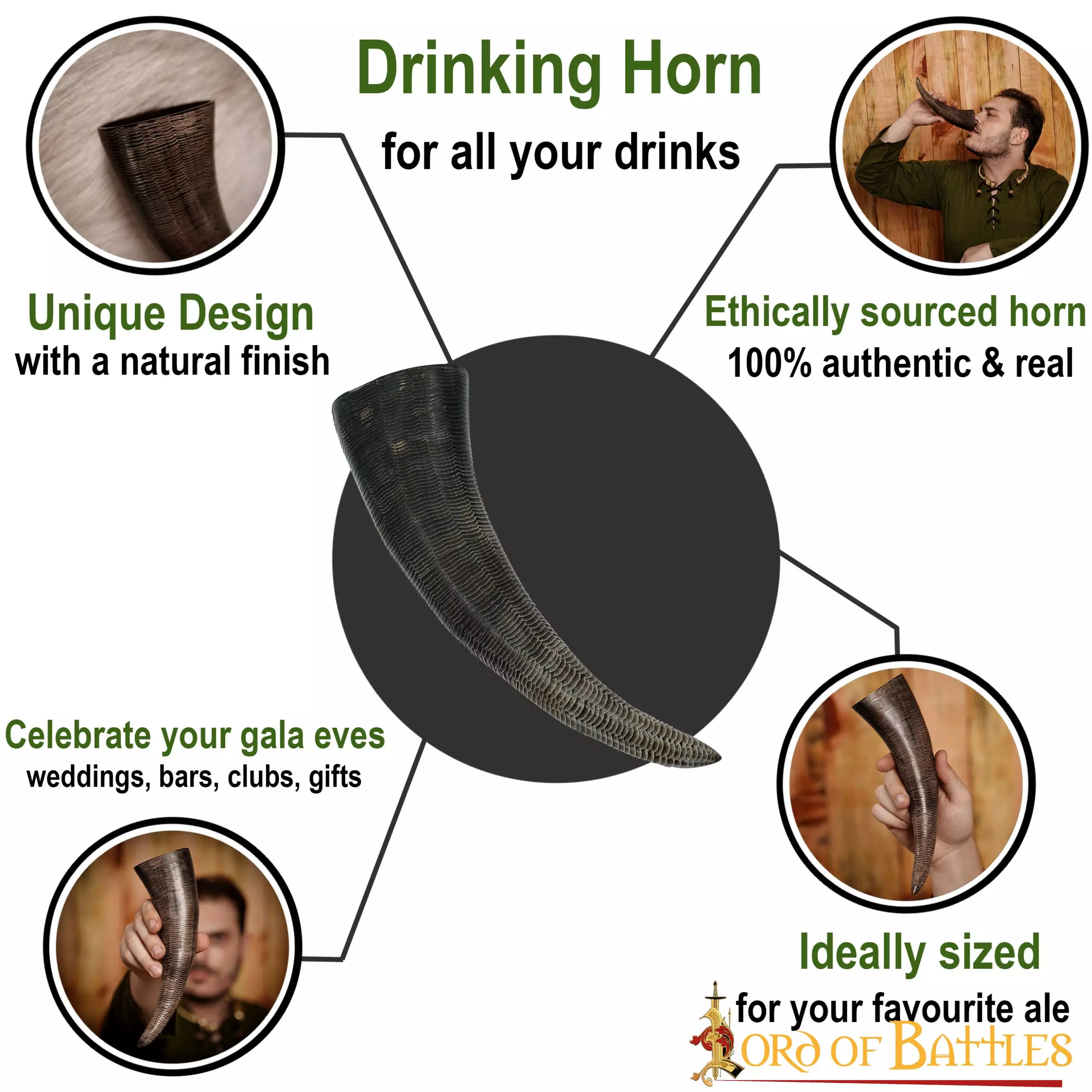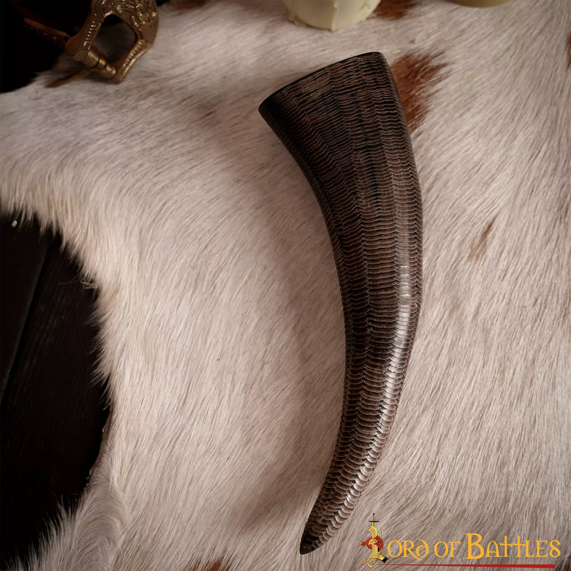 Nuestro auténtico cuerno para beber con diseño de escamas talladas sería el mejor complemento para sus banquetes medievales o una reunión vikinga. Como nos gusta cuidar de nuestros productos naturales tanto como a usted, suministramos este cuerno con una resistente bolsa de lona de algodón de alta calidad que lo mantendrá seguro y protegido durante años.