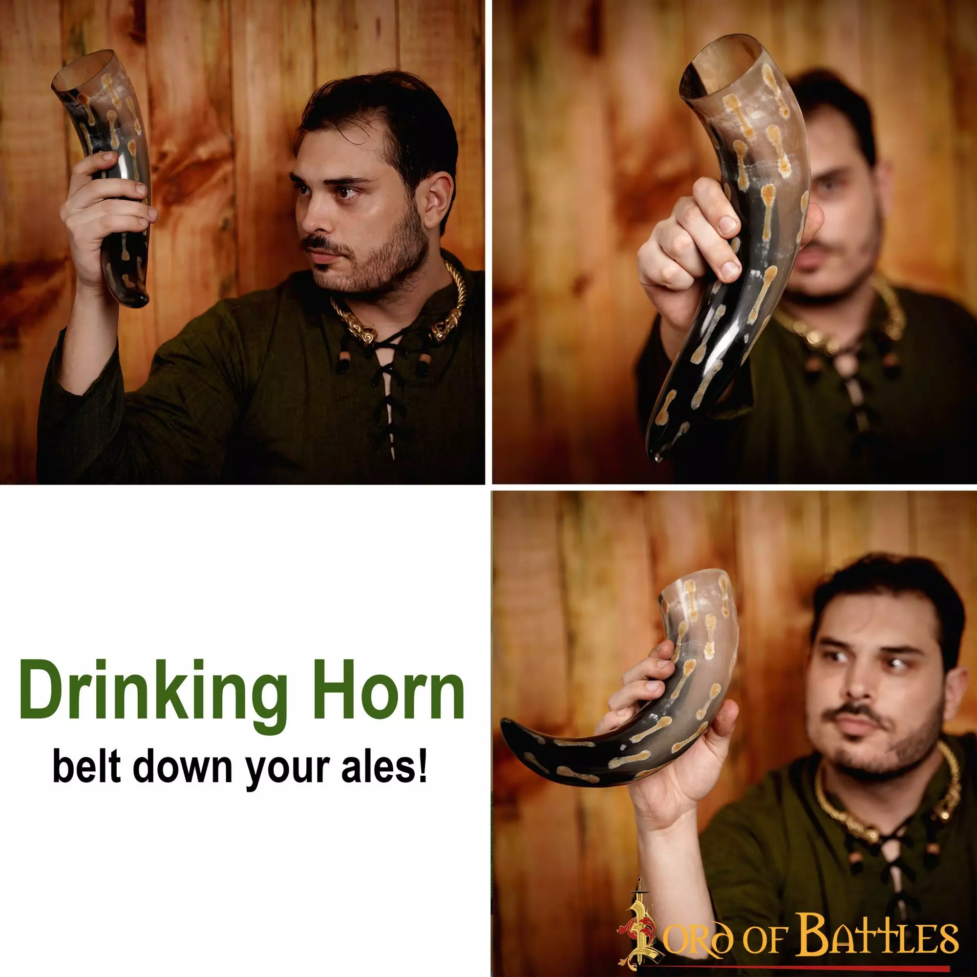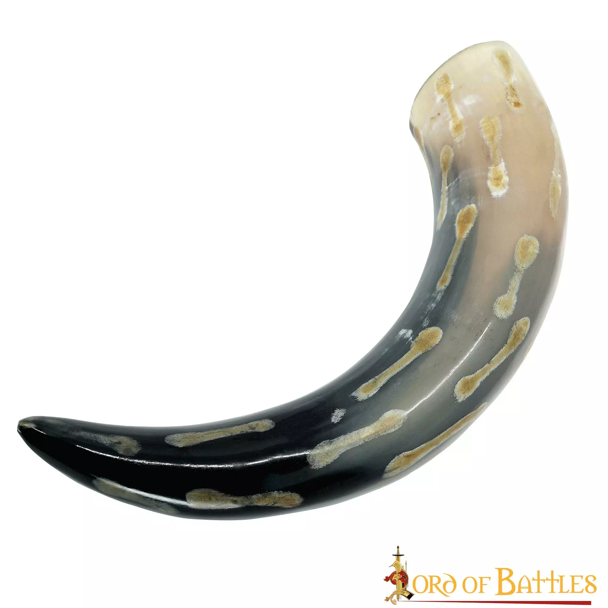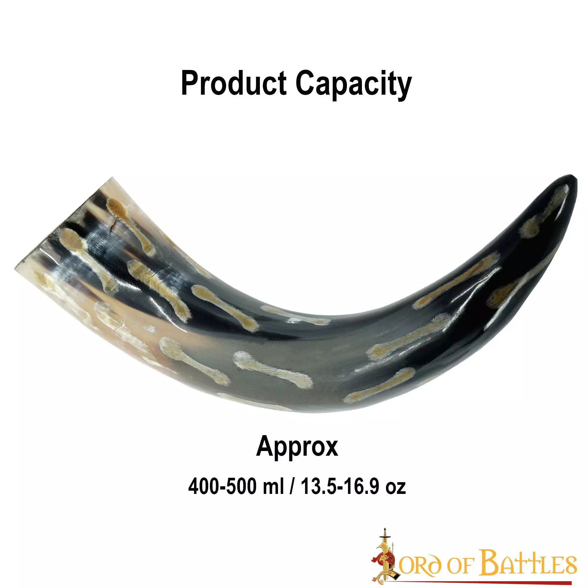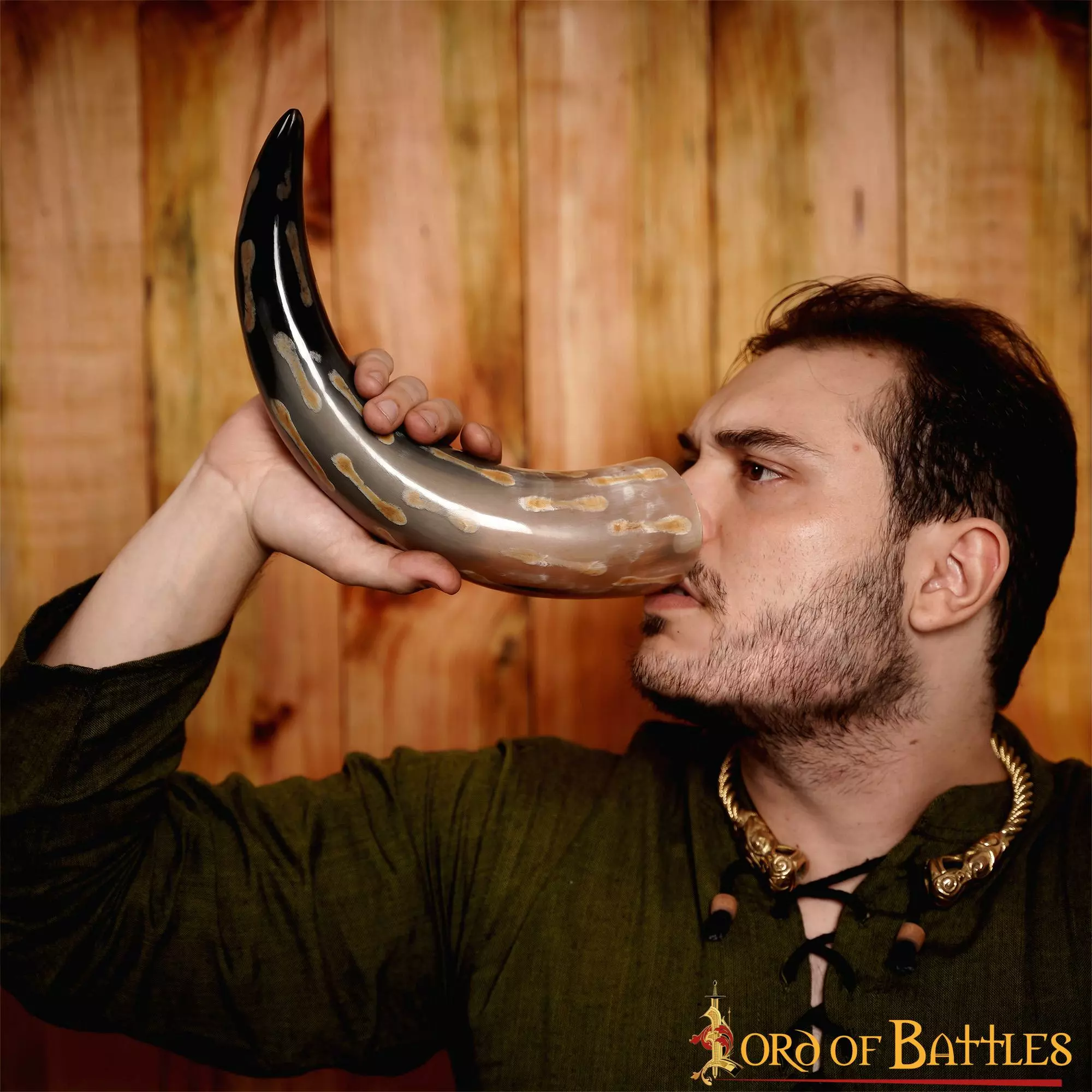 Brinda por otra batalla victoriosa con nuestro cuerno medieval para beber, hecho a mano con cuerno de bovino de origen ético y adornado con motas cuidadosamente carbonizadas. Como viene con una bolsa, ¡se puede cuidar sin esfuerzo durante años!