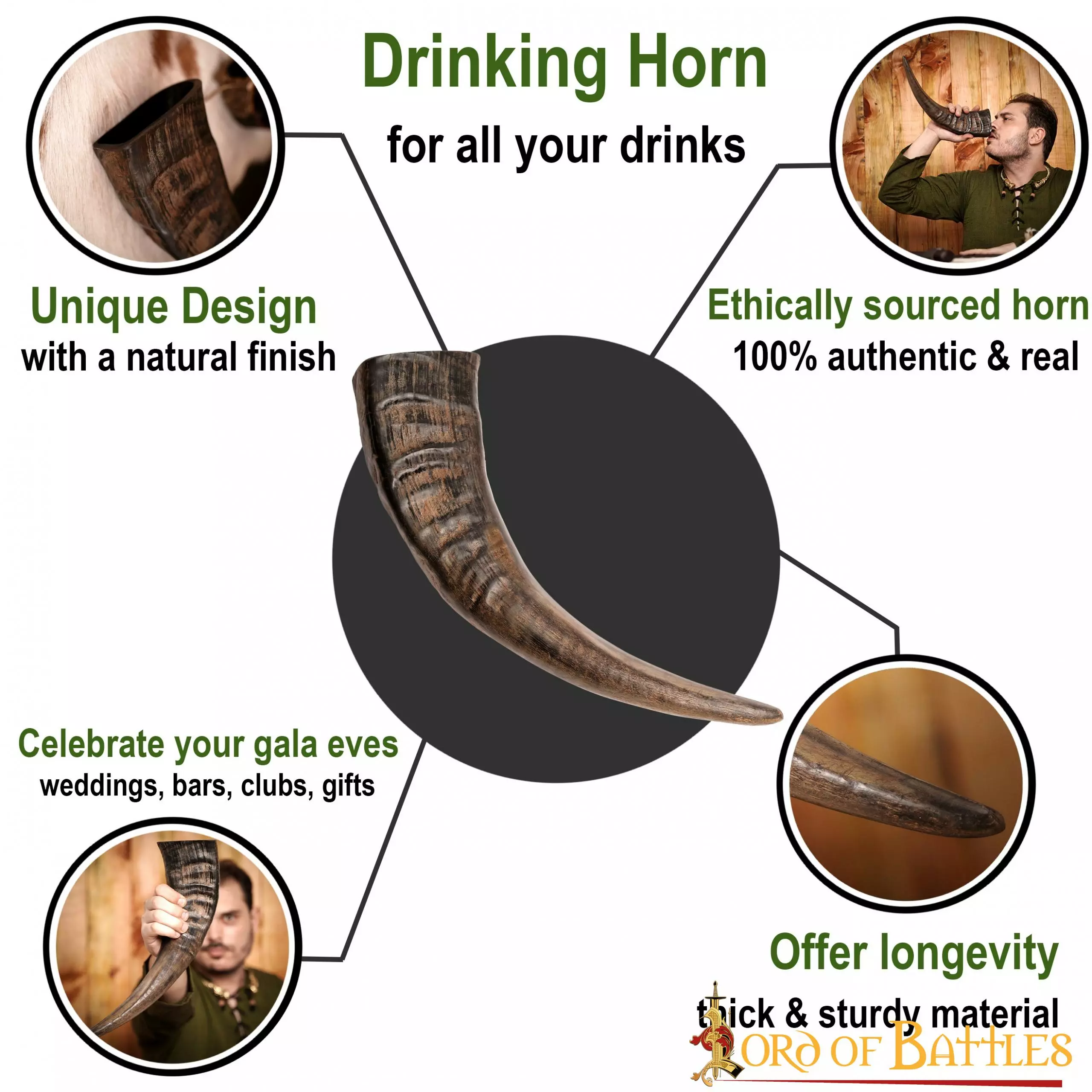 Sacie su sed o simplemente llévelo a todas partes, nuestro auténtico cuerno para beber con textura natural será lo mejor para sus alegres reuniones vikingas. Como nos encanta cuidar de nuestros productos naturales tanto como a ti, suministramos este cuerno con una bolsa de lona de algodón resistente y de alta calidad que lo mantendrá seguro y protegido durante años.