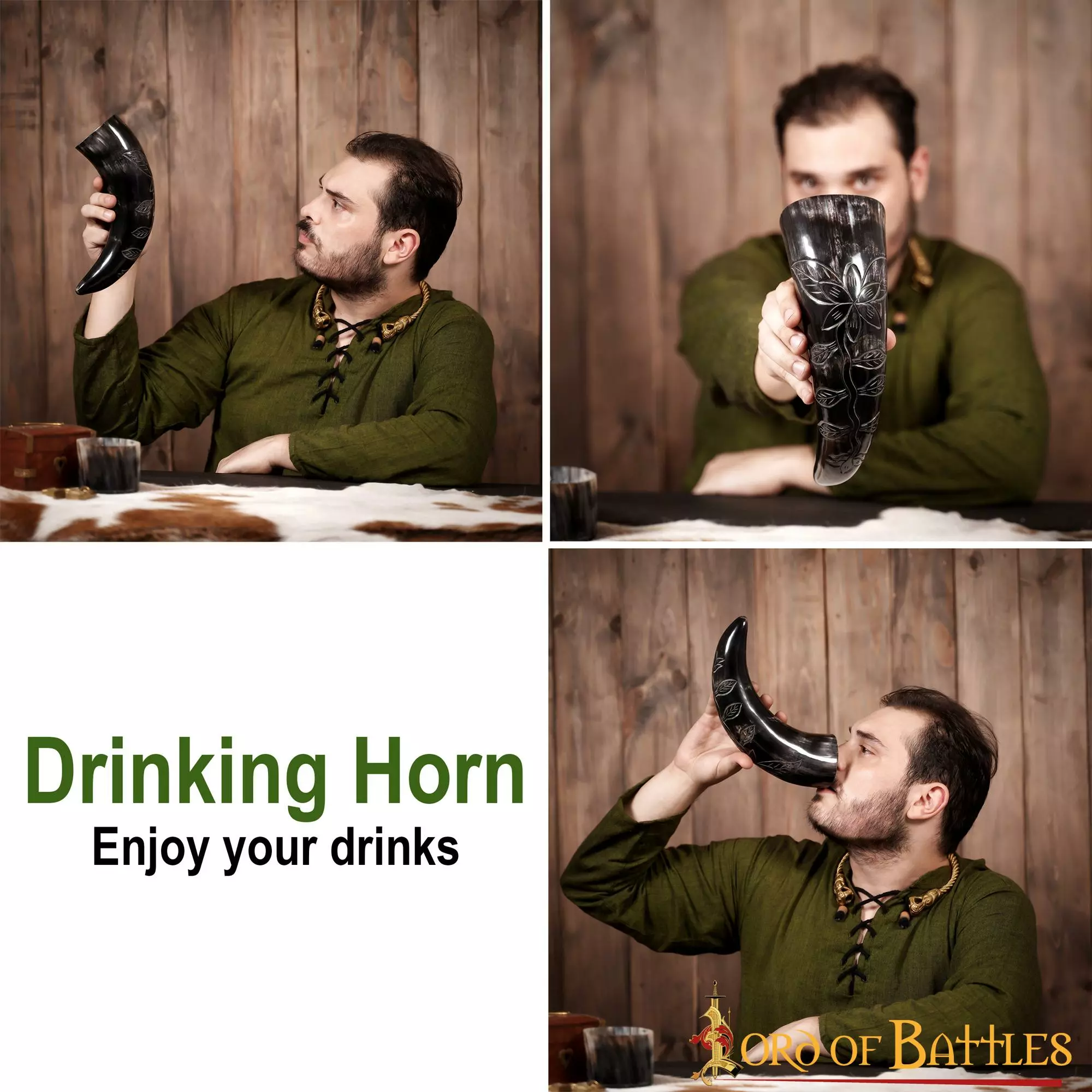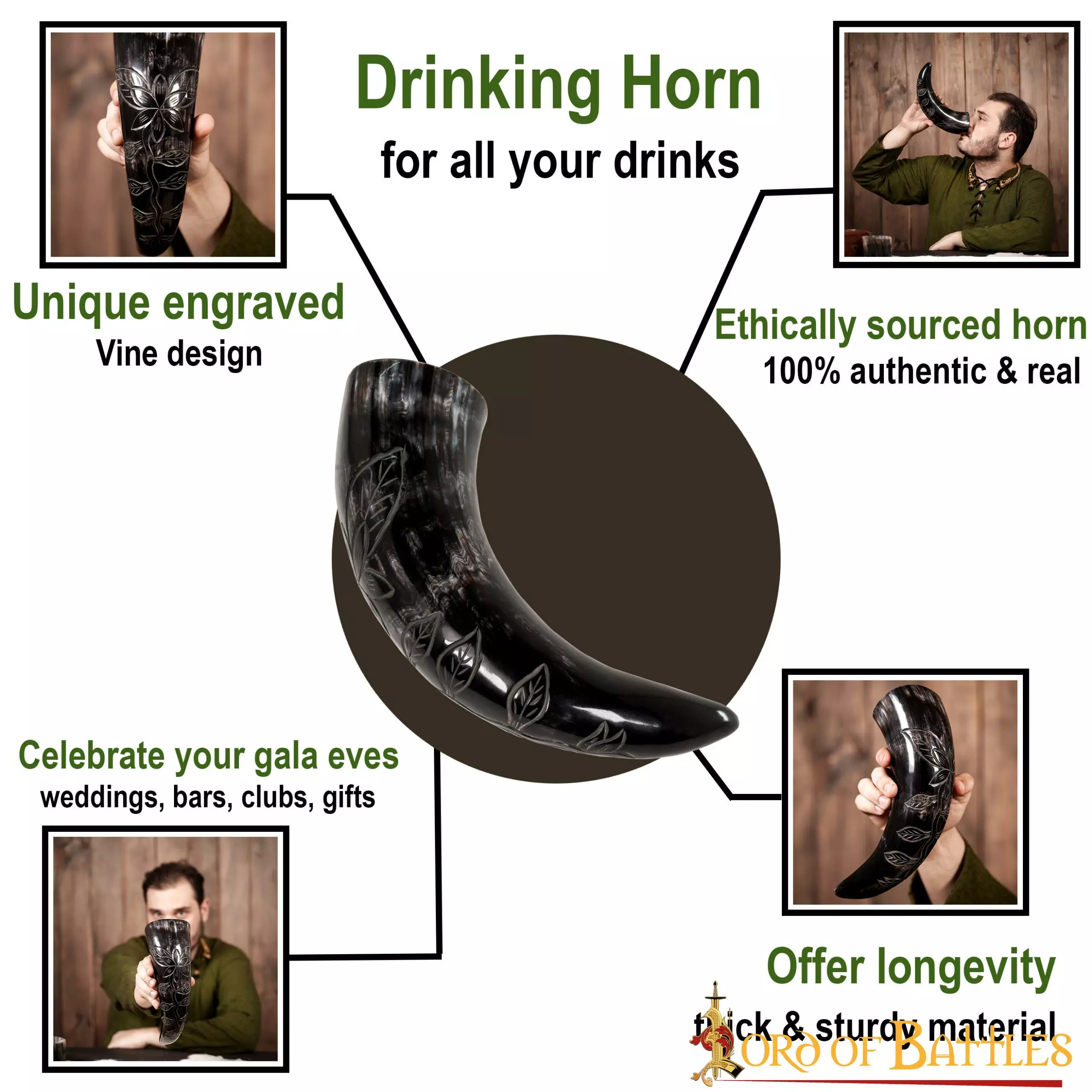Ya sea para beber cerveza con tus amigos o simplemente para adornar tu decoración, nuestro cuerno para beber con un bonito diseño de vid grabada es justo lo que necesitas. Su diseño único y su aspecto visualmente atractivo hacen que también sea ideal para regalar a sus seres queridos. Como viene con una bolsa, ¡podrá cuidarlo sin esfuerzo durante años!