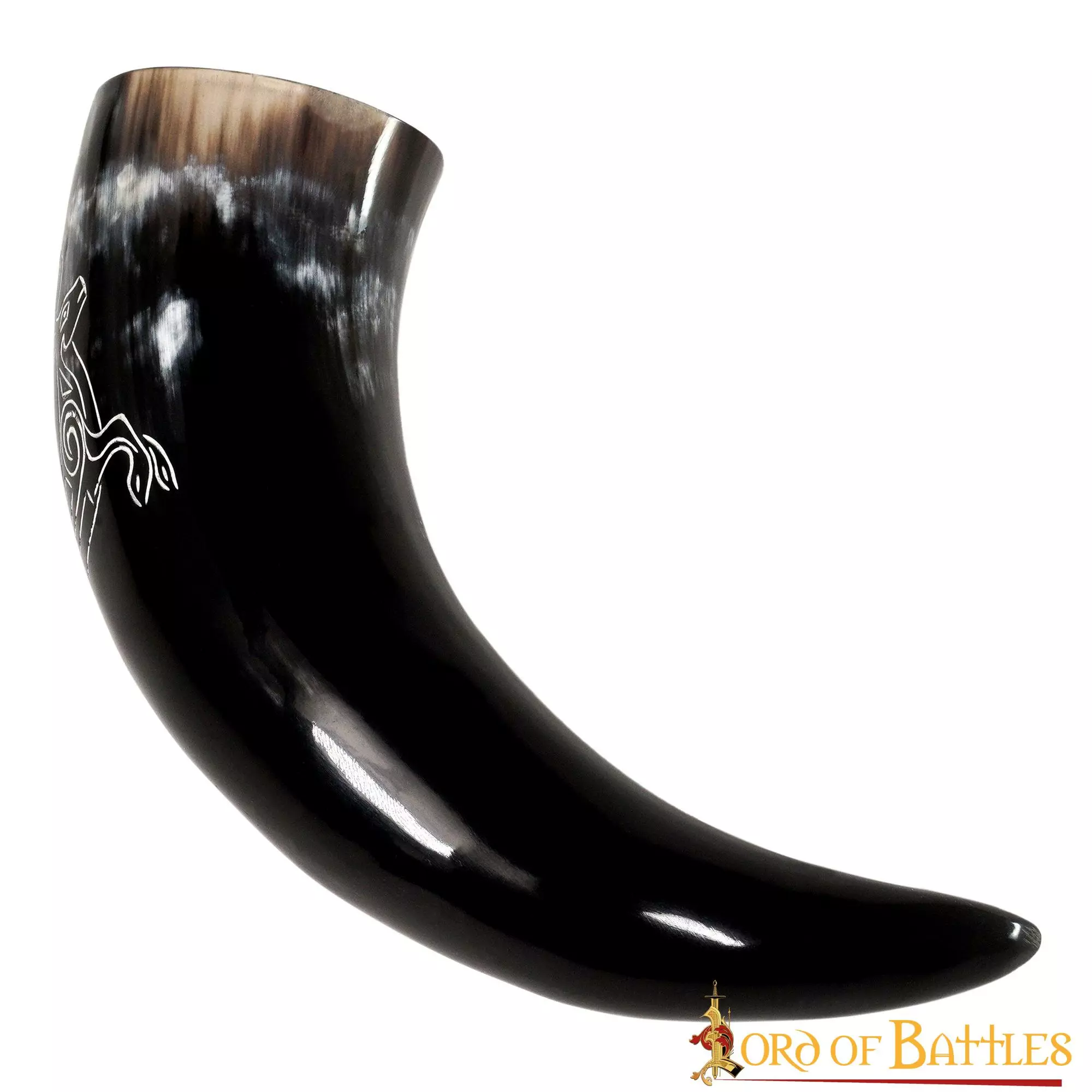 Este cuerno para beber está hecho a mano con auténtico cuerno de buey. La capacidad total del cuerno es de aprox. 400-500 ml (de un líquido con un contenido de alcohol de hasta 20%). Evite el lavavajillas y las bebidas calientes. Antes de utilizarlo, lávelo con agua corriente. Para prolongar su vida útil, trátelo con cera de abeja después de cada uso. Tenga en cuenta que se trata de un producto natural que se descompone con el tiempo, por lo que pueden aparecer grietas.