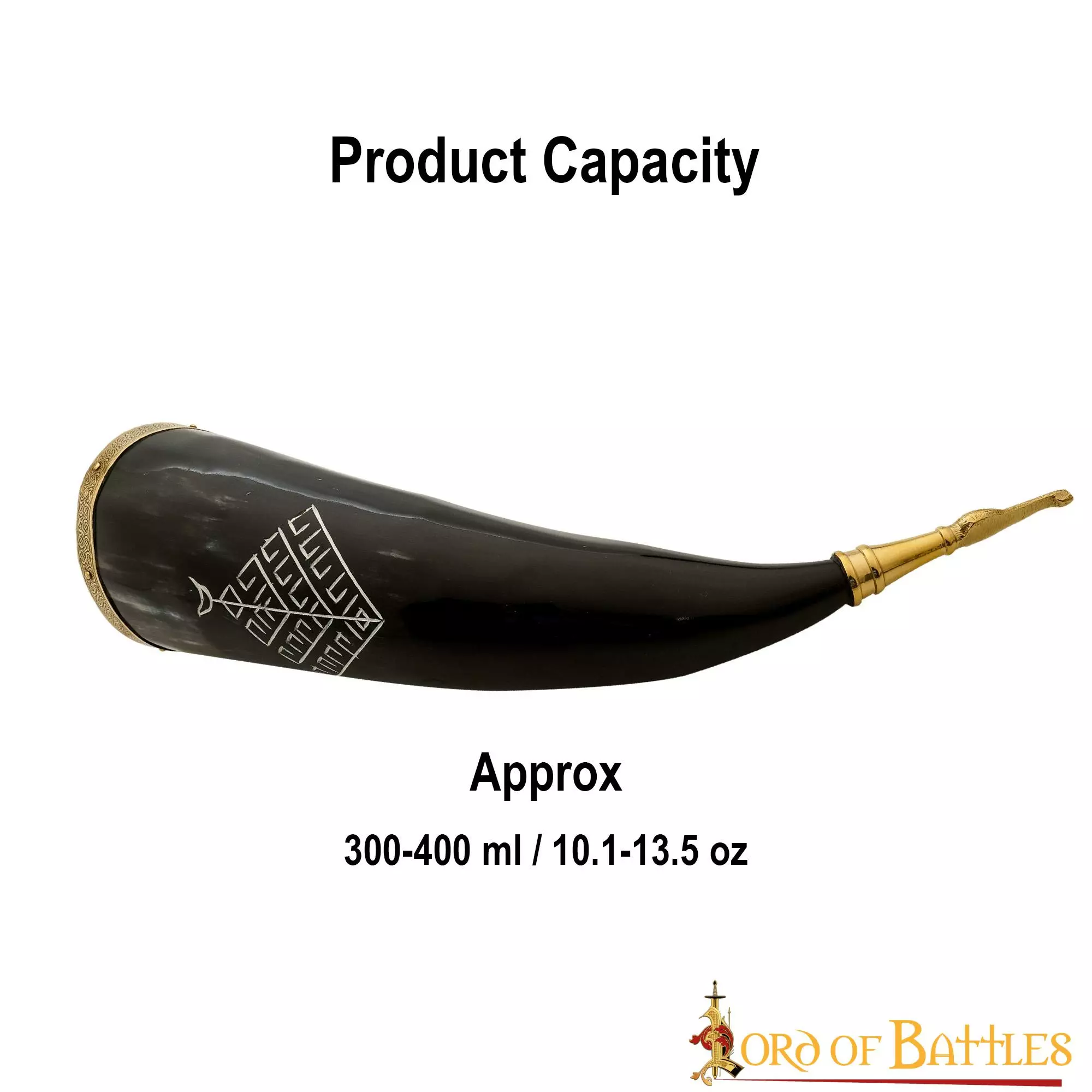 Este cuerno para beber se ha fabricado a mano a partir de un auténtico cuerno de buey. La capacidad total del cuerno es de unos 300-400 ml (de un líquido con un contenido de alcohol de hasta 20%). Evite el lavavajillas y las bebidas calientes. Antes de utilizarlo, lávelo con agua corriente. Para alargar su vida útil, trátelo con cera de abeja después de cada uso. Tenga en cuenta que se trata de un producto natural que se deteriora con el tiempo, por lo que pueden aparecer grietas.