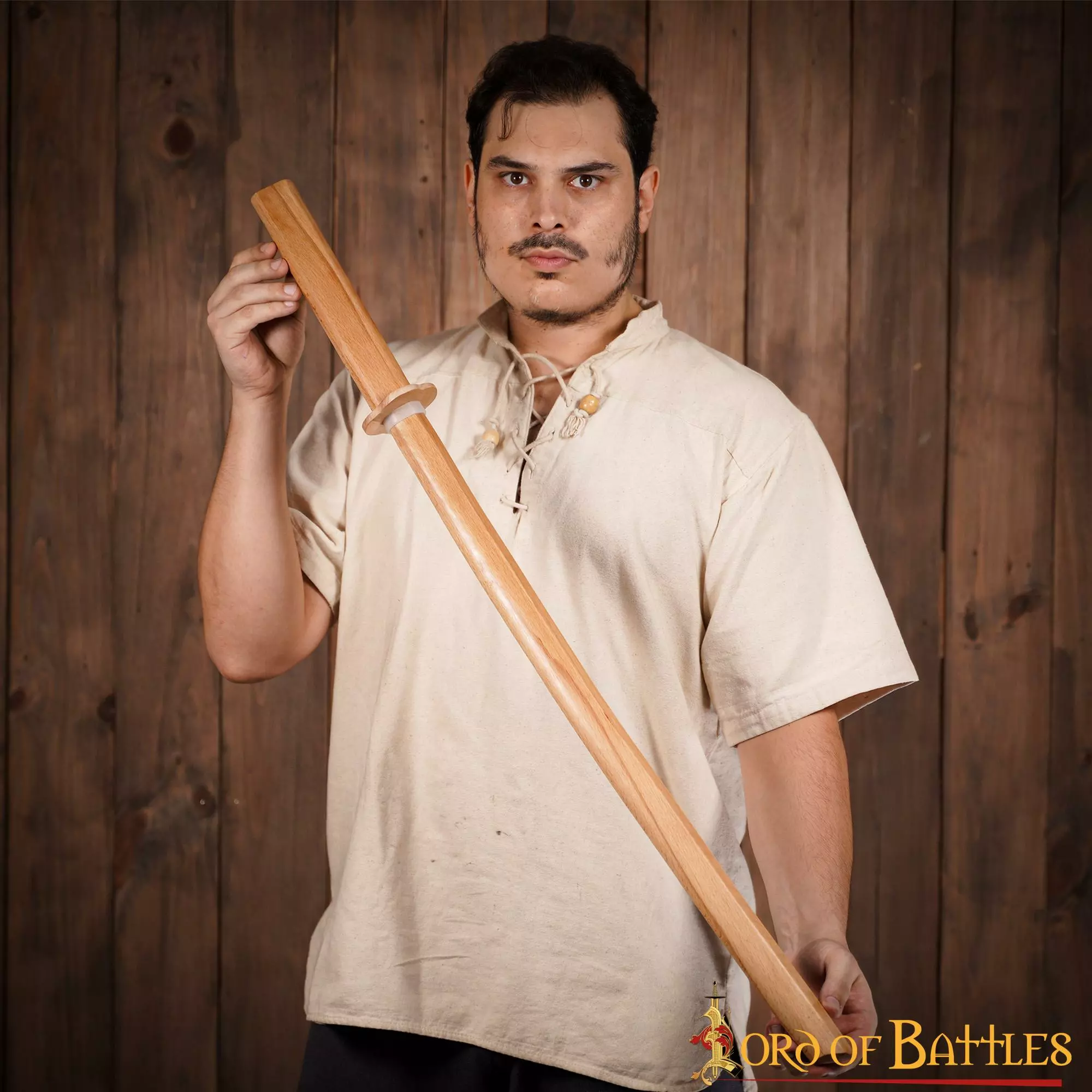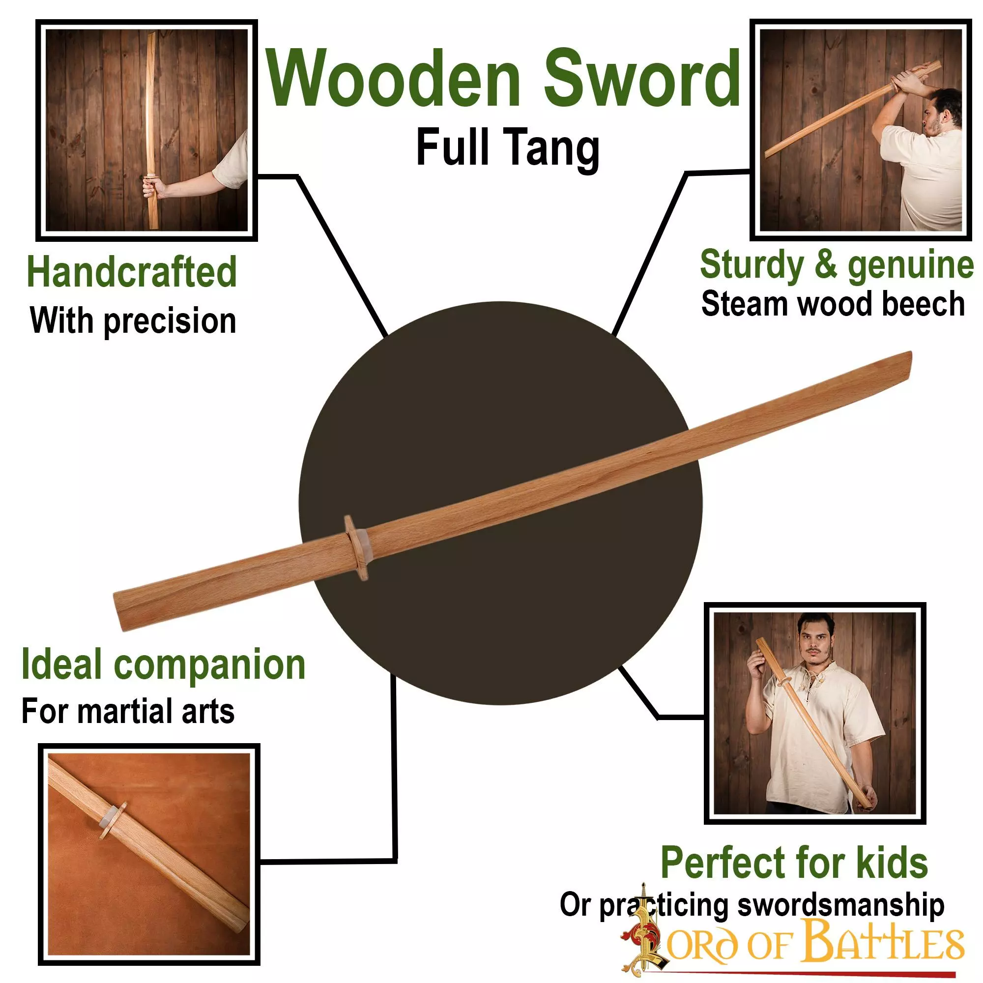 Meticulosamente fabricado a mano con robusta madera de haya vaporizada, es robusto pero ligero. Mide aproximadamente 39 pulgadas. La construcción de espiga completa de esta espada hace que el diseño sea aún más histórico y preciso.