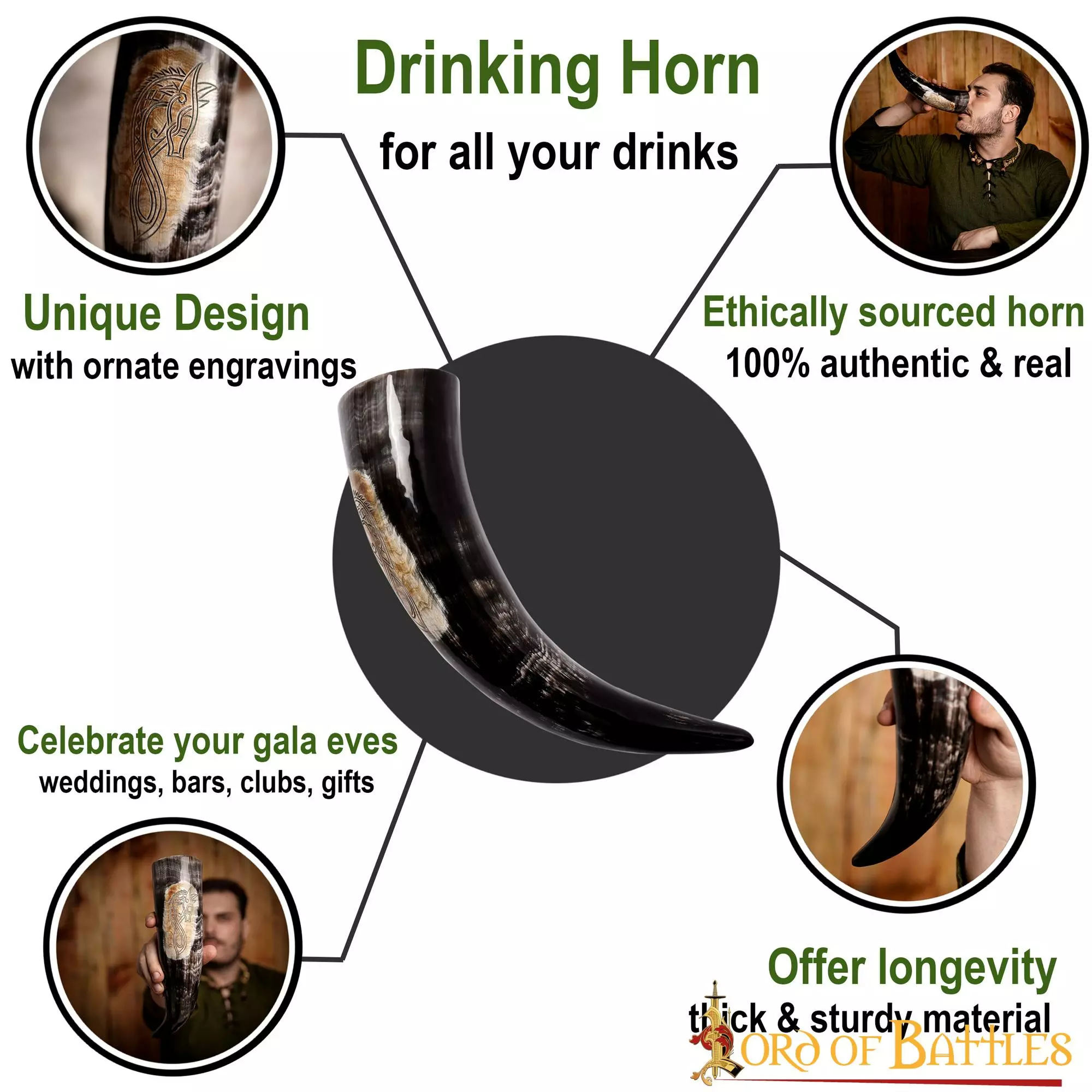 Este cuerno para beber está hecho a mano con auténtico cuerno de buey. La capacidad total del cuerno es de aprox. 400-500 ml (de un líquido con un contenido de alcohol de hasta 20%). Evite el lavavajillas y las bebidas calientes. Antes de utilizarlo, lávelo con agua corriente. Para prolongar su vida útil, trátelo con cera de abeja después de cada uso. Tenga en cuenta que se trata de un producto natural que se descompone con el tiempo, por lo que pueden aparecer grietas.