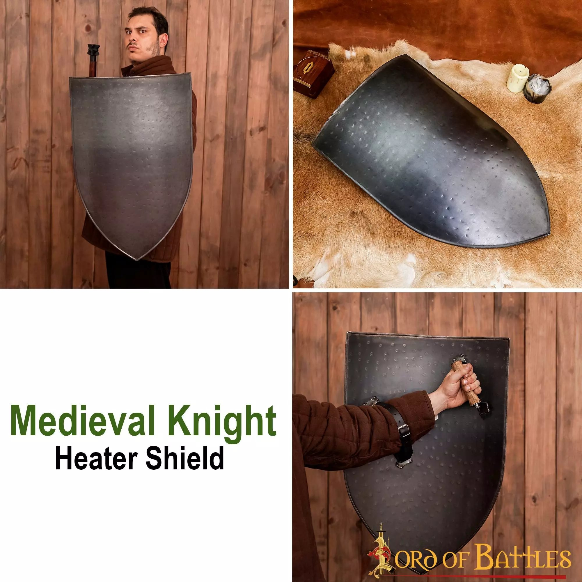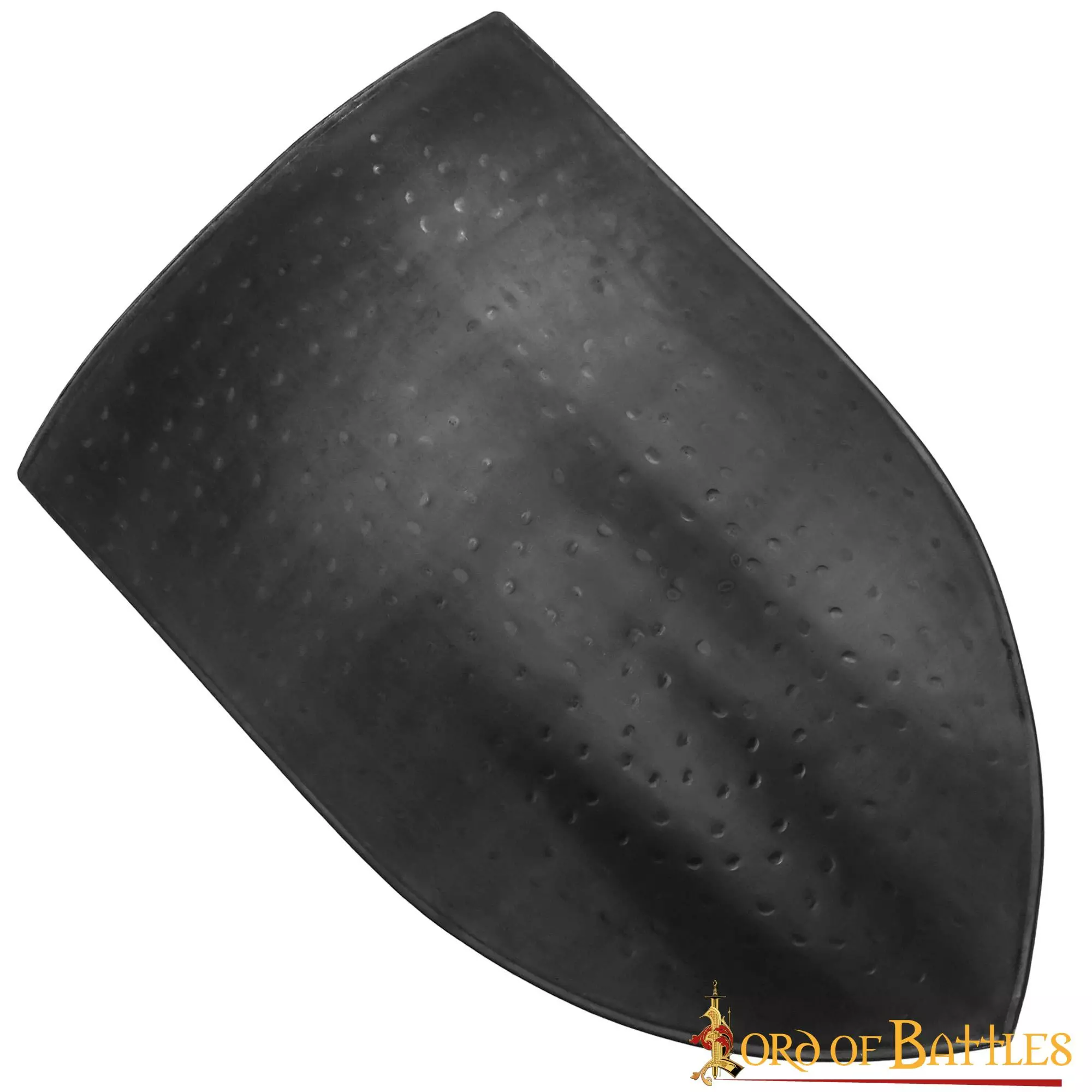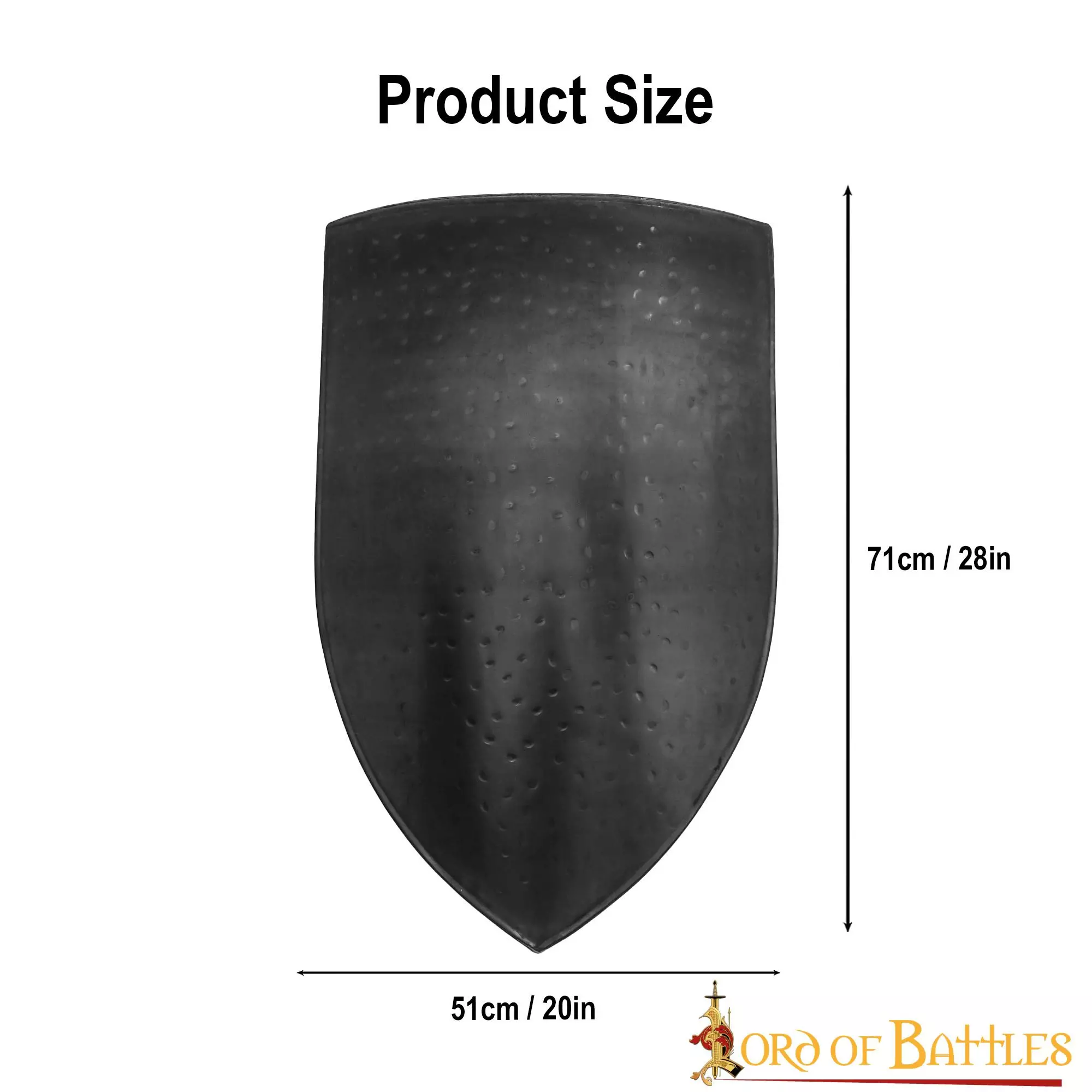 Cada variante de este escudo está hecha a mano con un robusto ACERO MILIMITAR, mide aproximadamente (28 X 20) pulgadas y se deja lisa para su creatividad. Para una mayor absorción de impactos, el mango tiene un ajuste de MADERA GENUINA. La CORREA DE CUERO REAL asegura un mejor agarre. Dependiendo del calibre (16 o 18), cada variación se puede utilizar para recreaciones históricas, combate real, decoración y LARP.