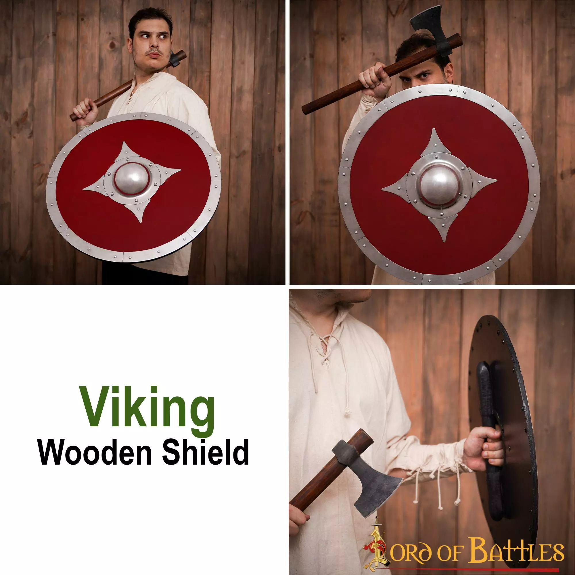 Feroz guerrero vikingo de tu clan, este escudo redondo de madera se asegurará de defenderte de esos duros golpes de hacha o incluso de soportar una contundente estocada de tu lado.