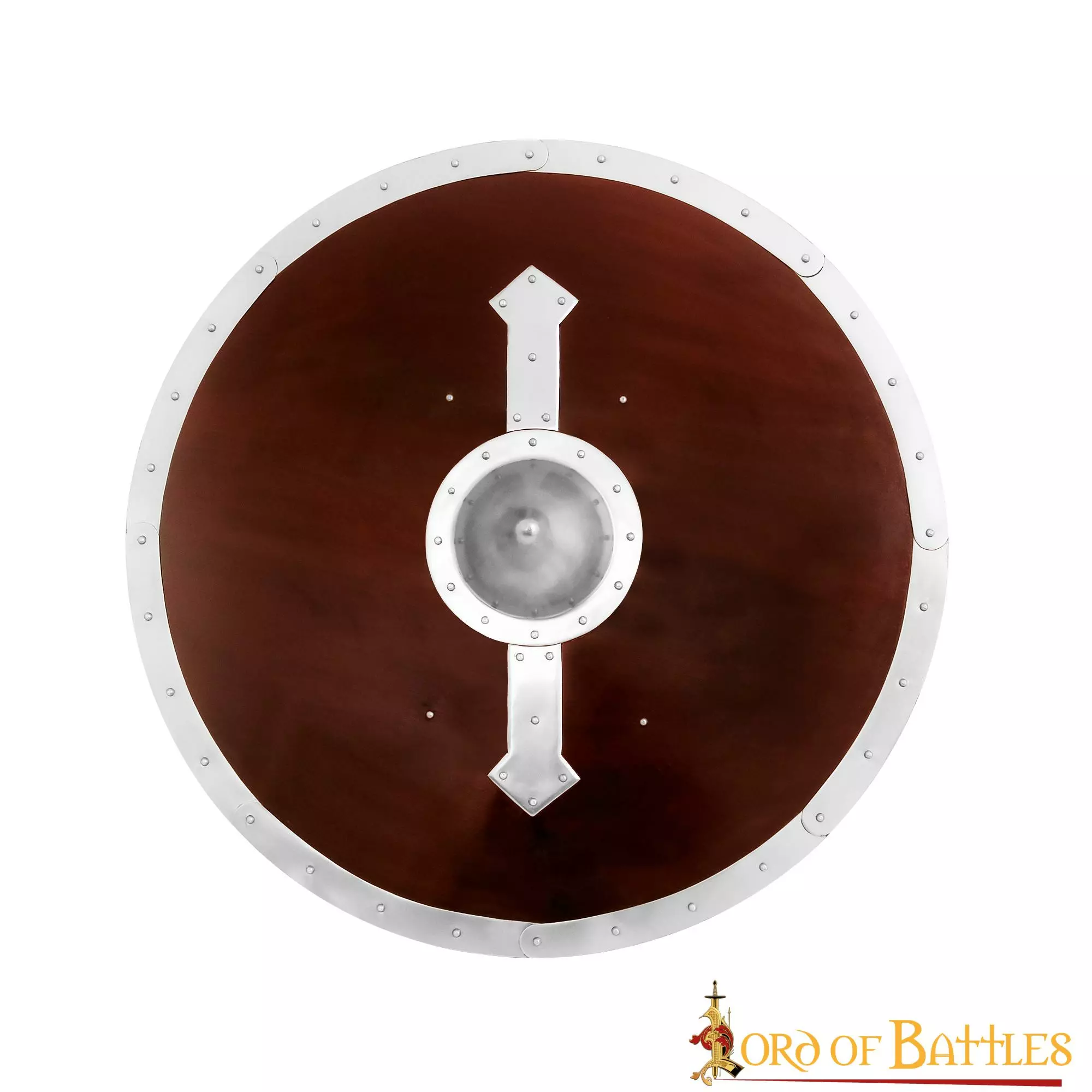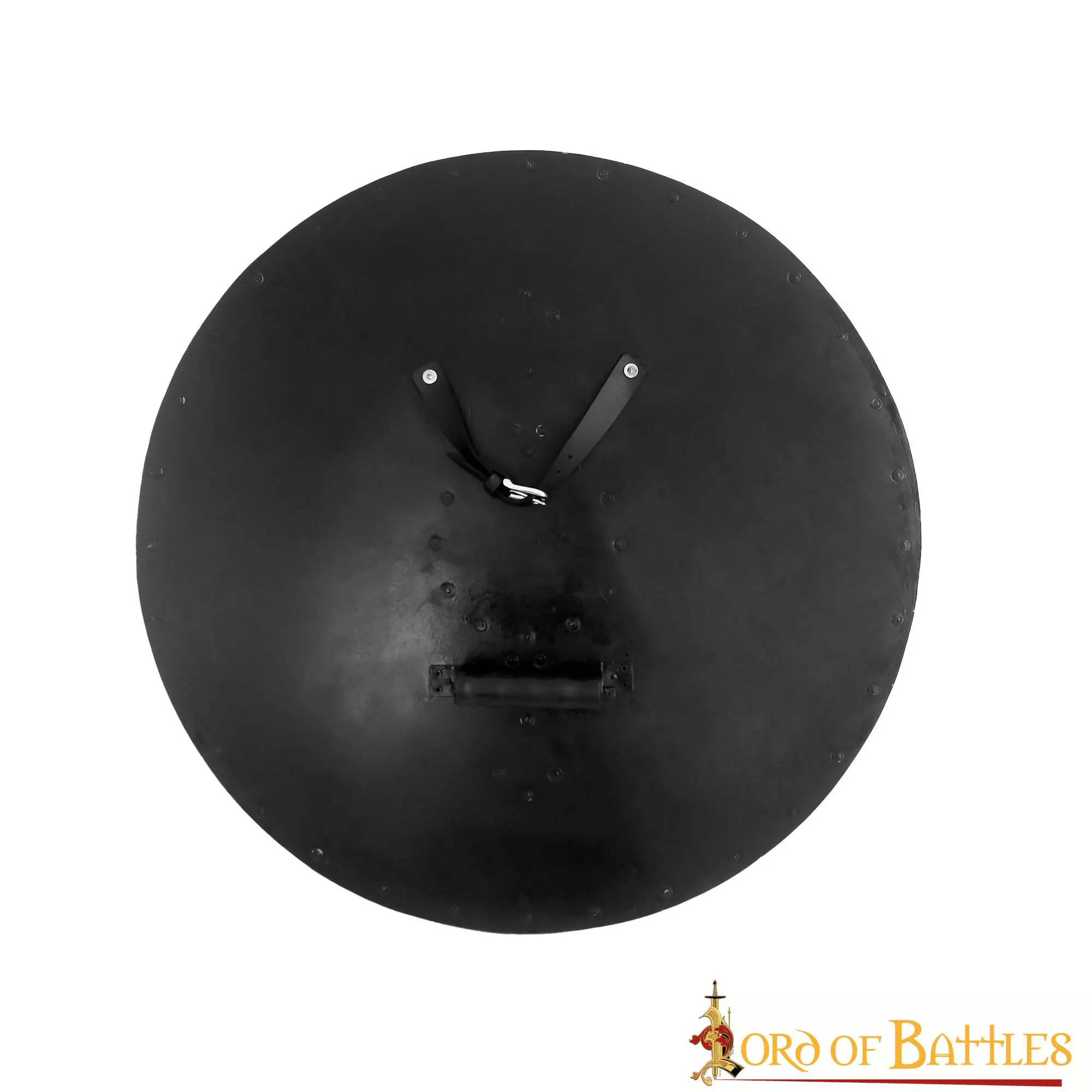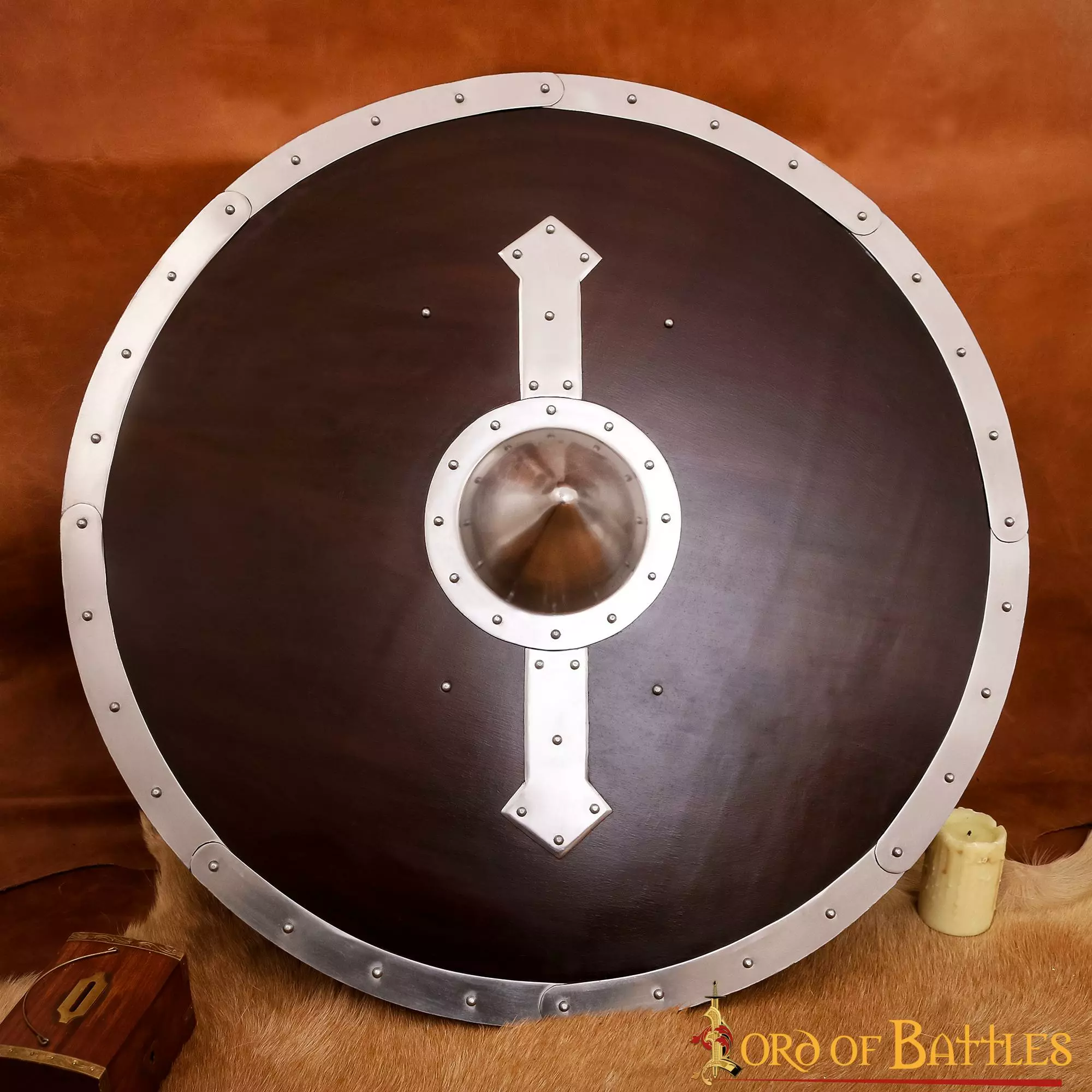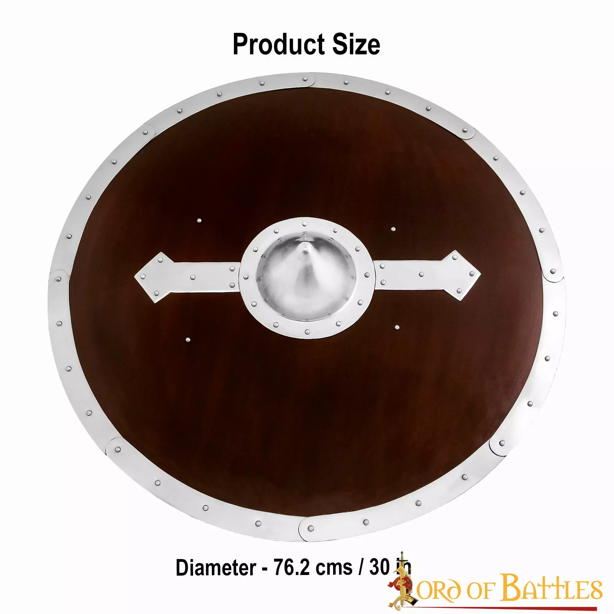 Hecho a mano con MADERA GENUINA, este escudo tiene un diámetro de aproximadamente 30 pulgadas, lo que lo convierte en una pieza funcional de arte vikingo. Para un agarre firme, este escudo tiene una correa de cuero ajustable y un mango de metal reforzado con madera. El umbo cónico y los herrajes de este escudo están hechos de ACERO SUAVE. Este escudo es TOTALMENTE FUNCIONAL y perfecto tanto para recreaciones como para decoración.