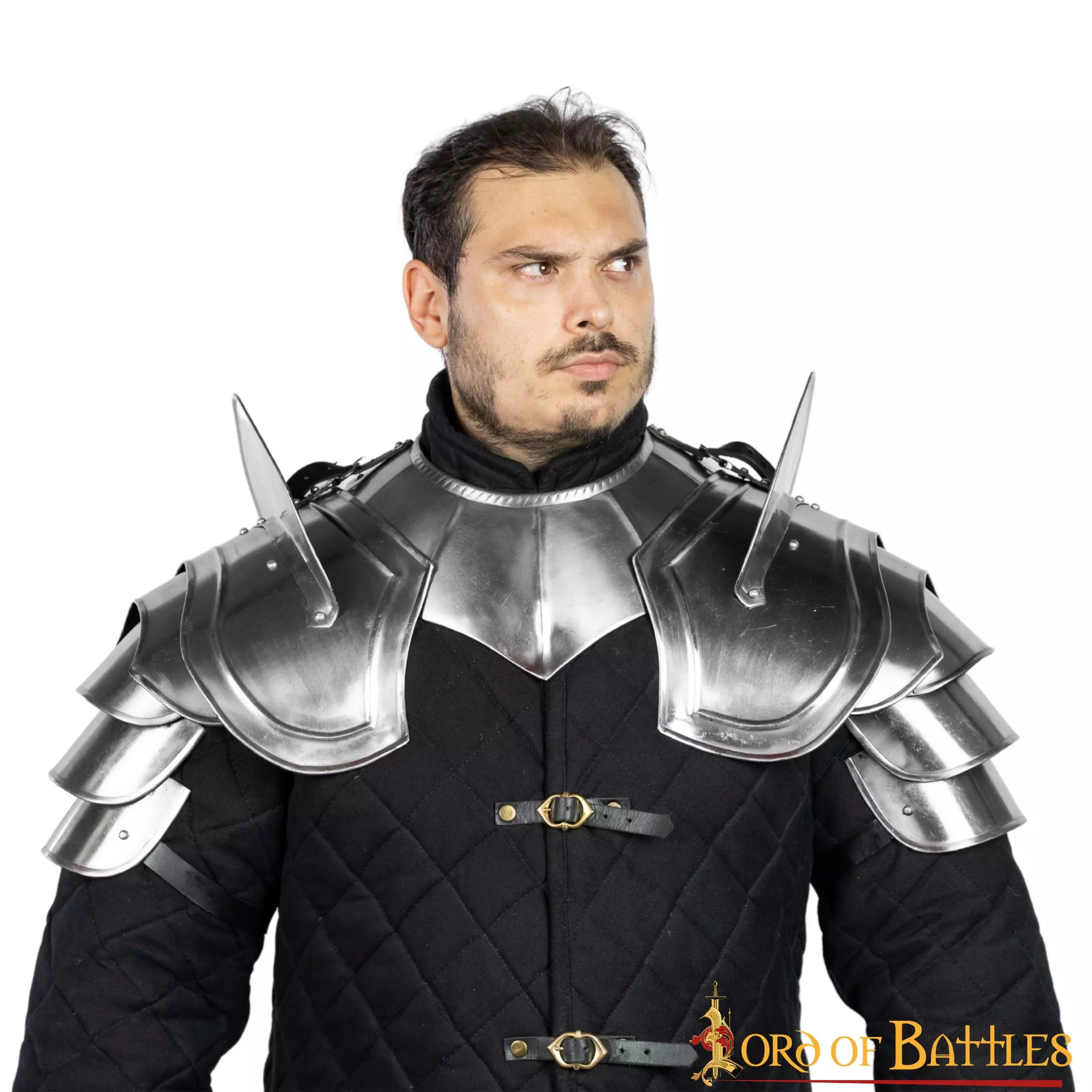 Este par de pañolones de acero de fantasía medieval con placas articuladas de acero dulce de calibre 20 es el accesorio ideal para cualquier caballero o soldado de infantería pesada de tu universo de fantasía favorito.