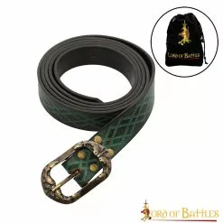 ¿Siempre has querido ser un ranger en tu próxima feria medieval, LARP o evento de cosplay? Este cinturón de cuero, estampado de forma única con elegantes motivos geométricos, permanecerá sujeto alrededor de tu atuendo de ranger favorito en tus próximas odiseas y eventos.