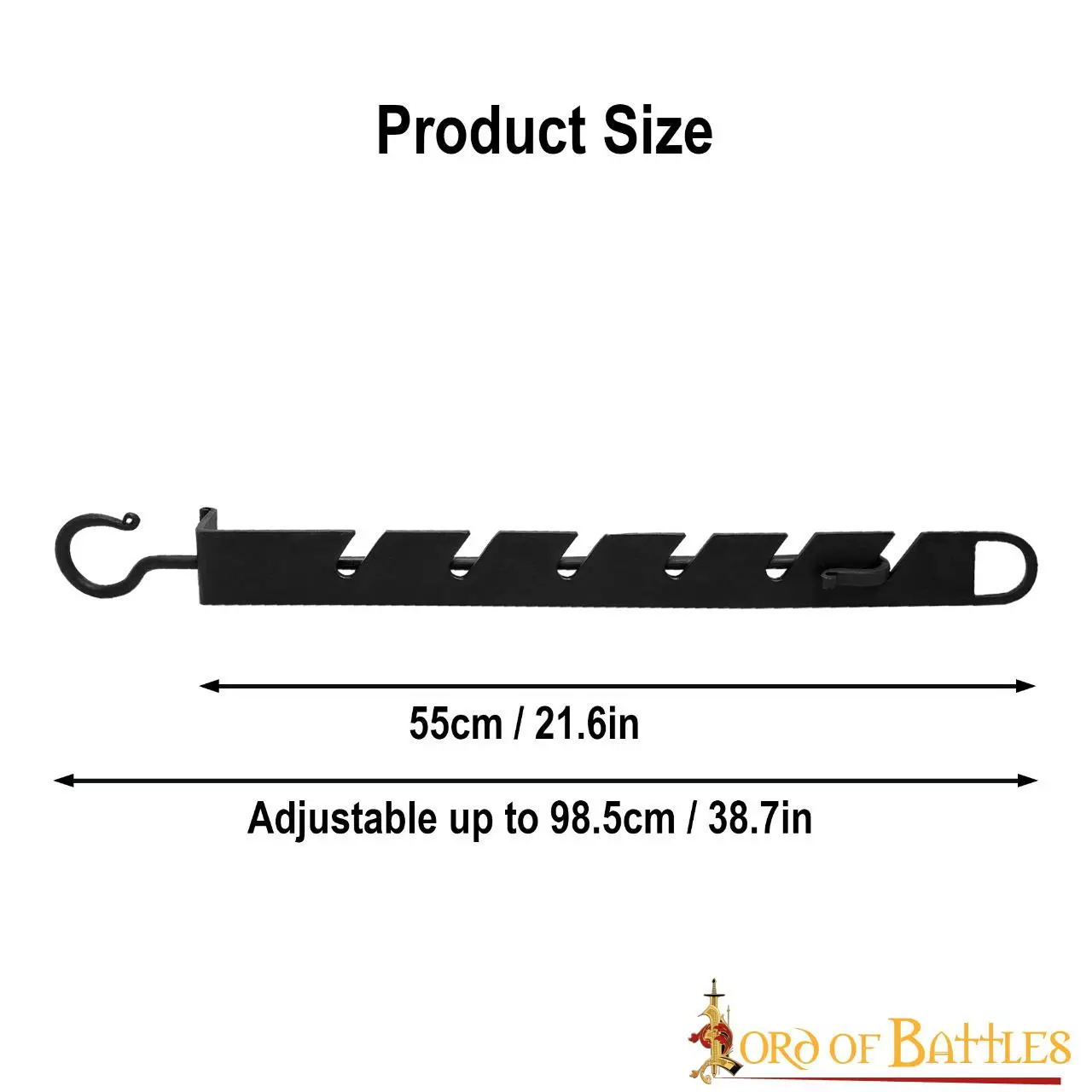 FORJADO A MANO en hierro resistente, este gancho para suspender la batería de cocina durará muchos años. La longitud total de su parte fija es de aproximadamente 55 cm y es ajustable hasta 98,5 cm, lo que facilita colgar sus utensilios de cocina de cualquier tamaño adecuado.