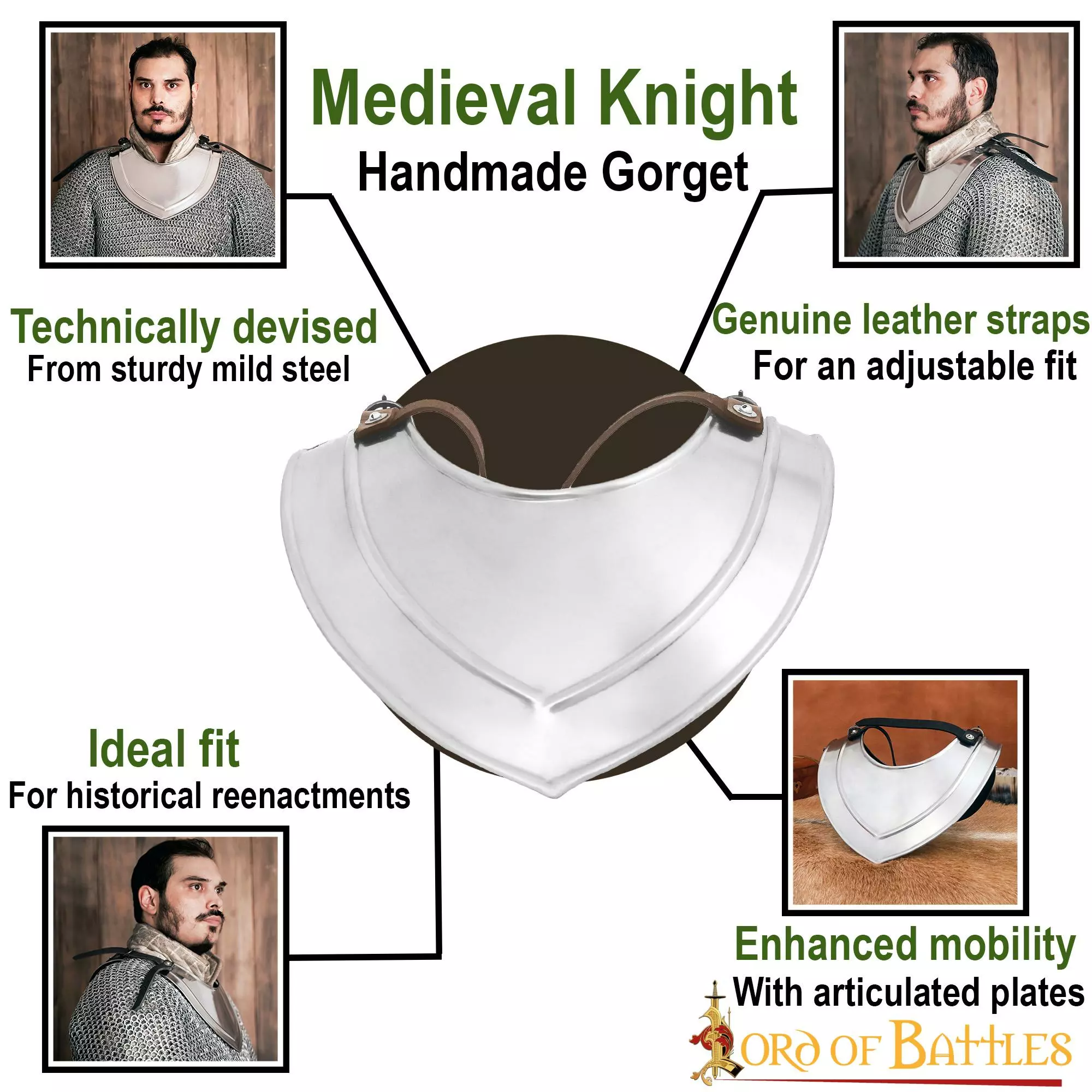 Gracias a las placas traseras y delanteras bien articuladas y ajustables, este gorget se adapta fácilmente a la mayoría de las formas corporales.