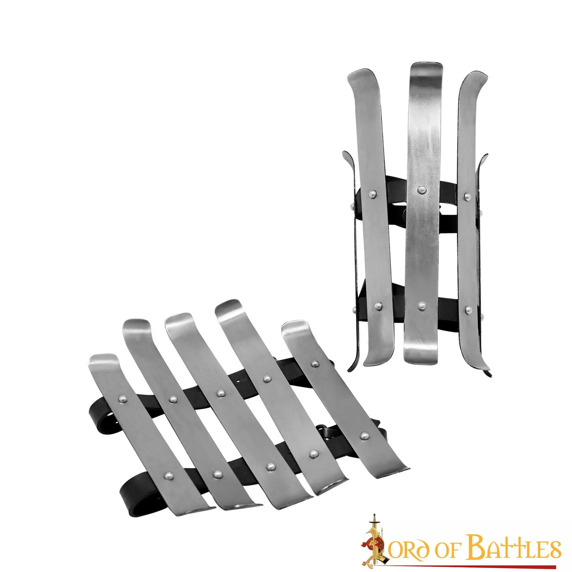 Bien diseñadas por nuestros hábiles artesanos a partir de CUERO GENUINO de 3-4 mm de grosor y PLACAS DE ACERO MILITAR de calibre 16, estas protecciones vikingas entablilladas son TOTALMENTE FUNCIONALES y serán un compañero ideal para tu próxima recreación de una batalla vikinga.