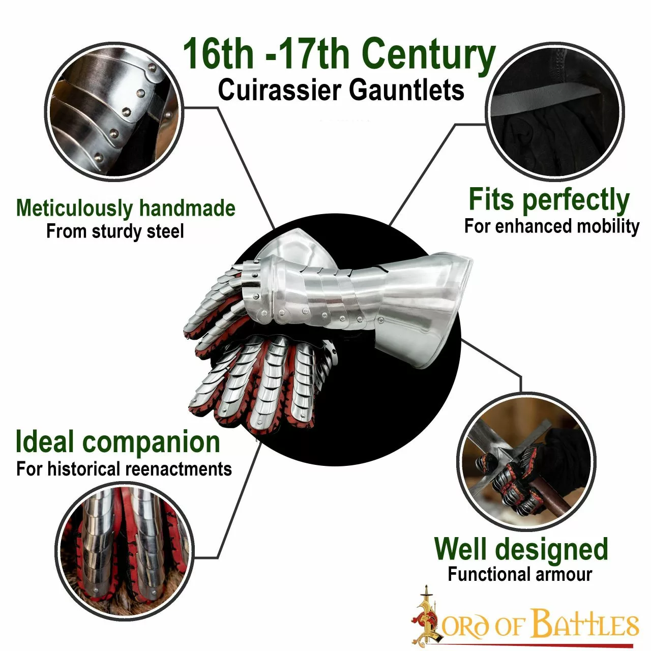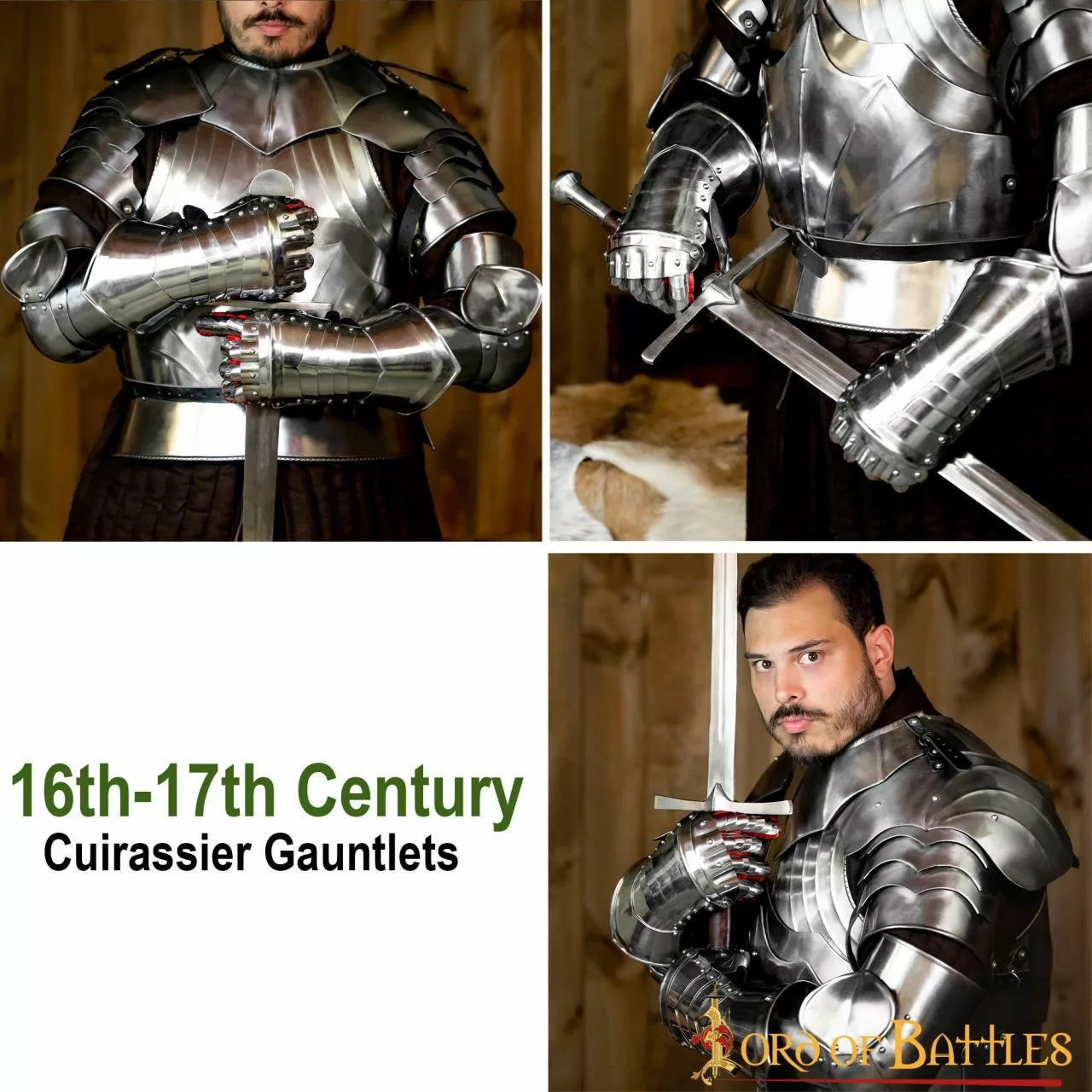 Su aspecto elegante y su movilidad los convierten en una de nuestras piezas de armadura medieval más populares desde hace años, muy apreciadas en LARP y recreaciones. No es de extrañar que se basen en los guanteletes de coracero del siglo XVI-XVII, conocidos por proporcionar libertad de movimiento en combate.