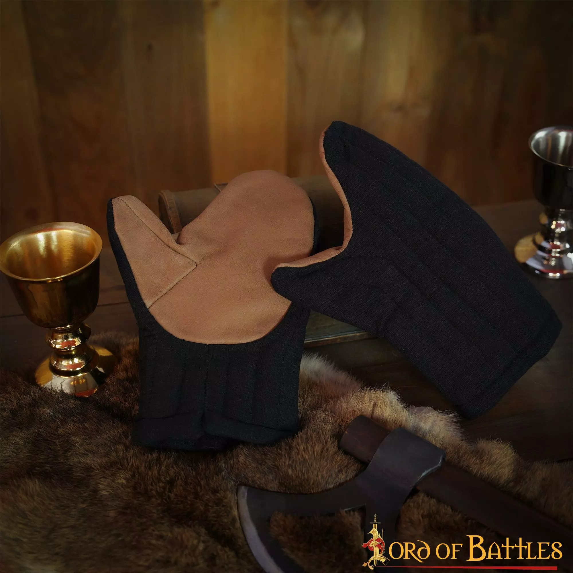 Utilizados sobre todo como protección de las manos por milicianos, soldados de infantería, lanceros y otros hombres con armaduras ligeras, en los campos de batalla de los siglos XII, XIII y XIV, nuestros guantes medievales de manopla acolchada tienen un origen verdaderamente histórico.
