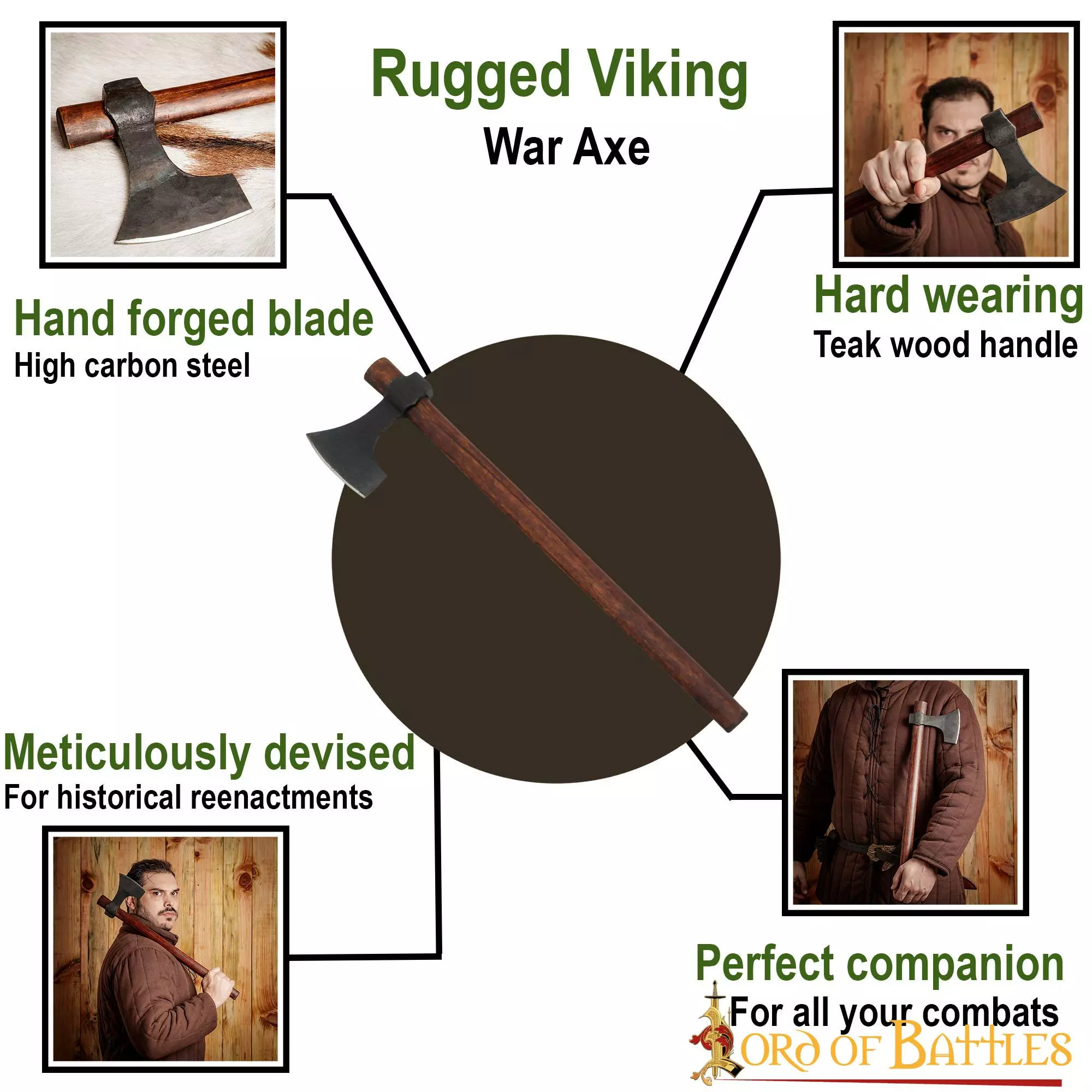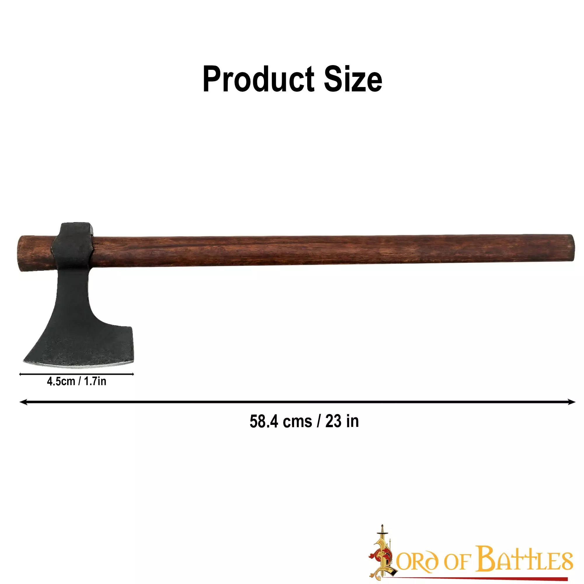 El mango del hacha está fabricado con MADERA DE TEAK auténtica y de origen ético. La cabeza del hacha está meticulosamente forjada a mano en resistente acero al carbono, lo que la hace robusta y eficaz. Tiene una longitud aproximada de 23 pulgadas.