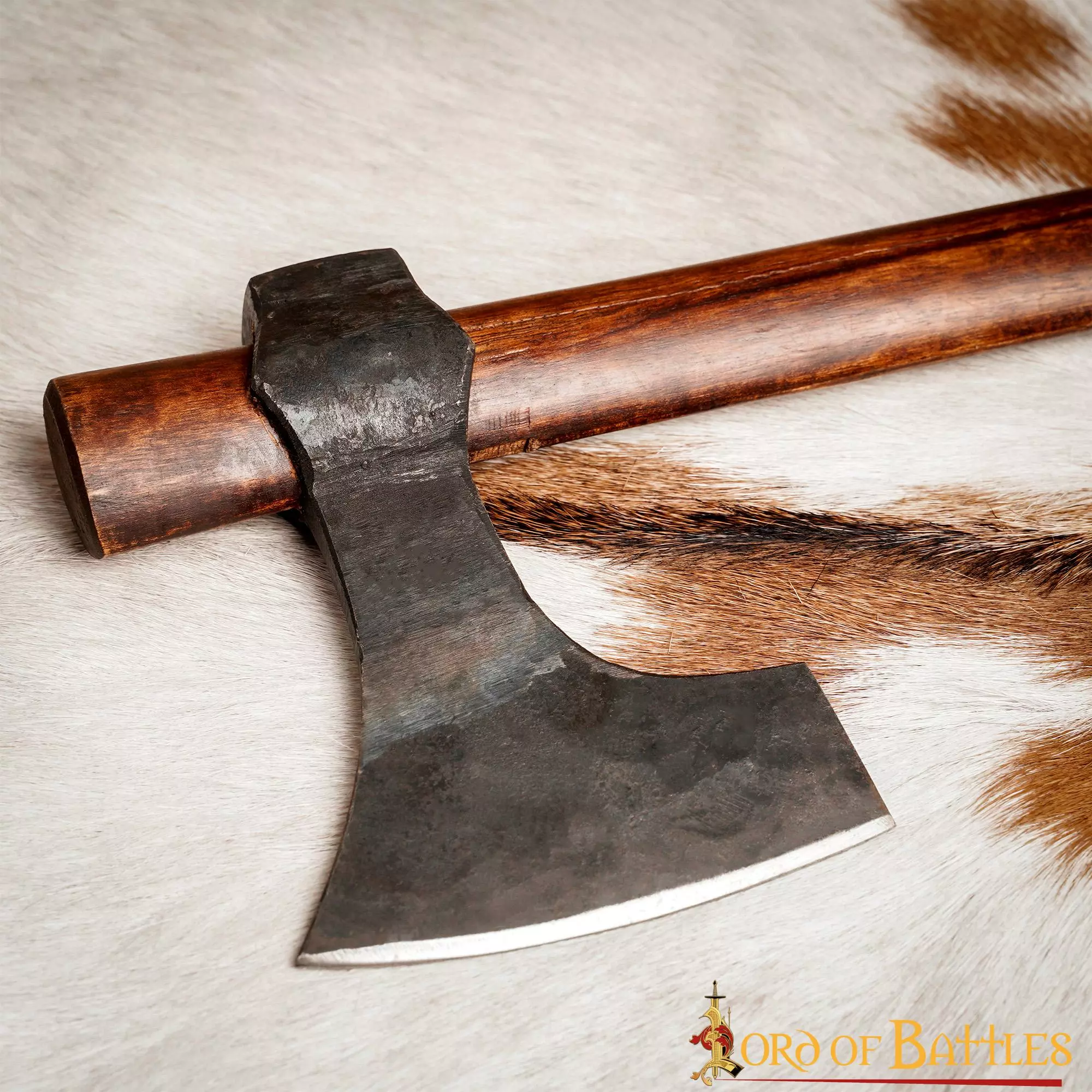 Agarra el arma de tu enemigo o corta leña para hacer fuego con esta hacha vikinga con barba. Su verdadera esencia medieval reside en que ha sido meticulosamente forjada a mano en resistente acero al carbono, lo que la hace robusta y eficiente.