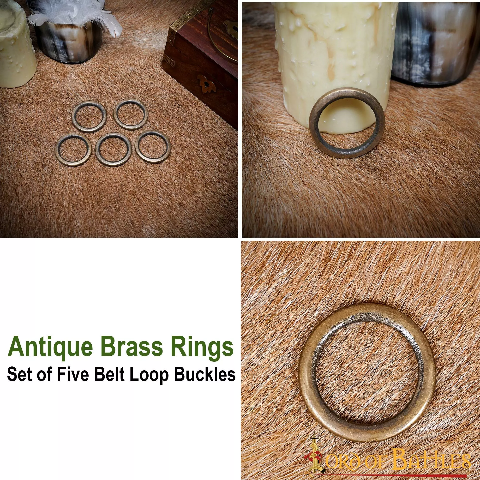 Está bien diseñado a partir de LATÓN ANTIGUO macizo, lo que le confiere un atractivo rústico para realzar una amplia gama de disfraces o atuendos. Viene en un juego de 5 piezas, cada una con un diámetro interior de aprox. 2,9 cm. Estas medidas le permiten ajustarse a una correa de cinturón de 2,8-2,9 cm de ancho.